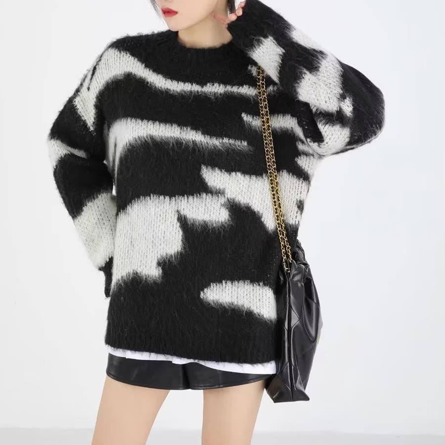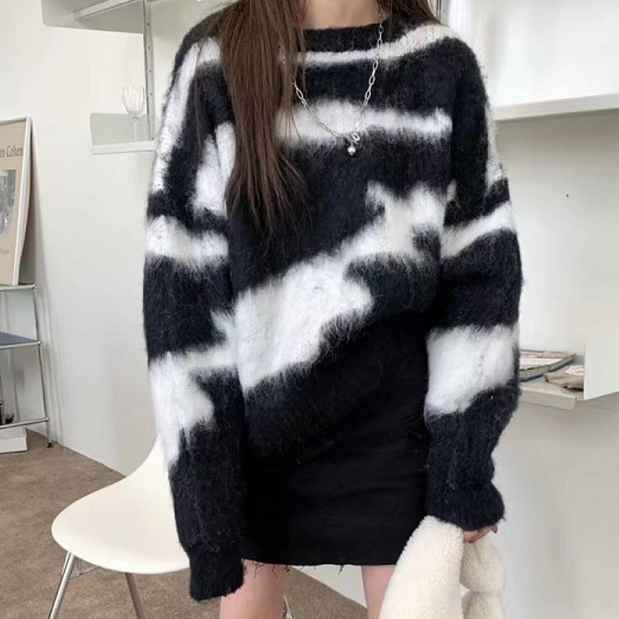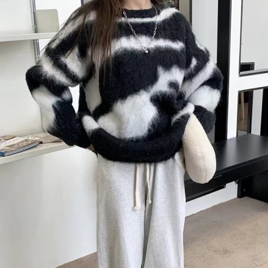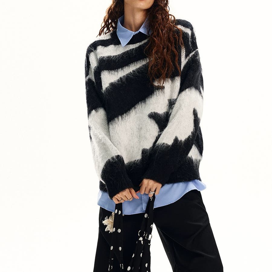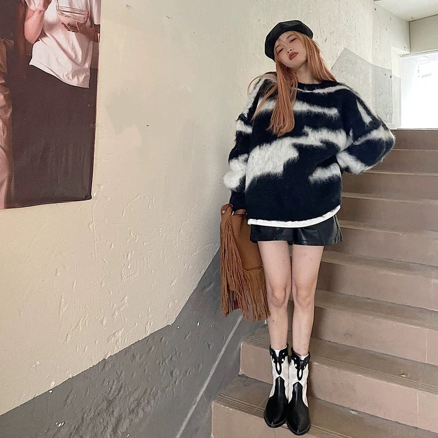 ふんわりシャギー素材がポイントのモノトーンニットプルオーバー♡