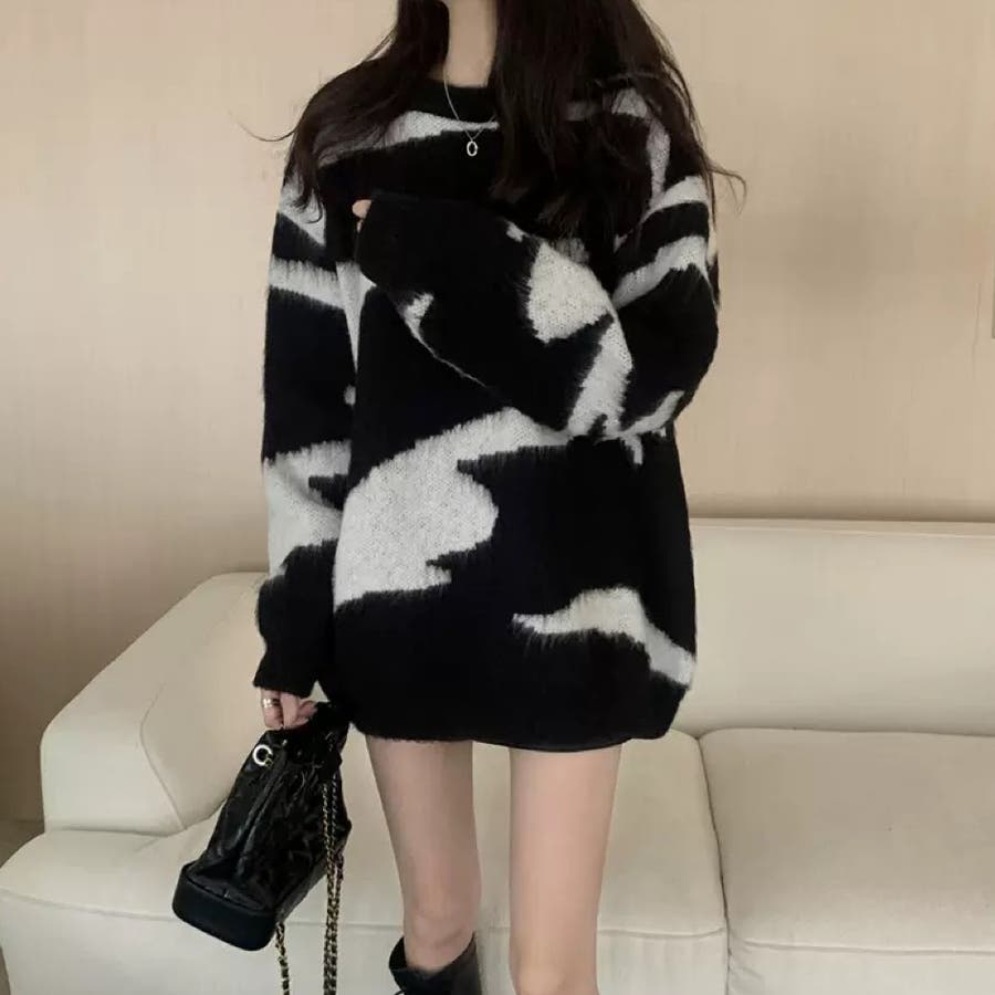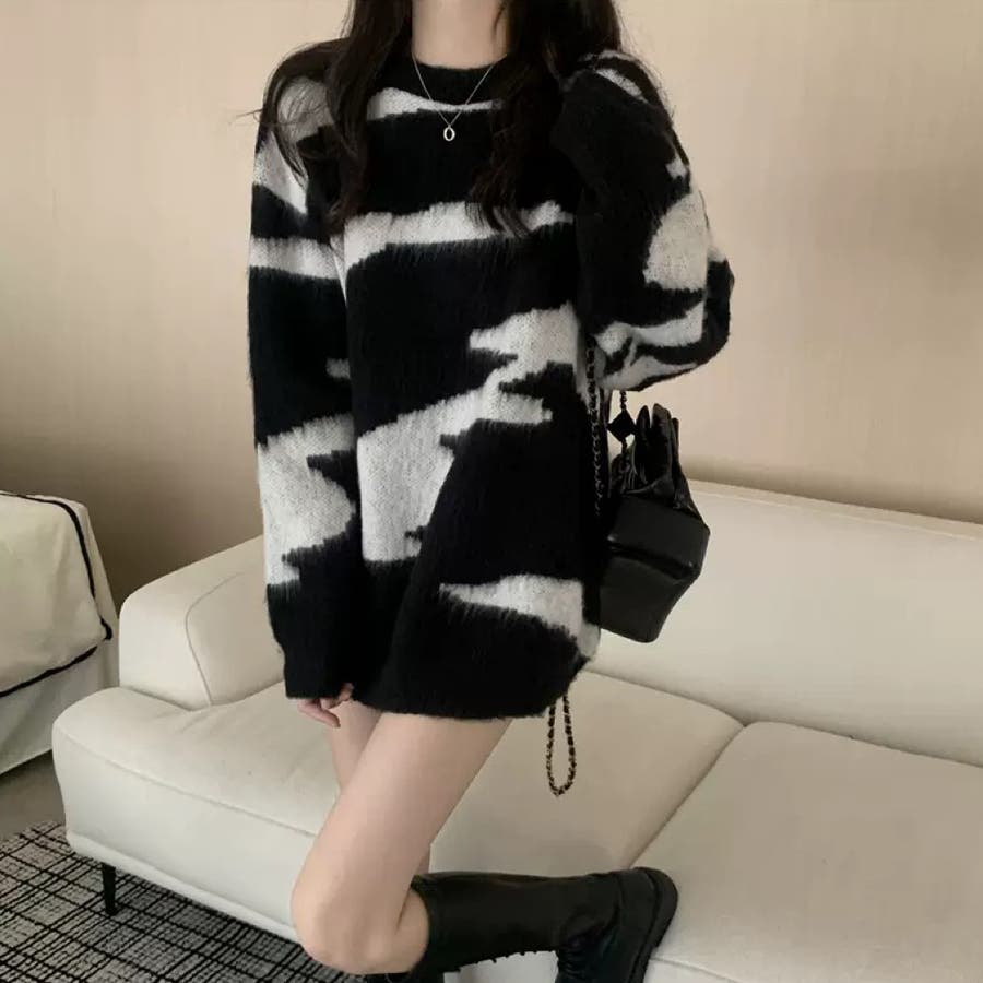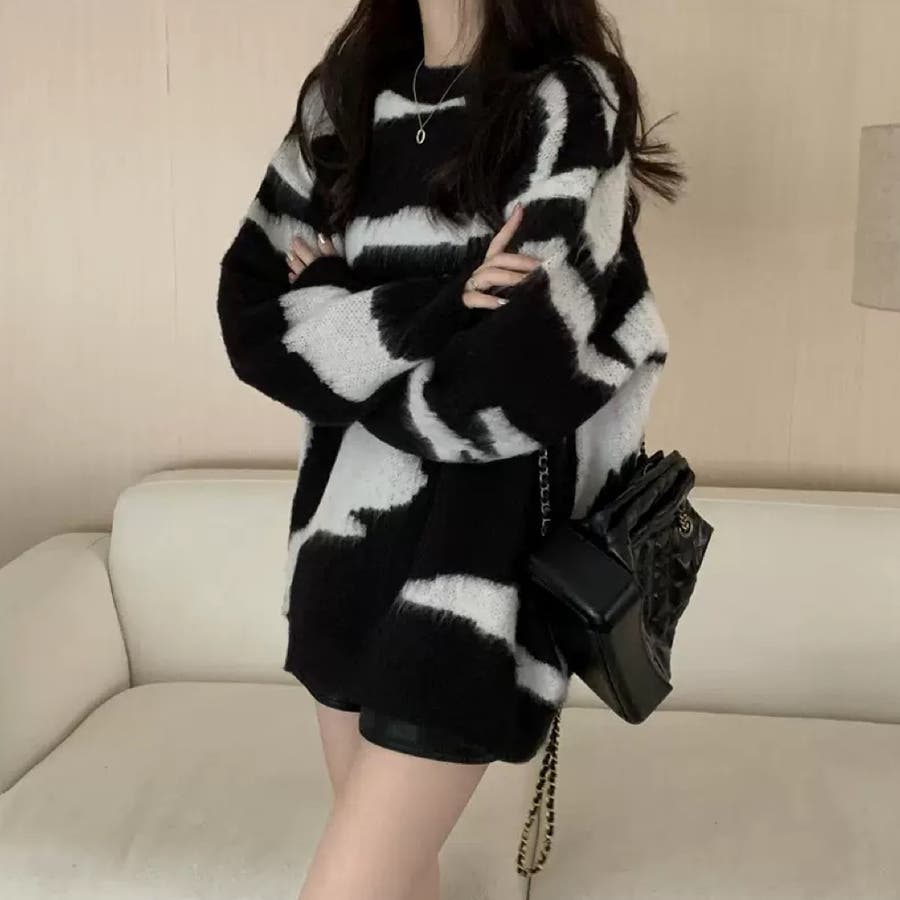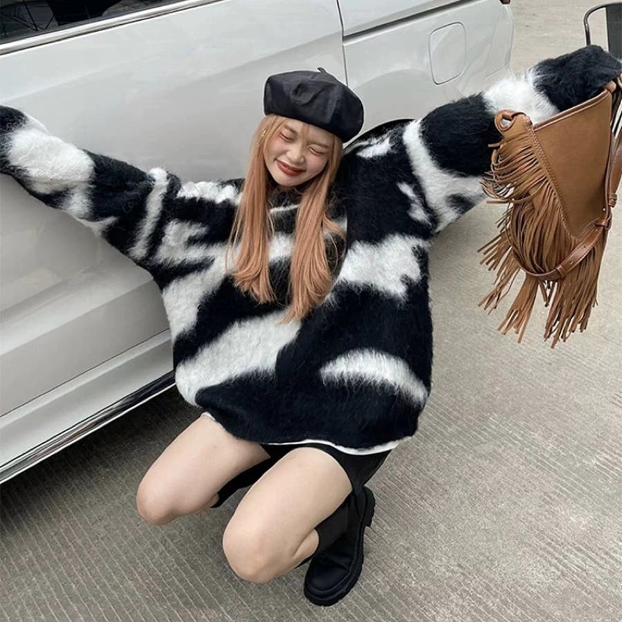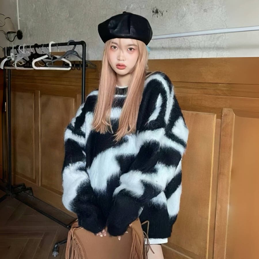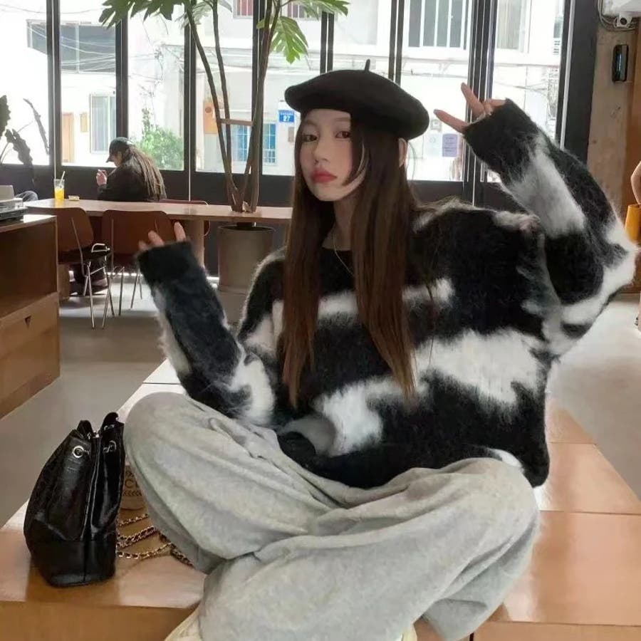 ふんわりシャギー素材がポイントのモノトーンニットプルオーバー♡