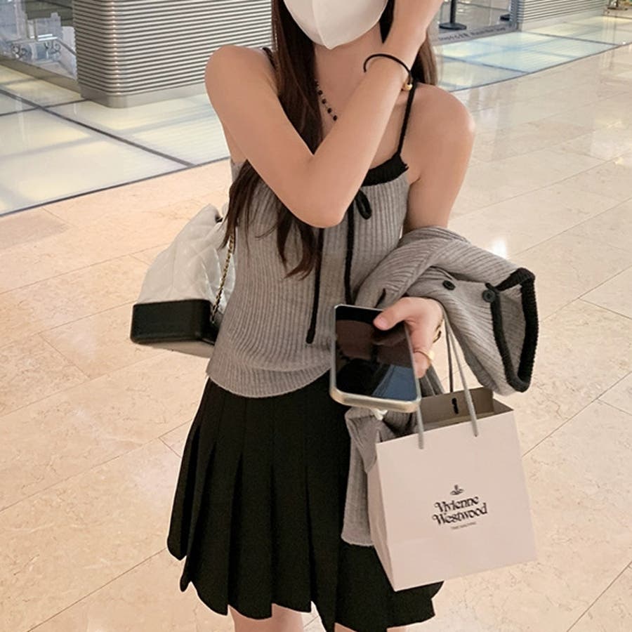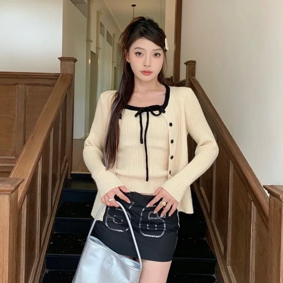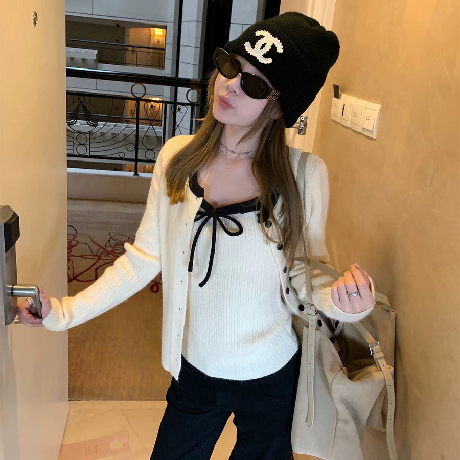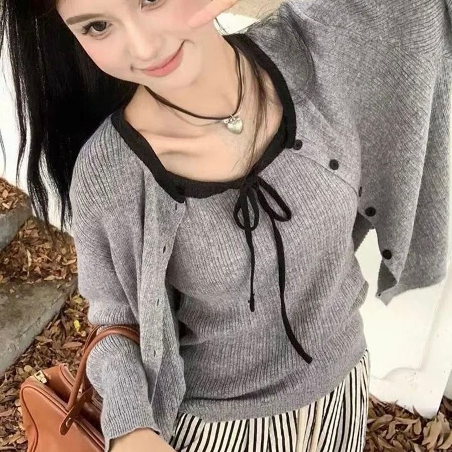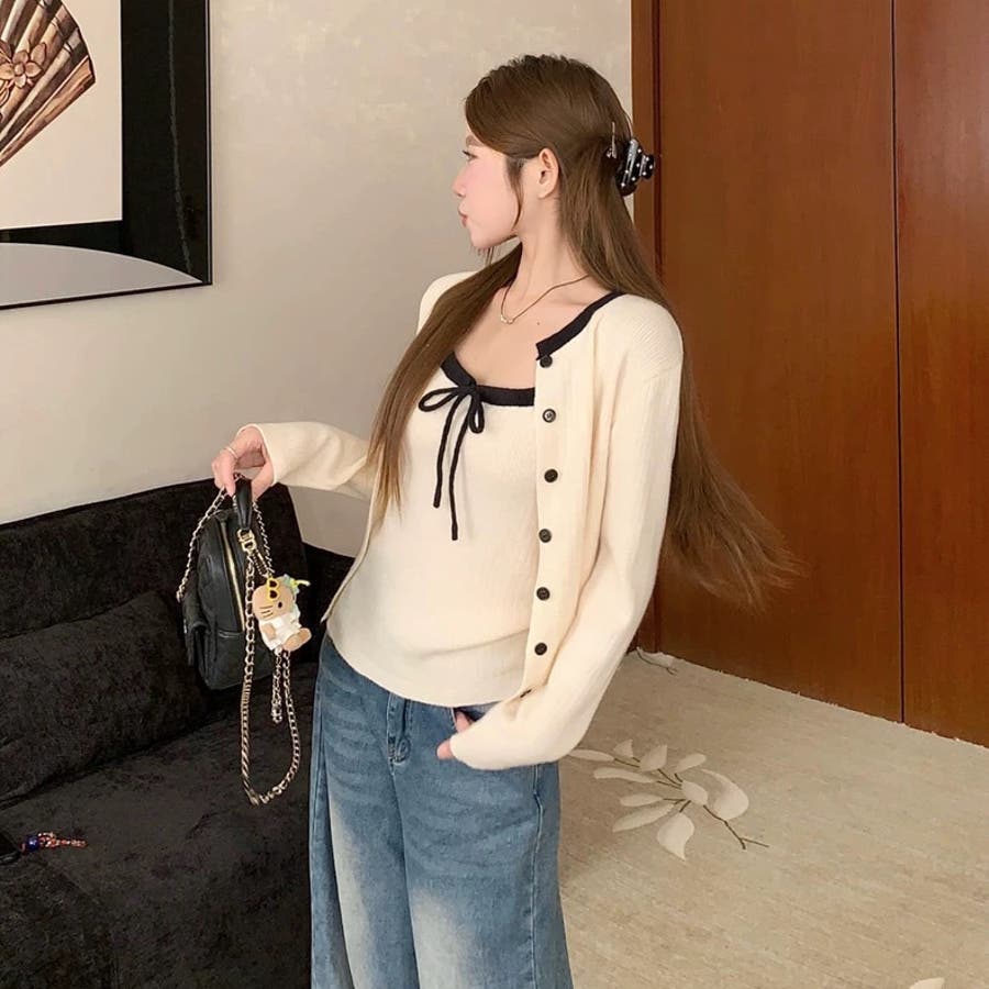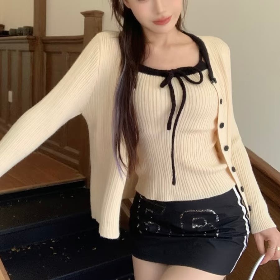 今季大人気の配色リボンニットキャミとカーディガンのセットアイテムが登場!