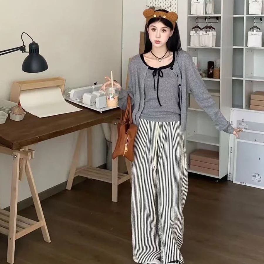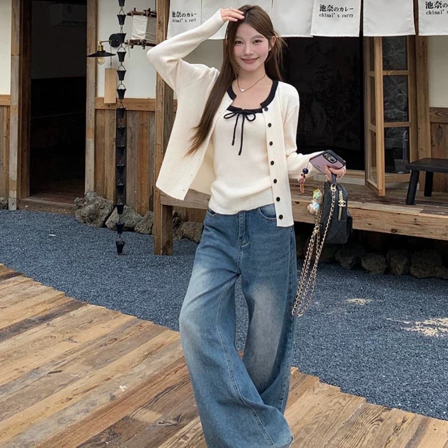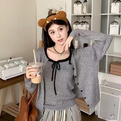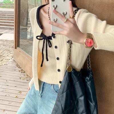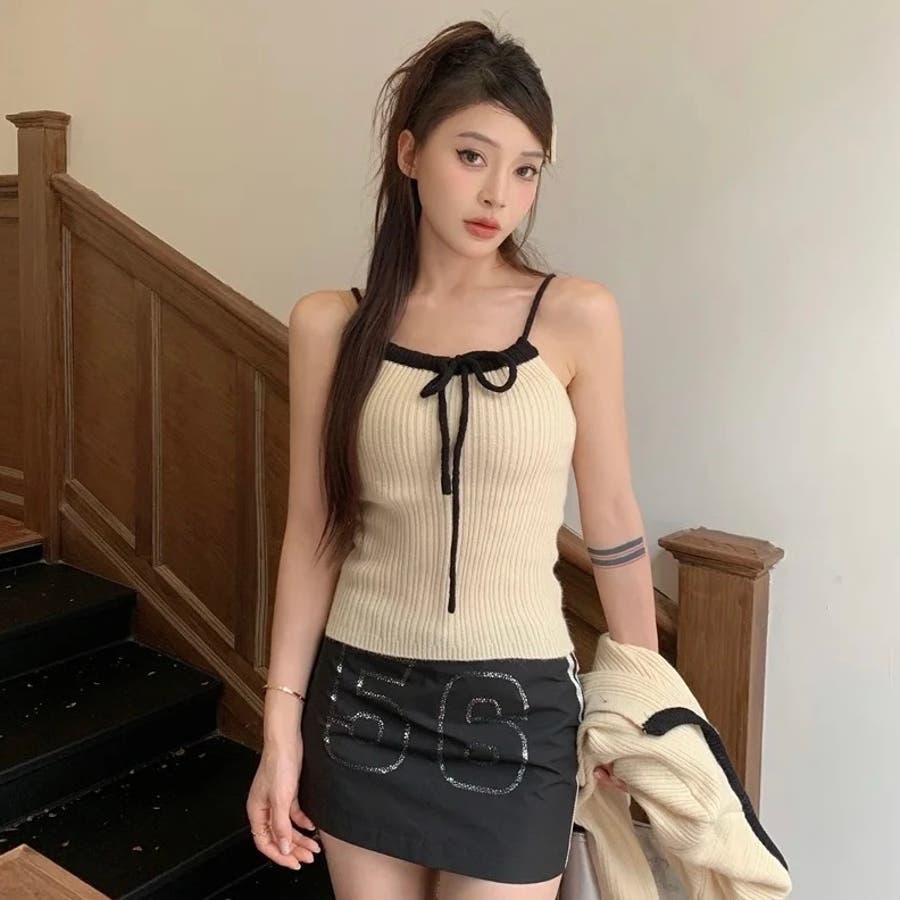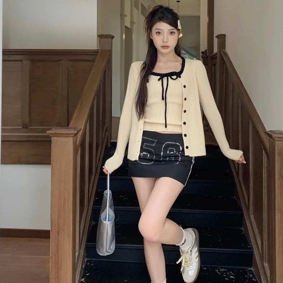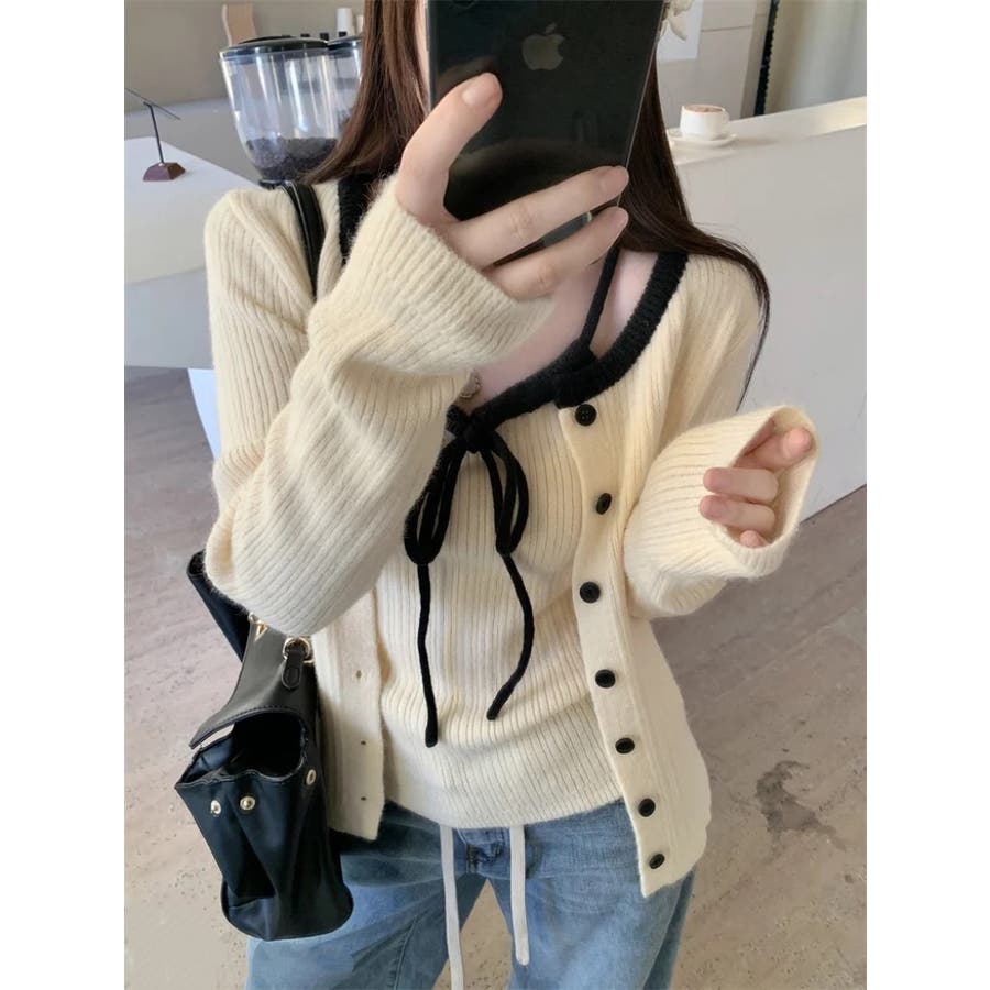 今季大人気の配色リボンニットキャミとカーディガンのセットアイテムが登場!