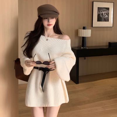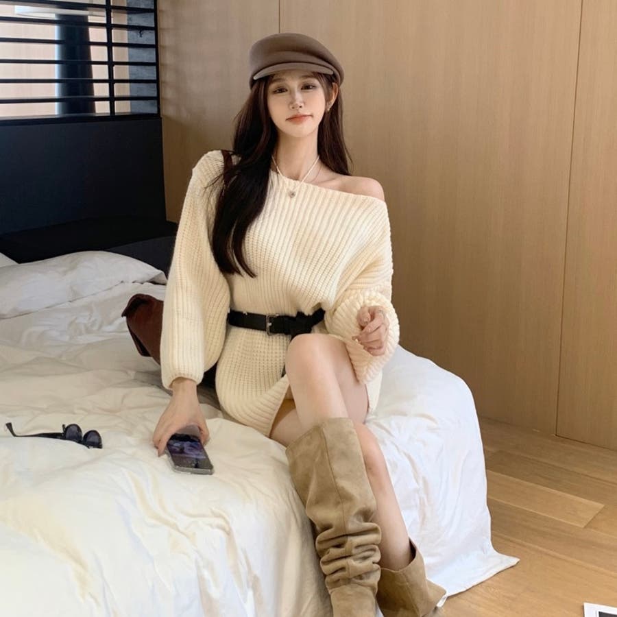 ウエスト部分のベルトで女の子らしいラインを演出できて、ロングブーツと合わせるとスタイルアップ効果も◎
