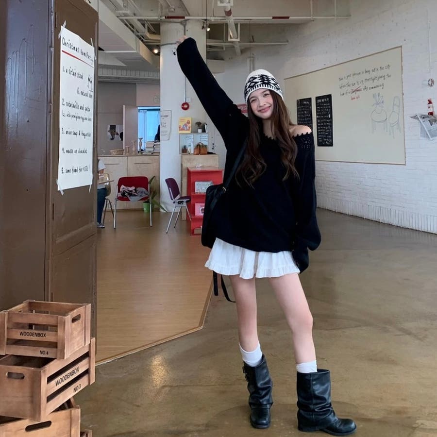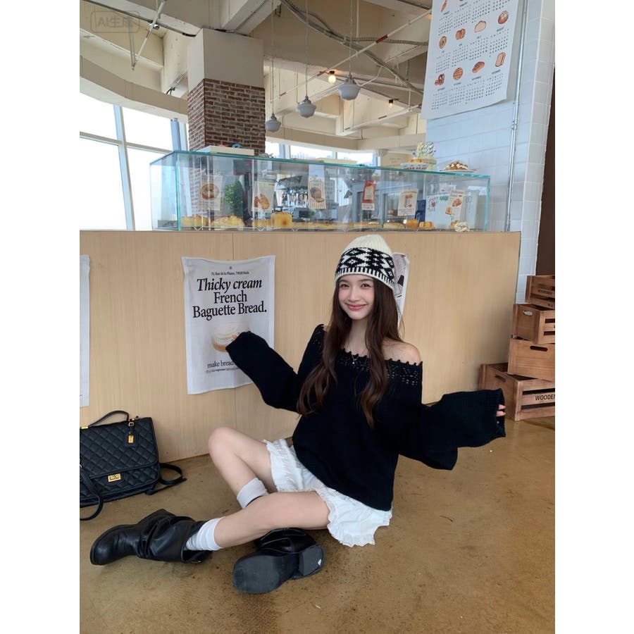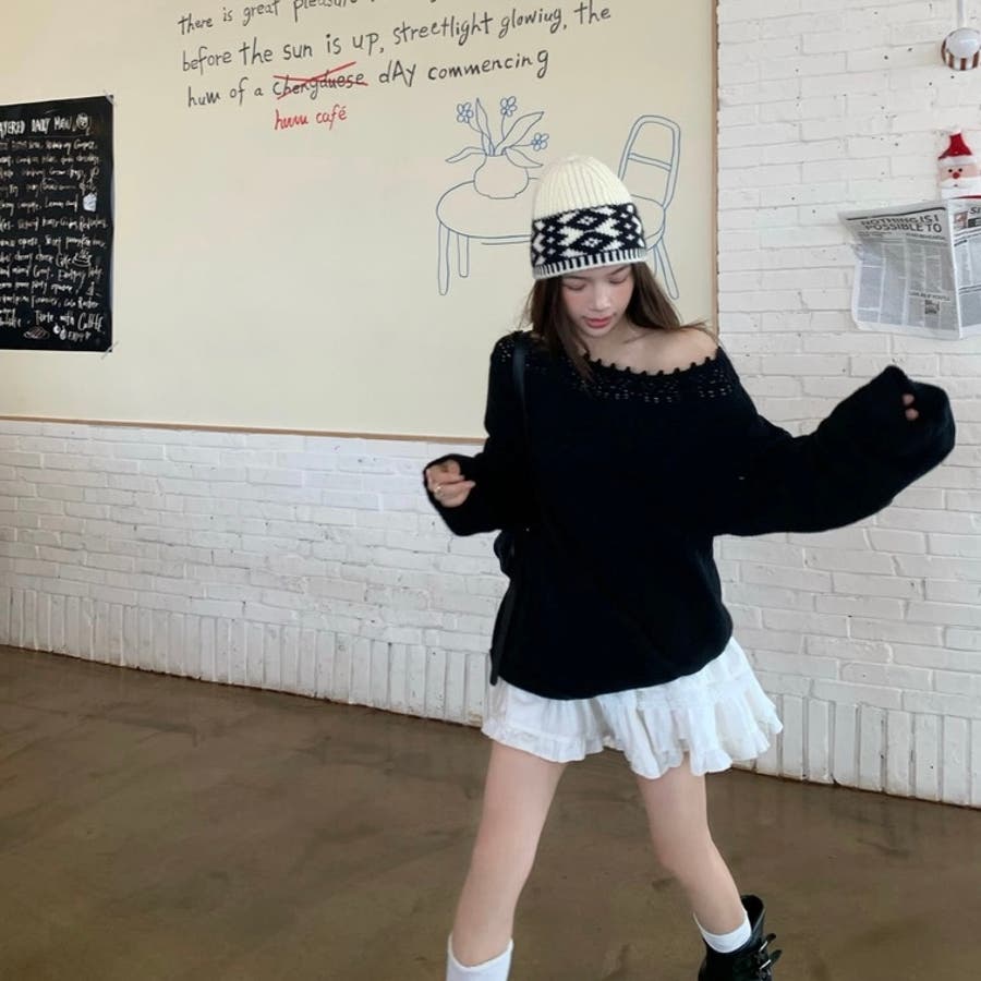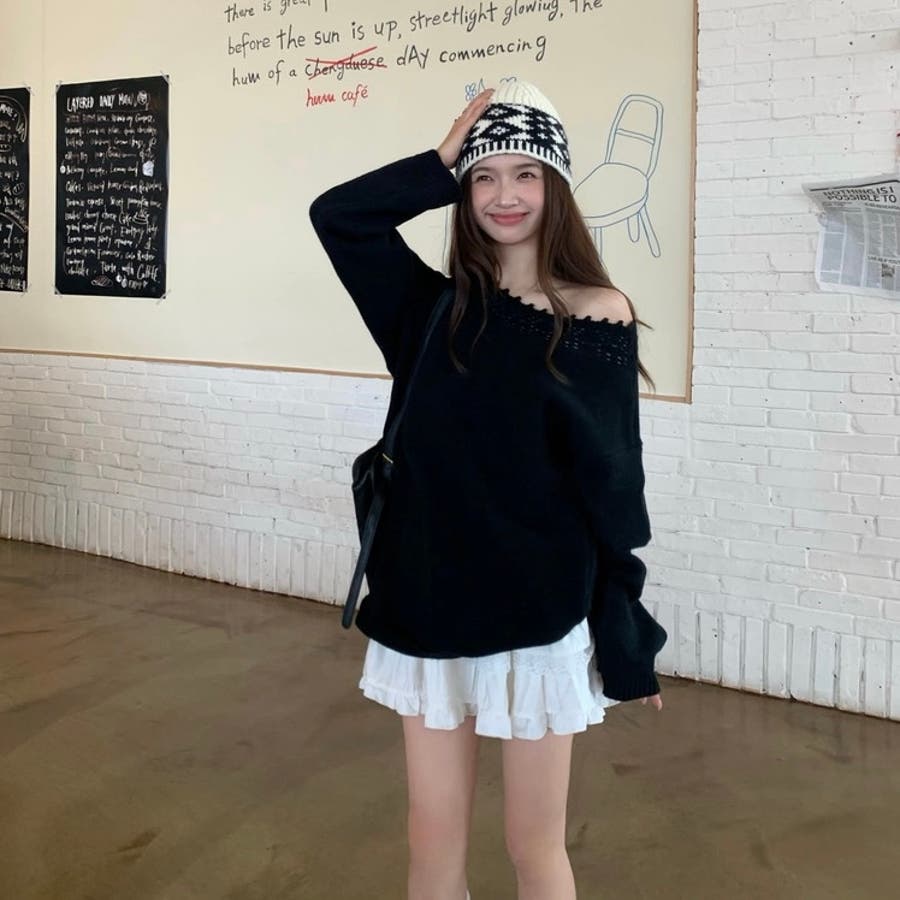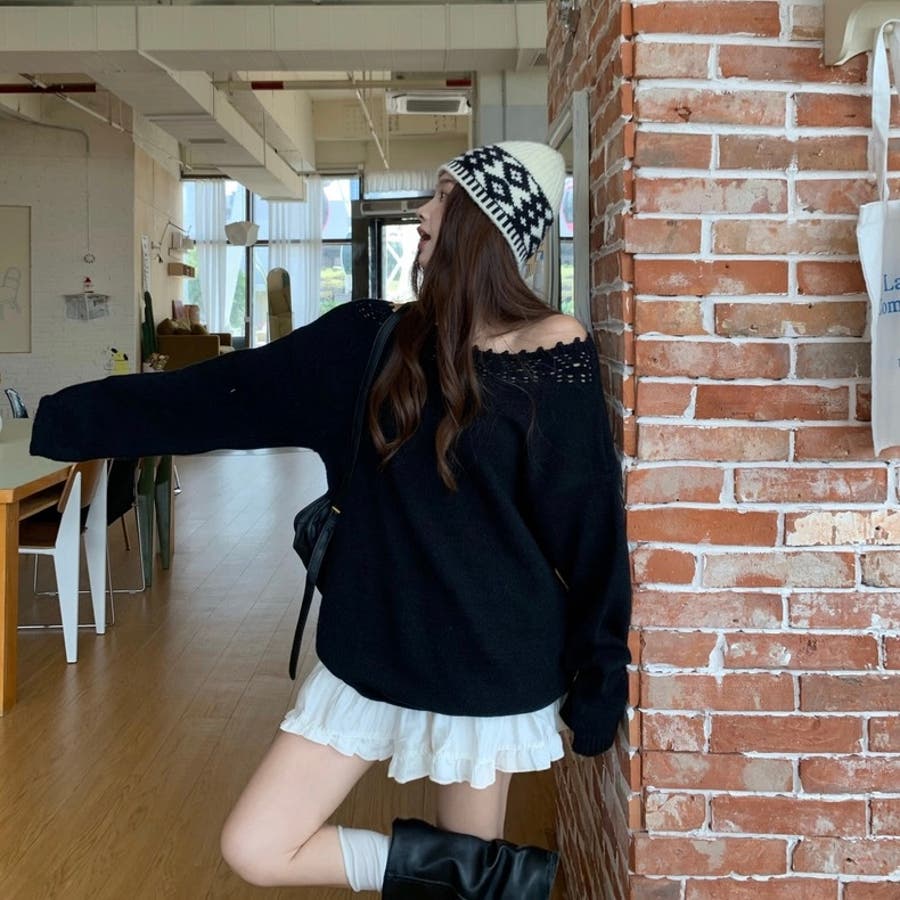 オフショルダーニット