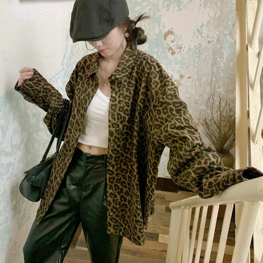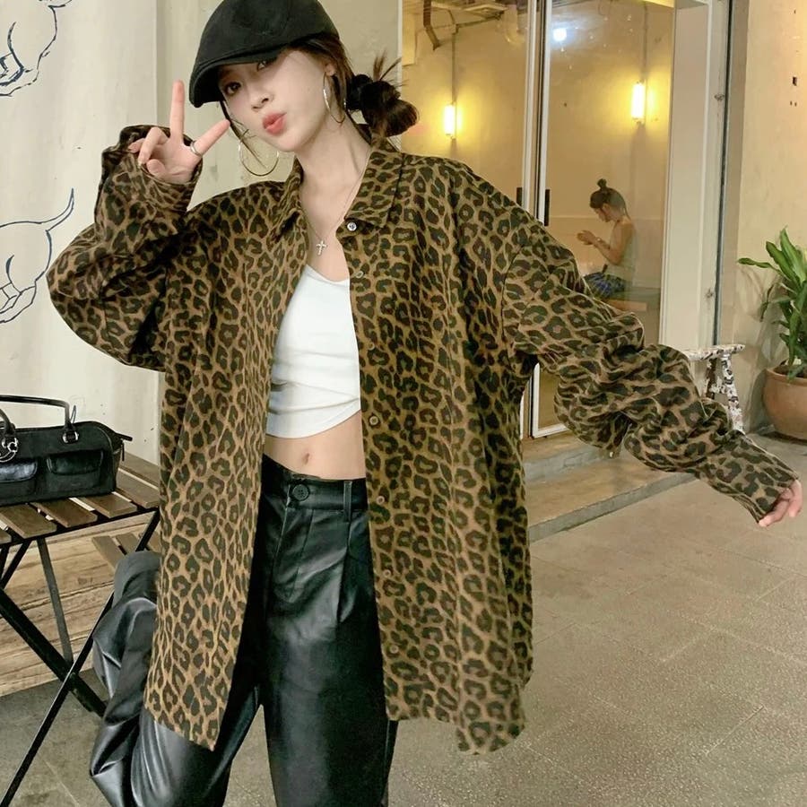 オーバーサイズレオパード柄シャツ