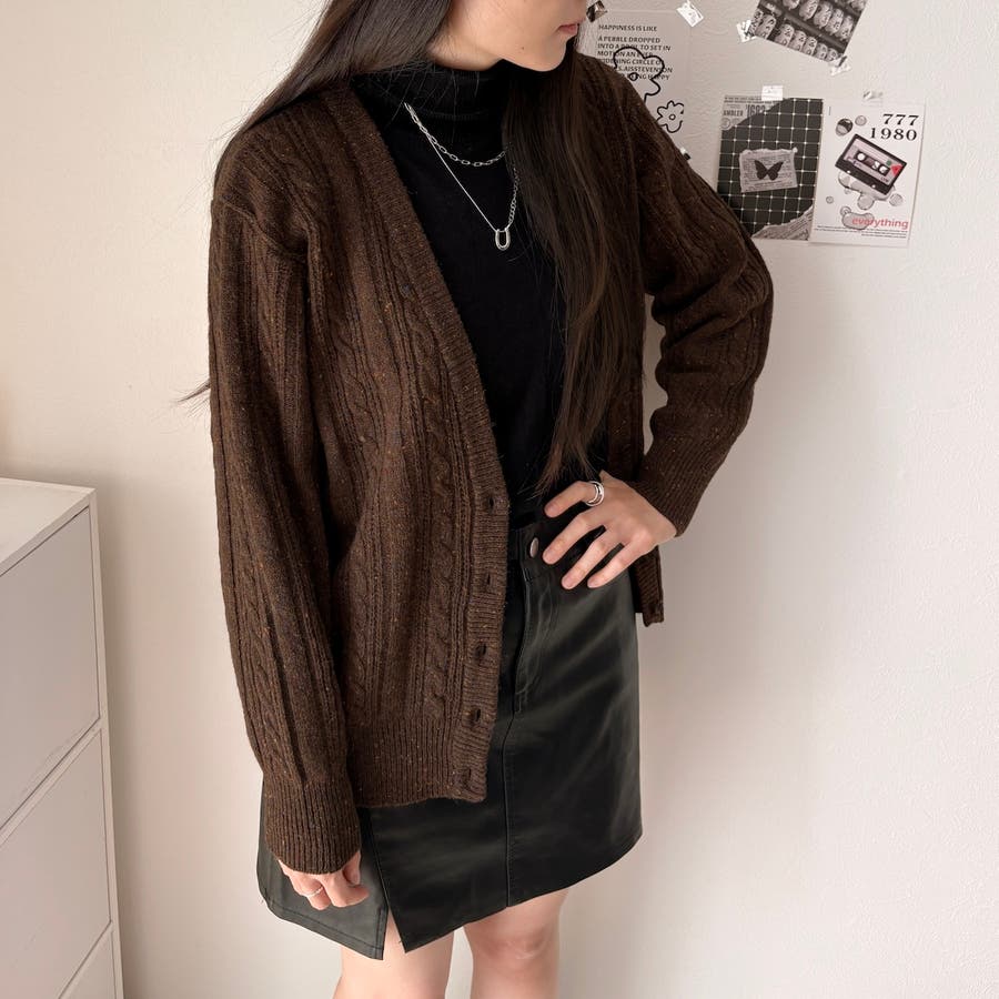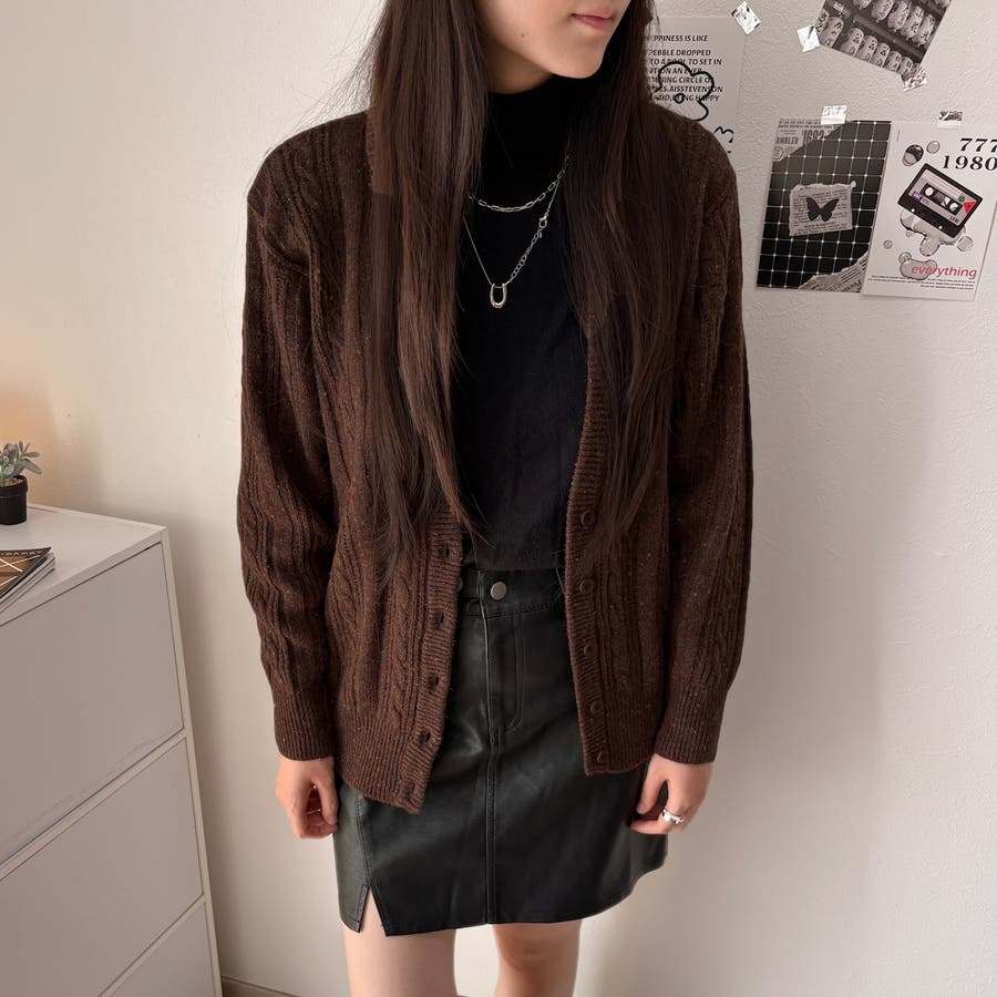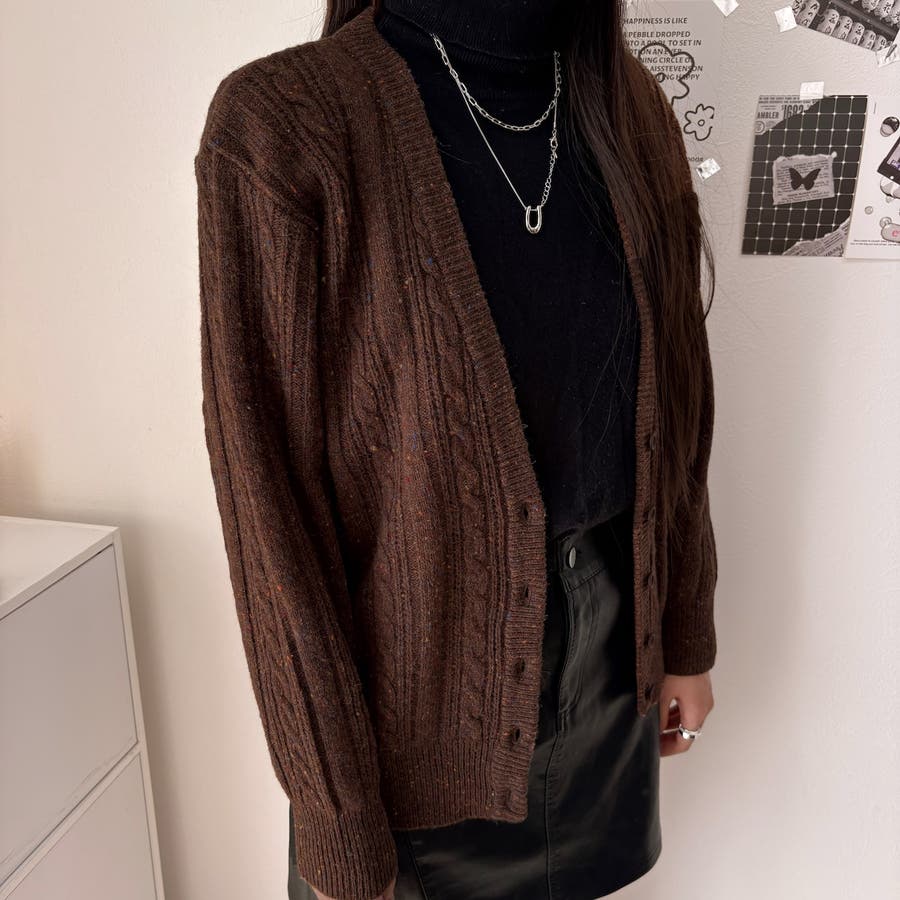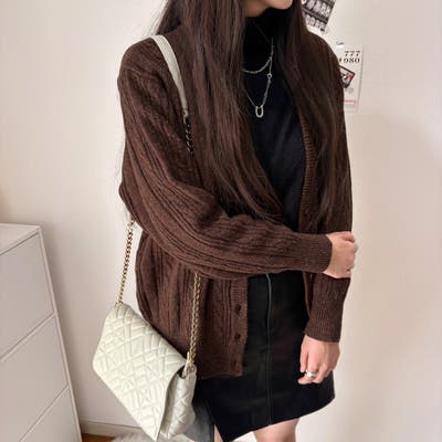 ケーブル編みVネックニットカーディガン