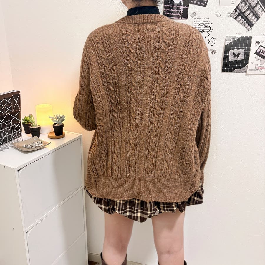 立体感のあるケーブル編みが可愛いニットカーディガン♡