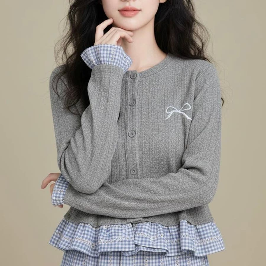 袖口と裾の チェックフリル が可愛さを引き立て、1枚で 重ね着風コーデが完成 する優秀アイテムです。
