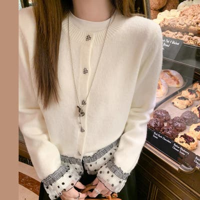ドットチュール切り替え ニットカーディガン