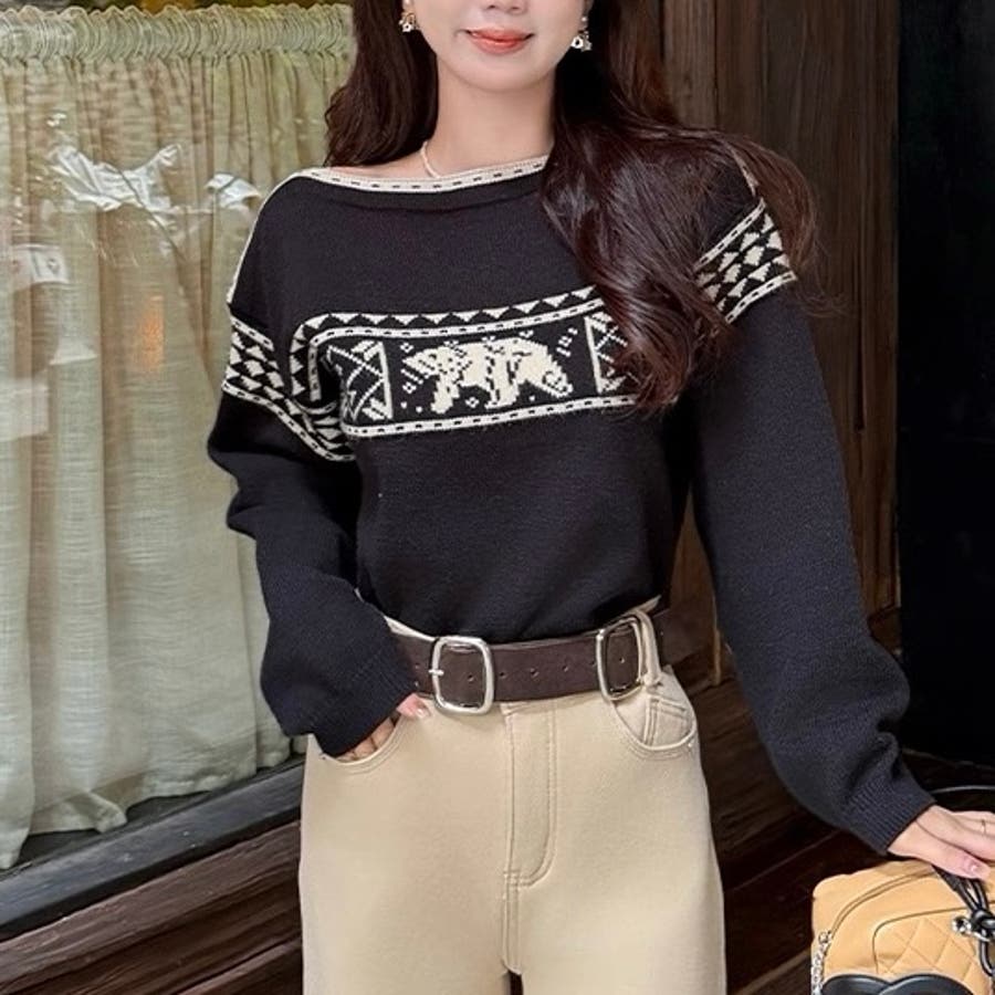 冬らしいノルディック柄ジャガードが印象的なニットプルオーバー。