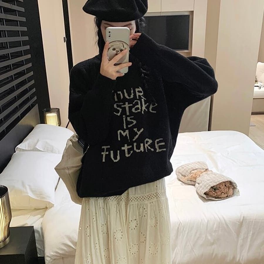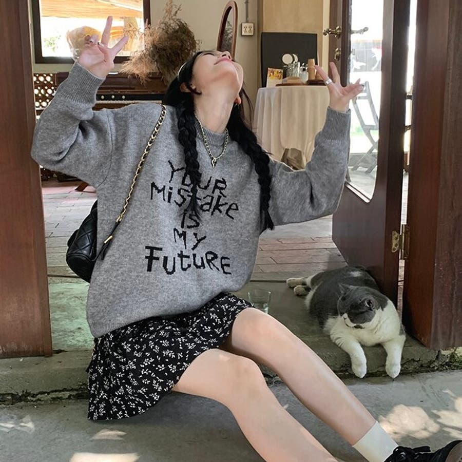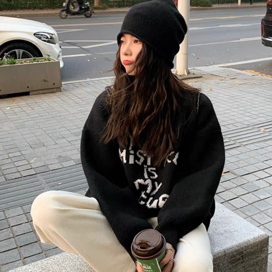 存在感たっぷりのロゴデザインがポイントの、韓国っぽストリート感ただようゆるニットが登場♡
