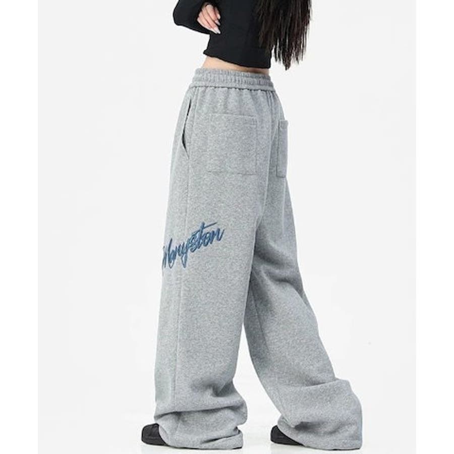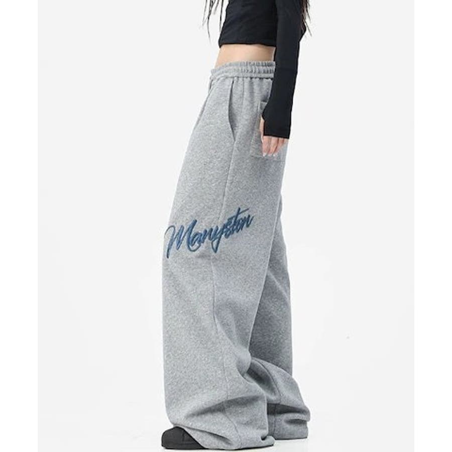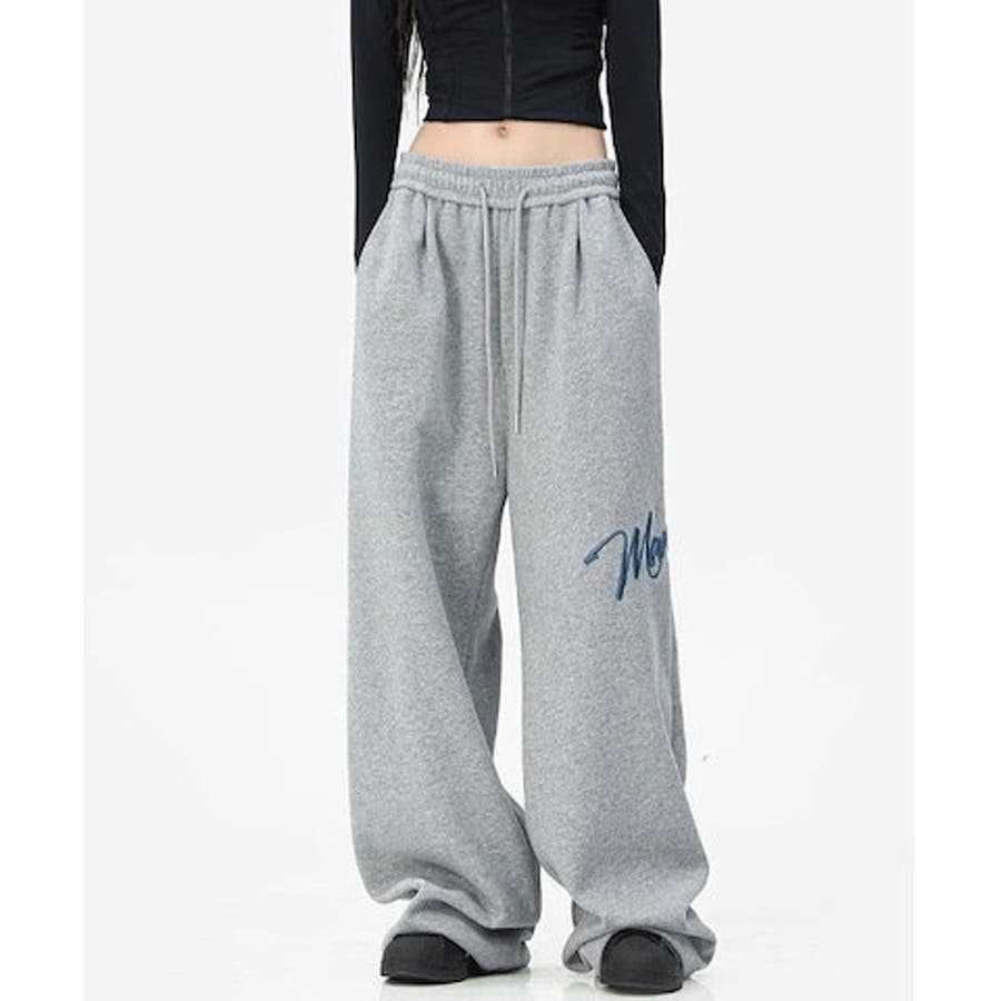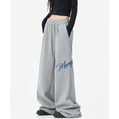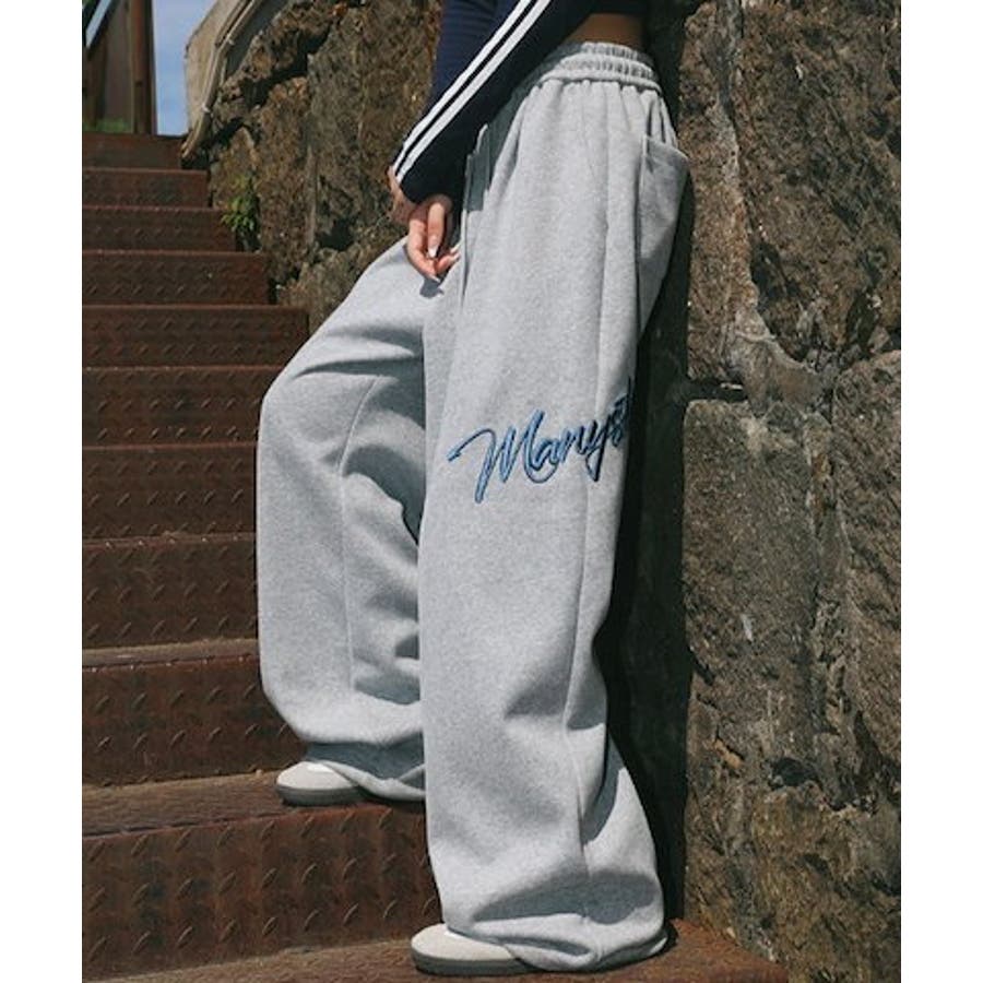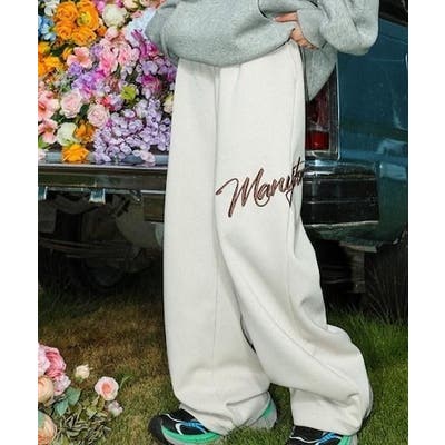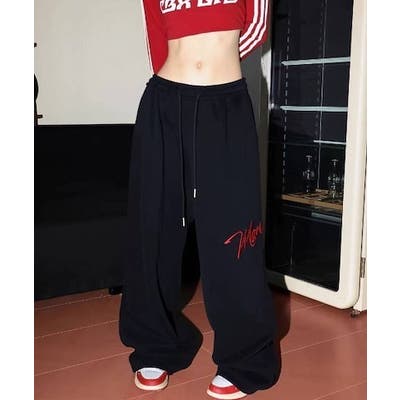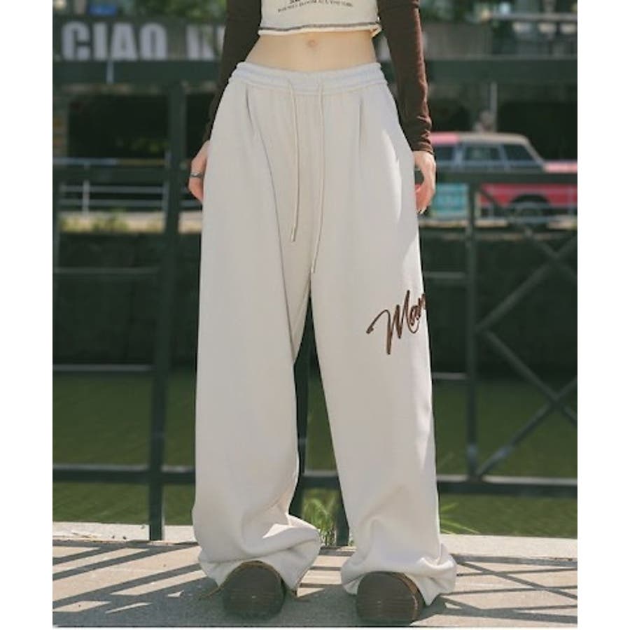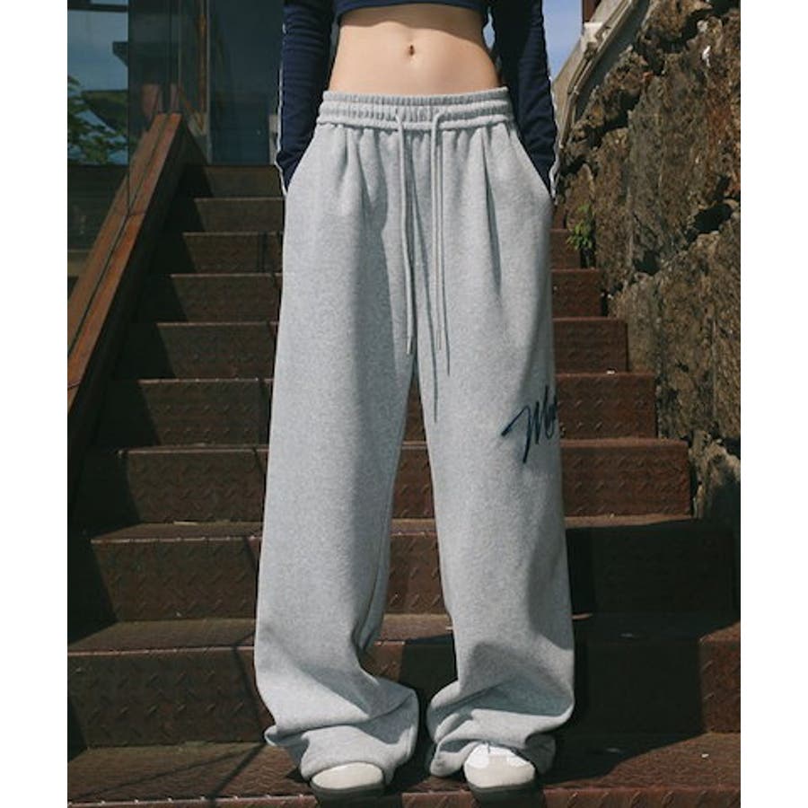 ワイドスウェットパンツ 刺繍ロゴ入り / ゆるかわ トレンド 韓国コーデに◎