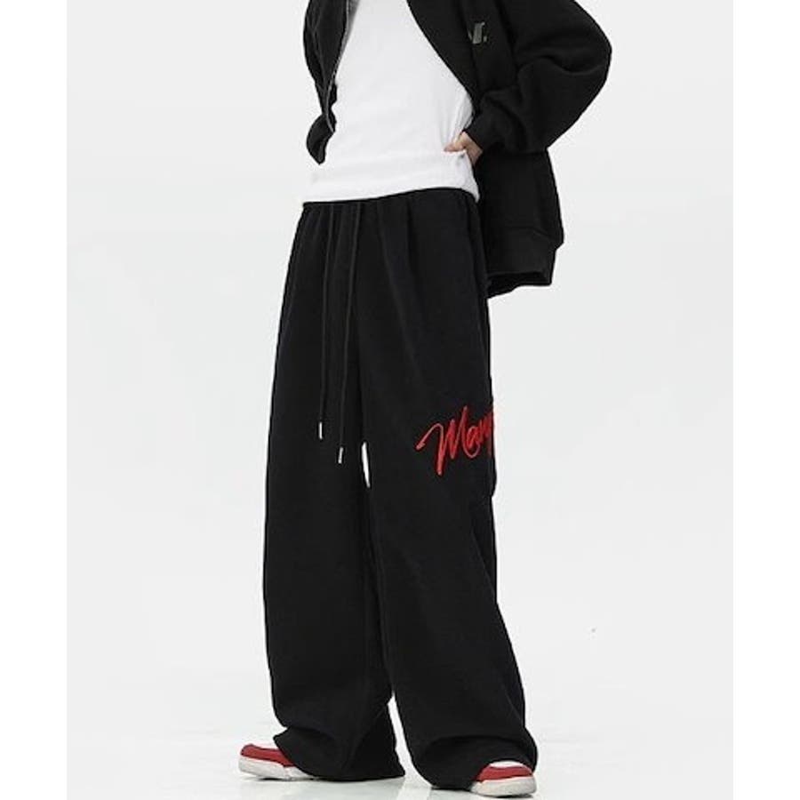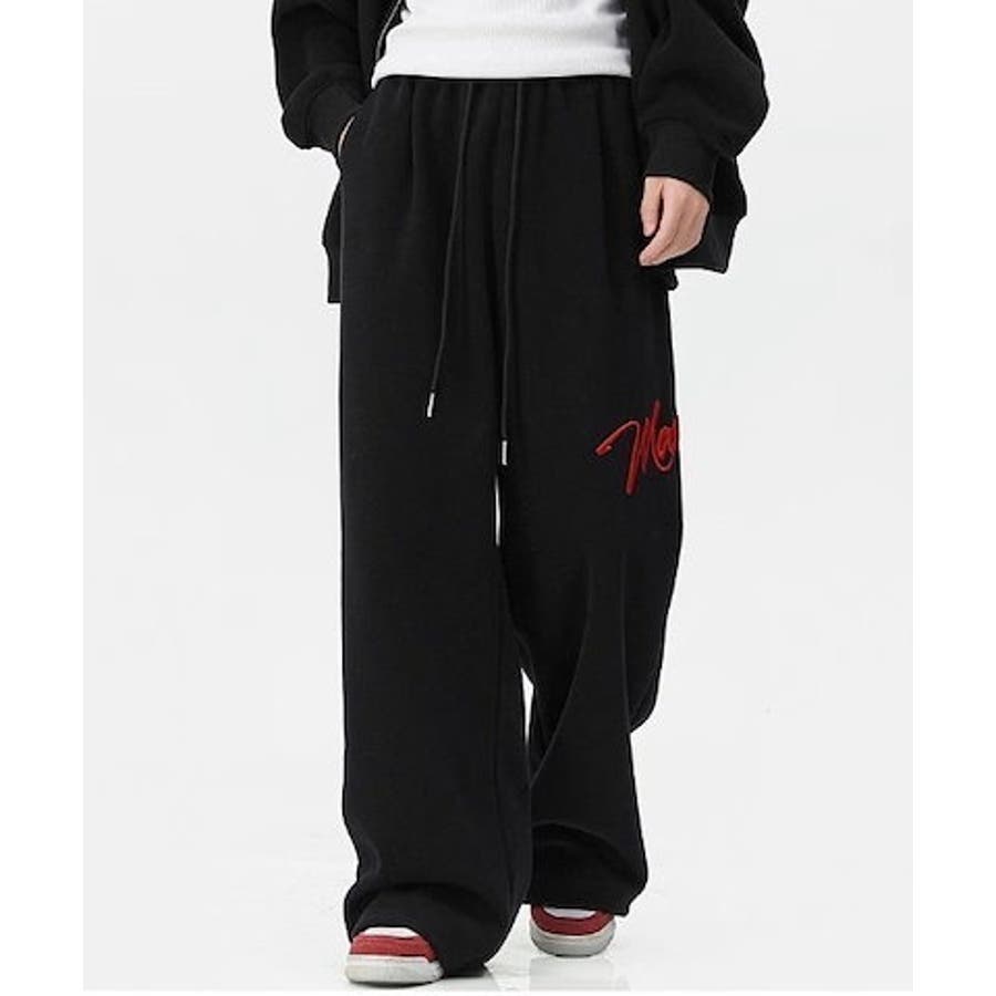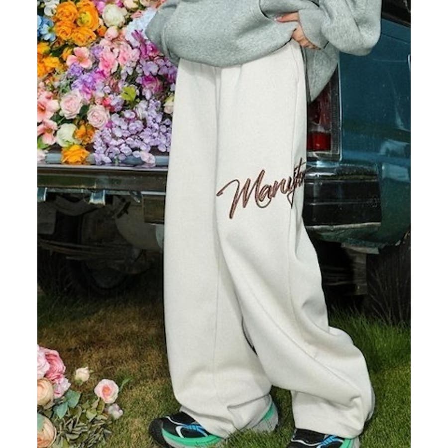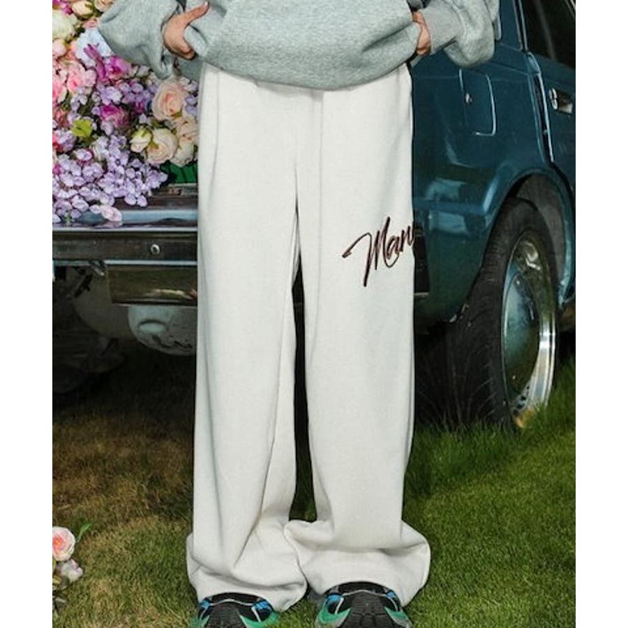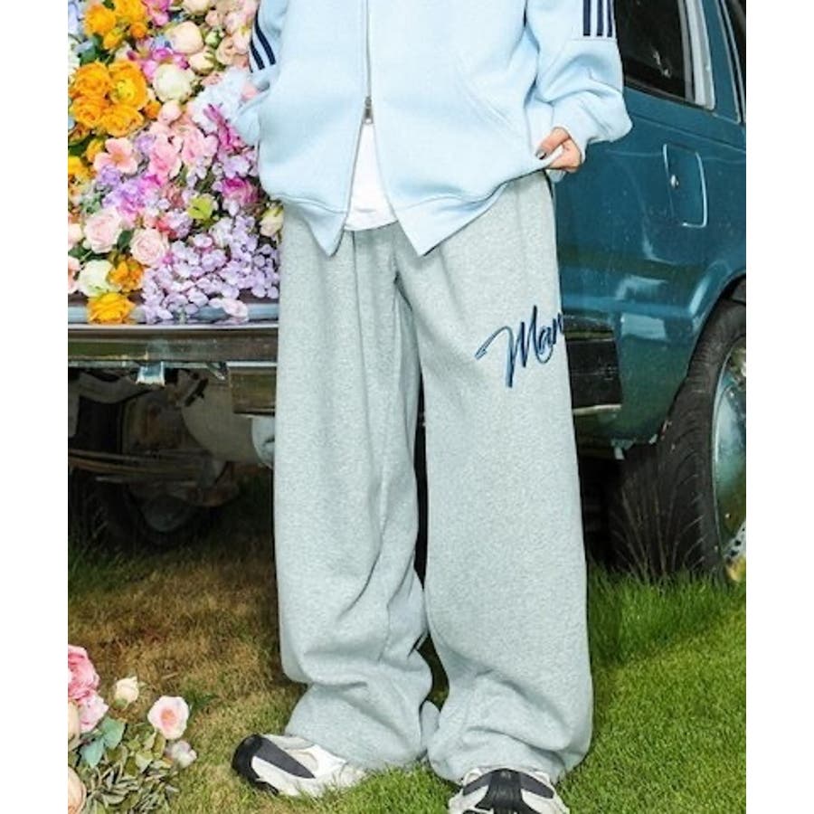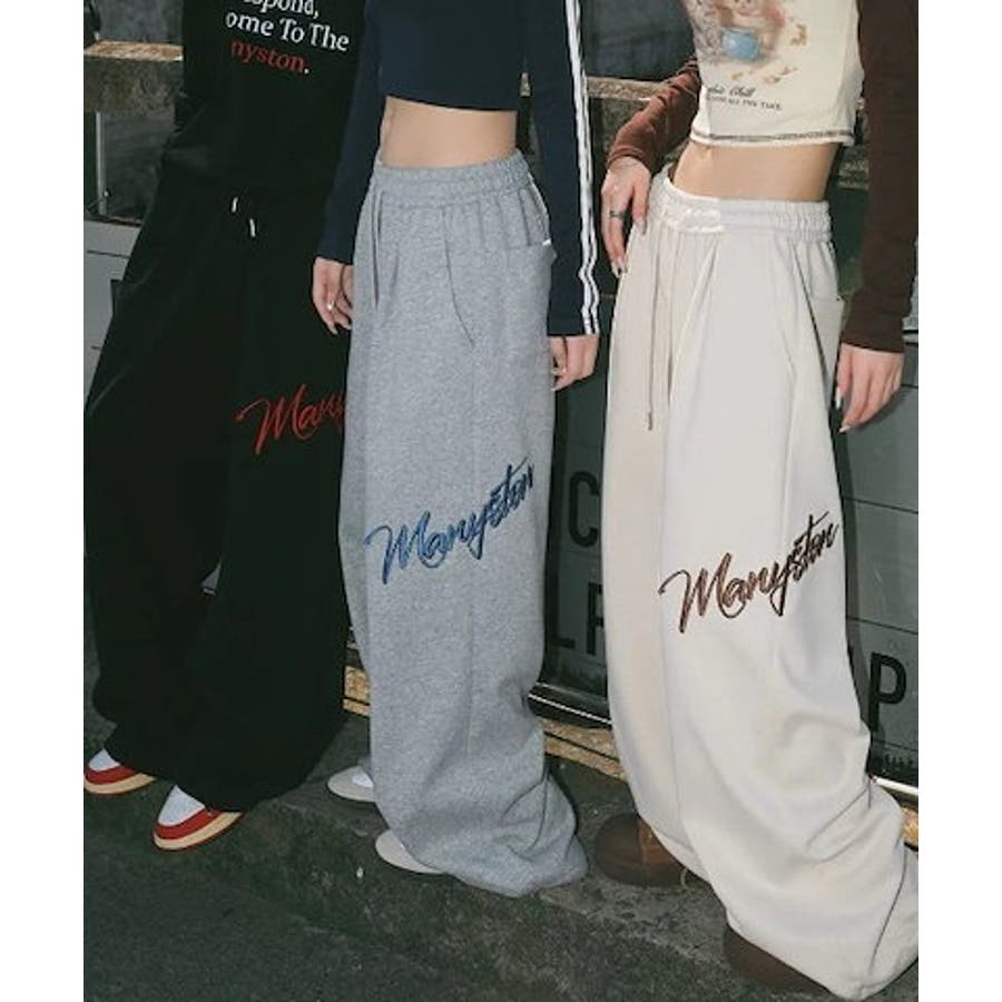ワイドスウェットパンツ 刺繍ロゴ入り / ゆるかわ トレンド 韓国コーデに◎