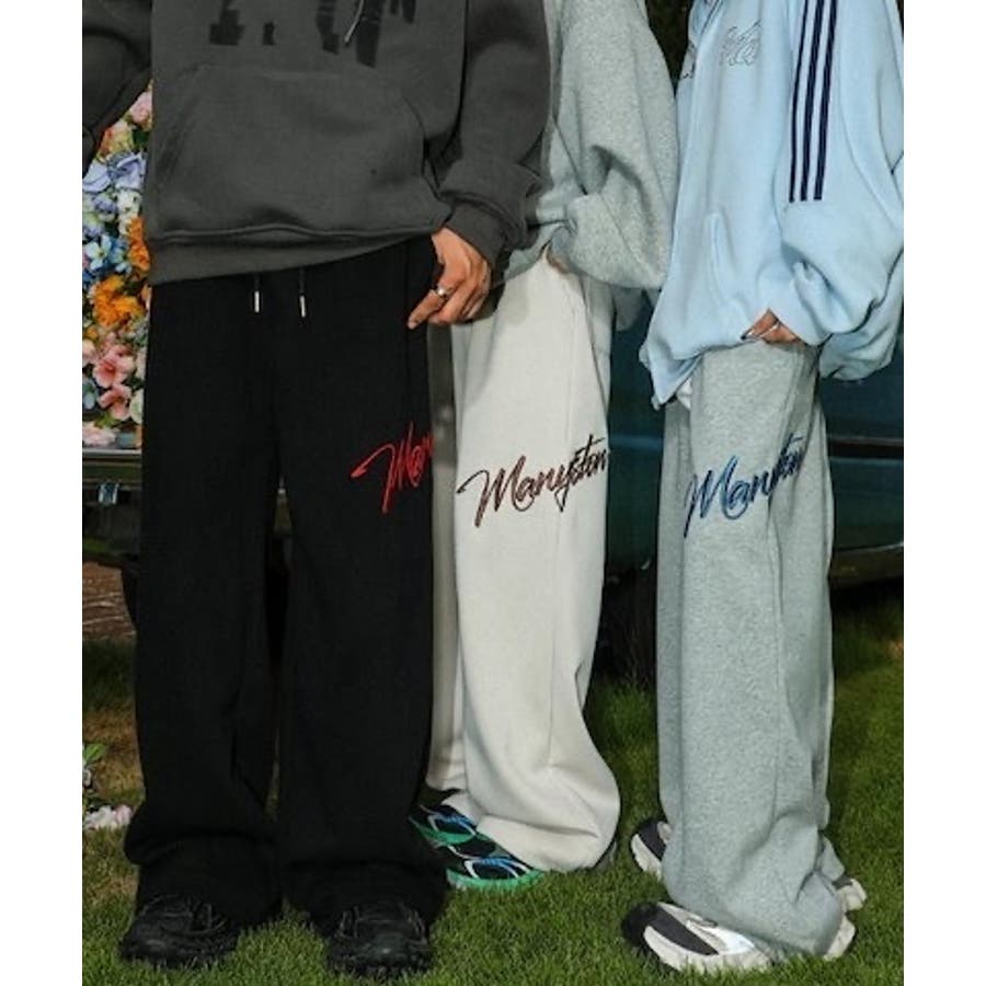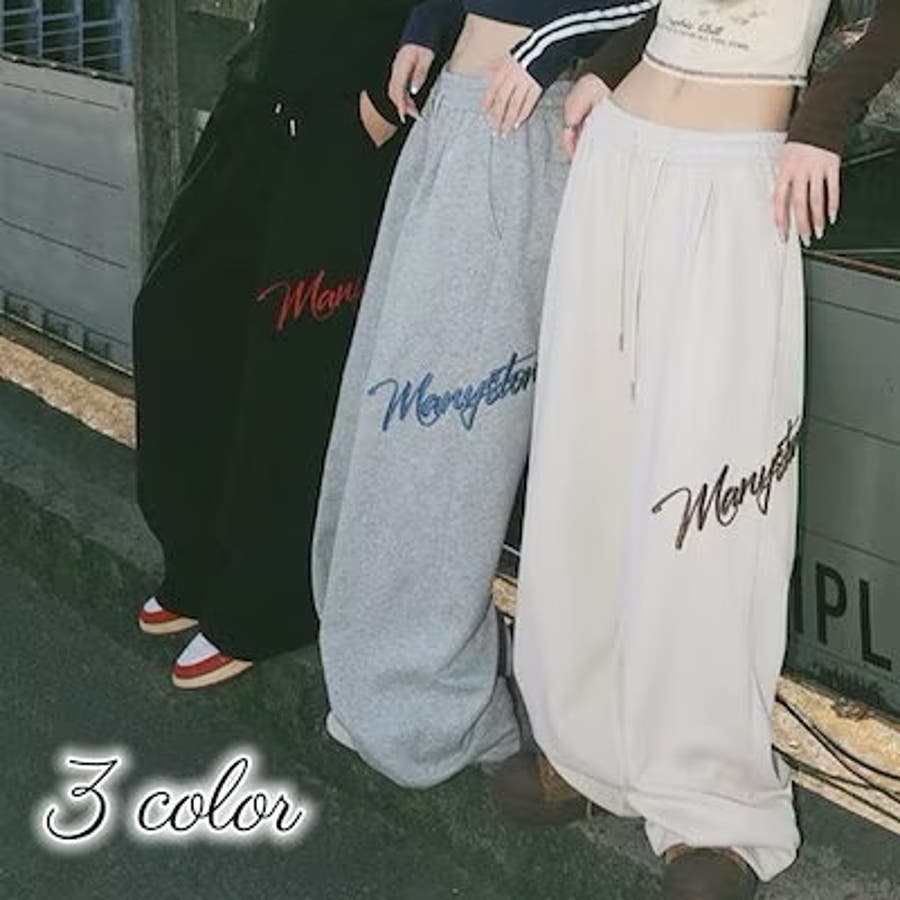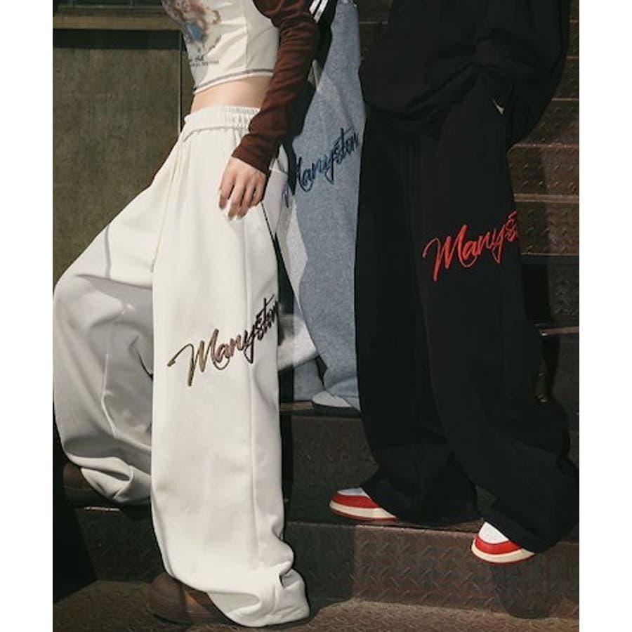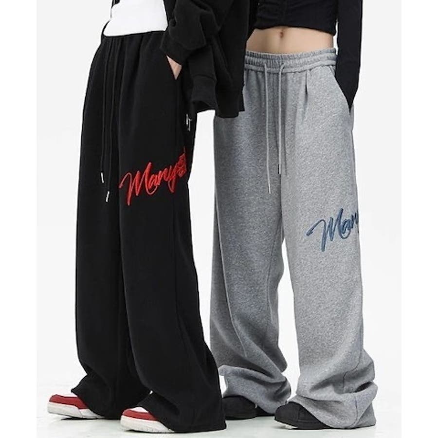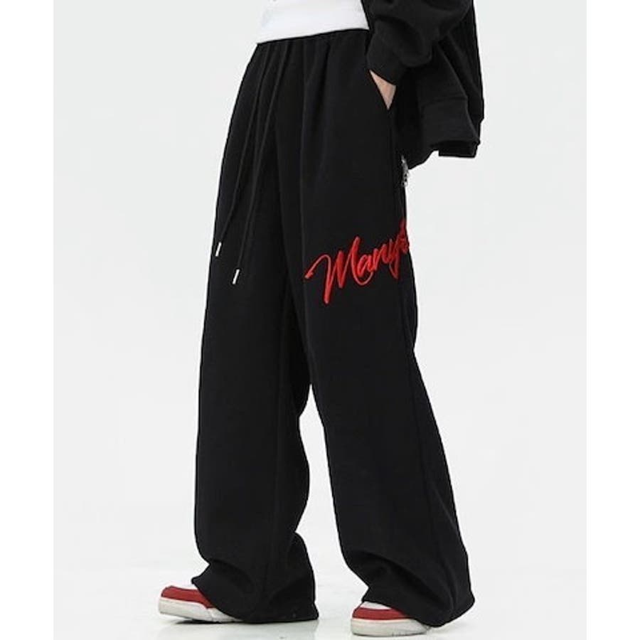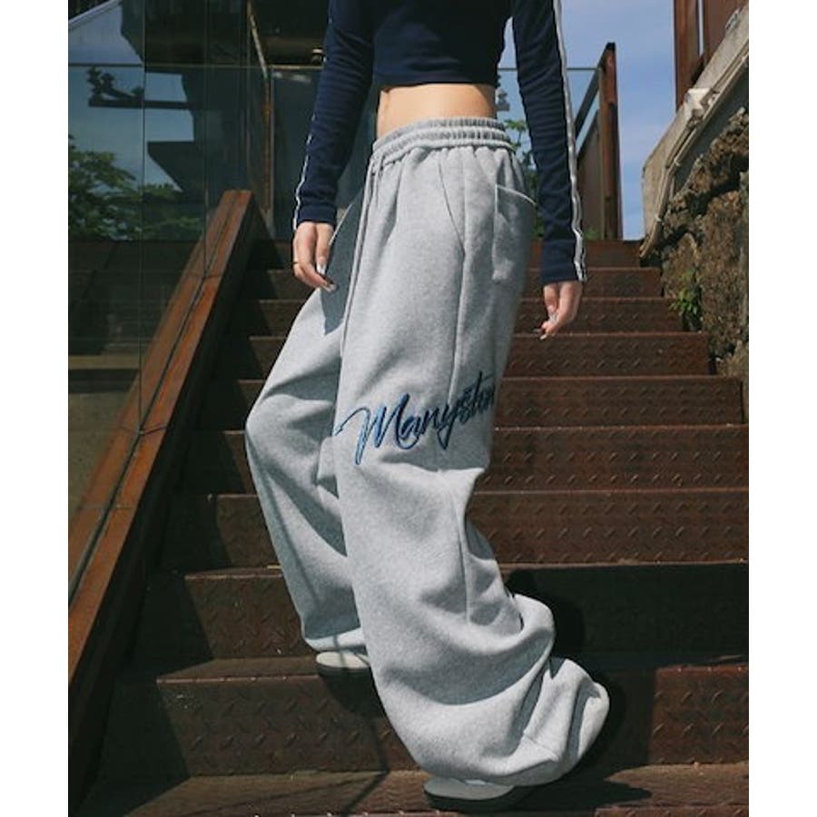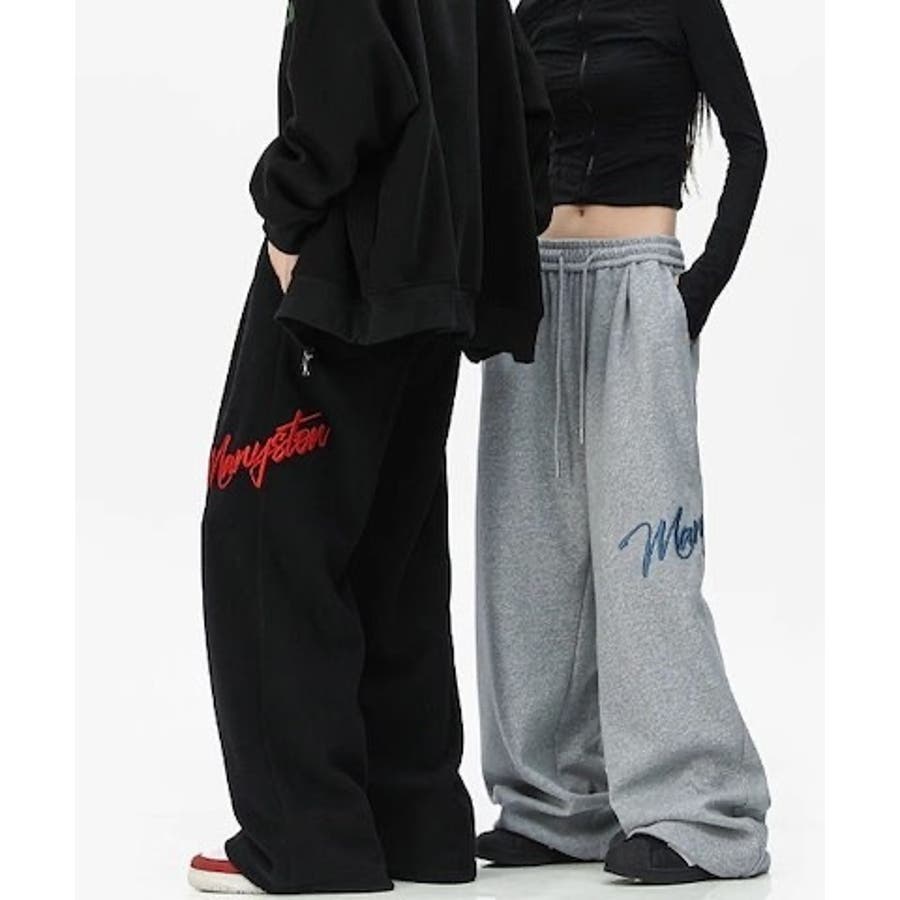 ワイドスウェットパンツ 刺繍ロゴ入り / ゆるかわ トレンド 韓国コーデに◎
