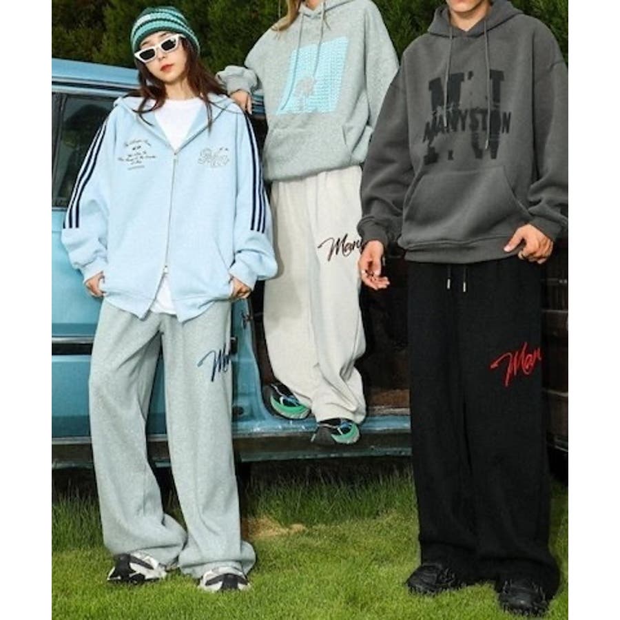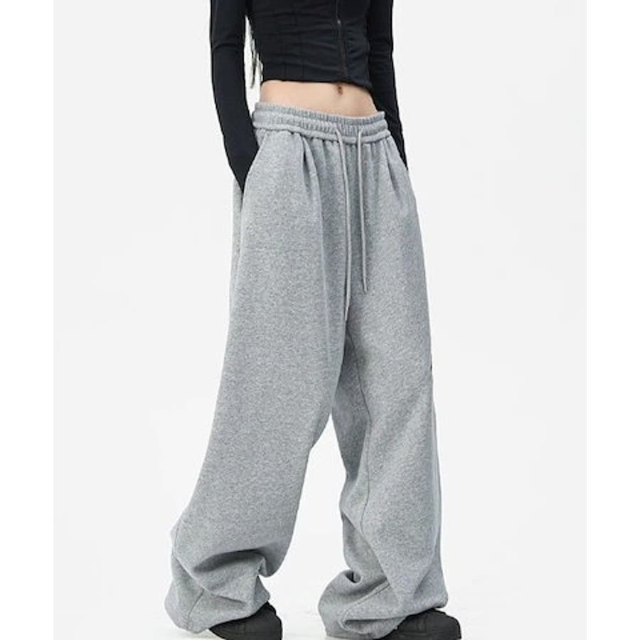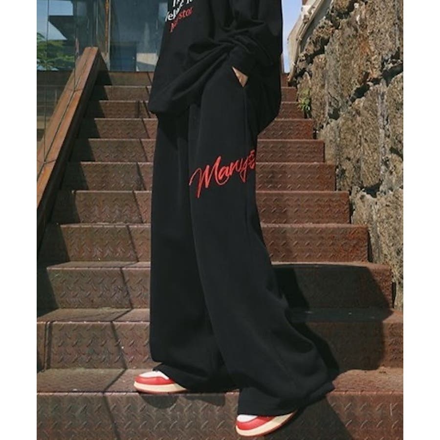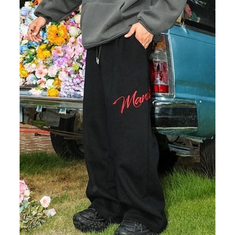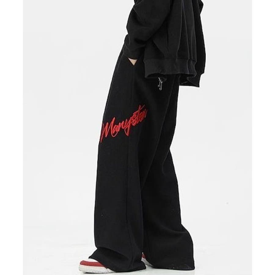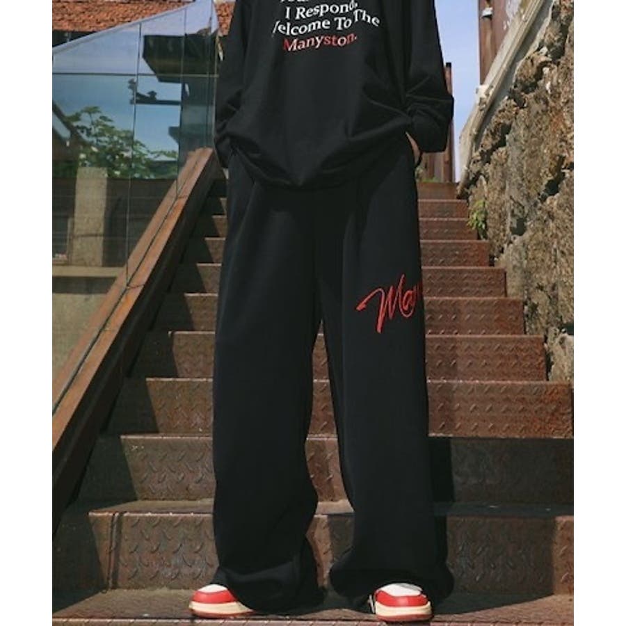 ワイドスウェットパンツ 刺繍ロゴ入り / ゆるかわ トレンド 韓国コーデに◎
