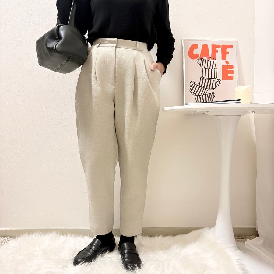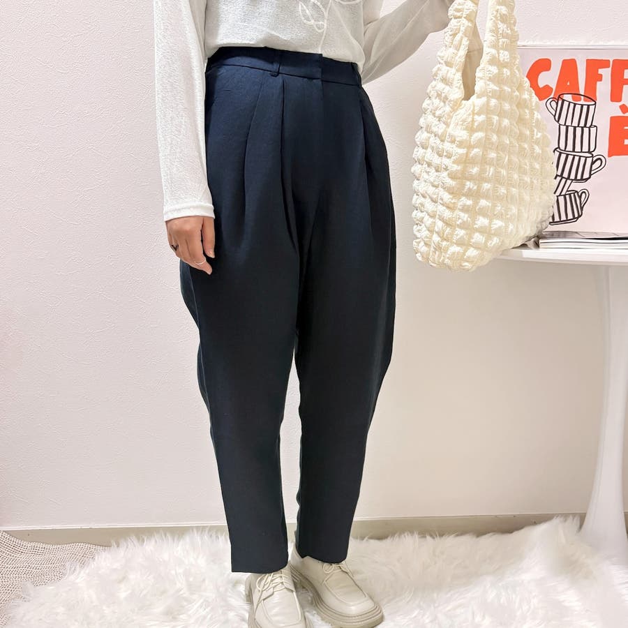 シャツやニットとの相性も抜群で、秋コーデにぴったりの万能スラックスです。