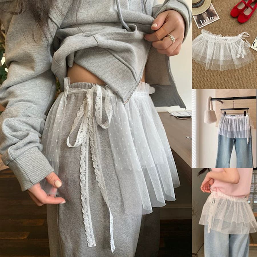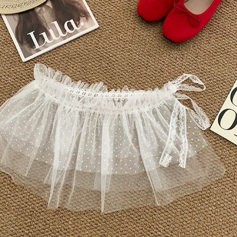 チュールドットの透かし柄にレースリボンが可愛い、人気のラップスカート♪