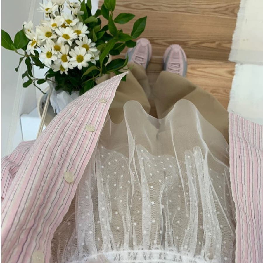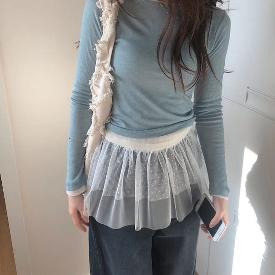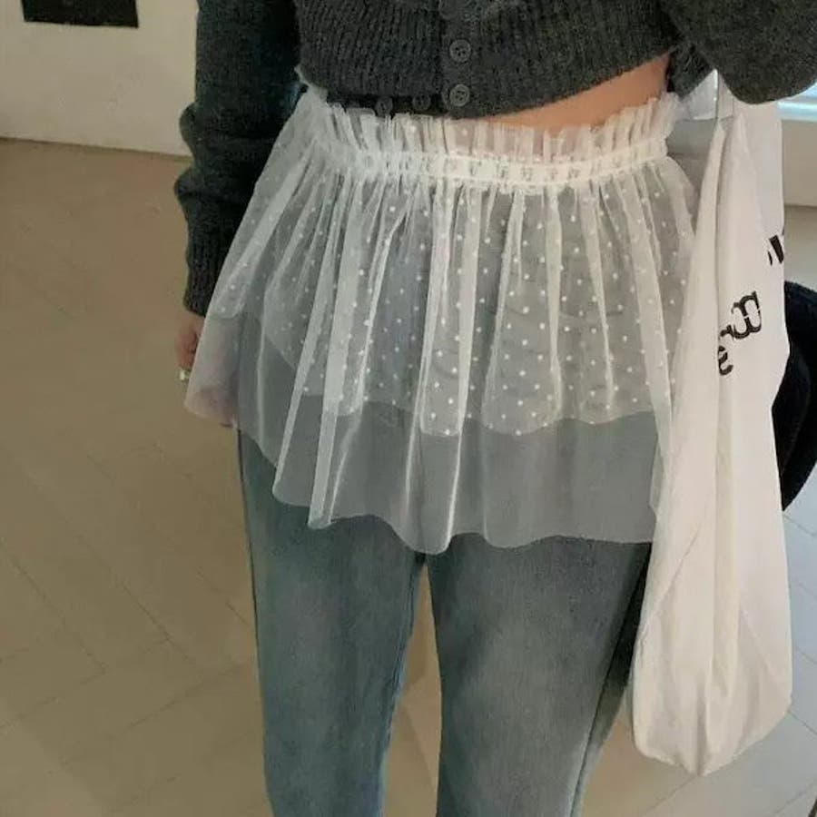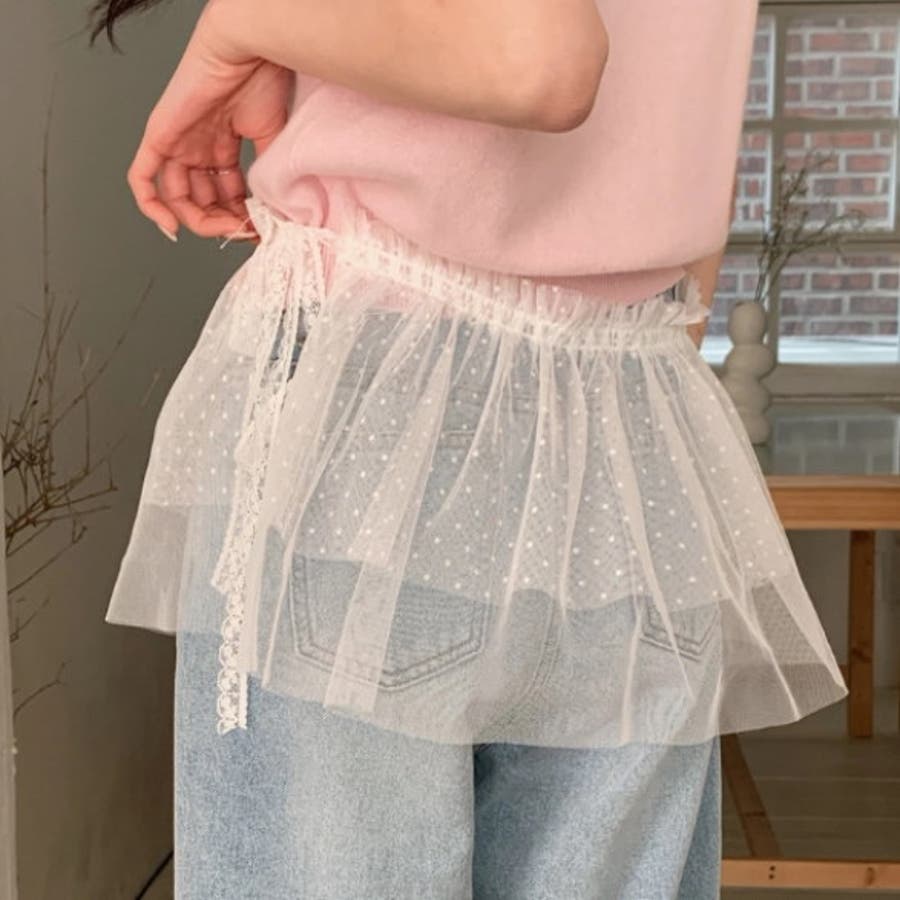透け感あるチュール素材に、ドット柄がかわいらしい雰囲気で、1つあるといつものコーデを今っぽくアップデートできます。