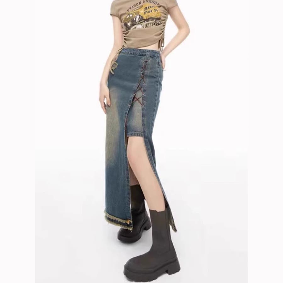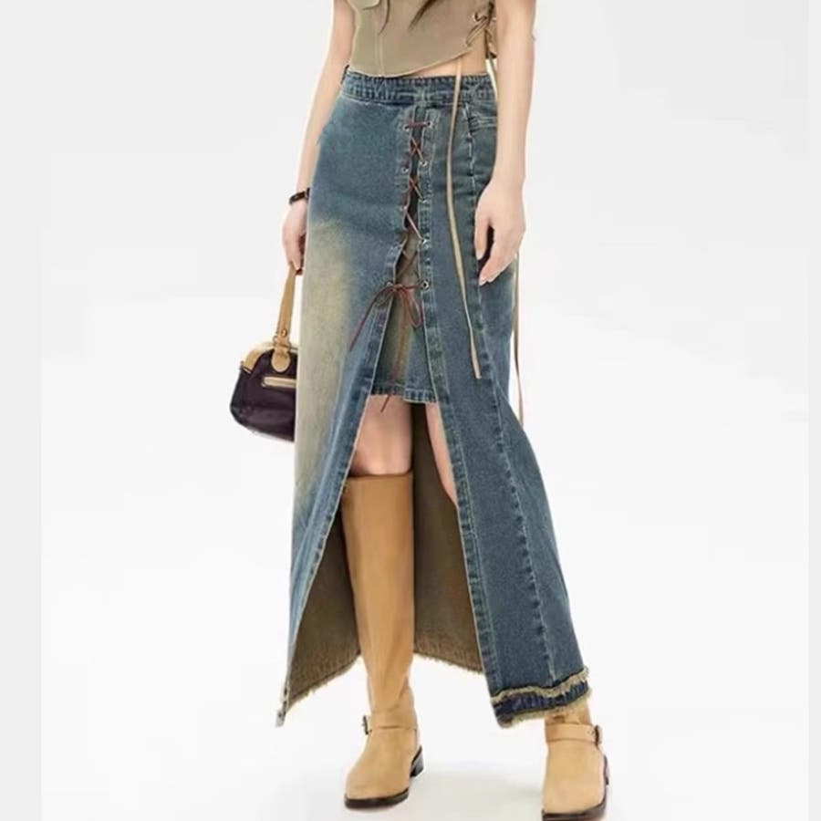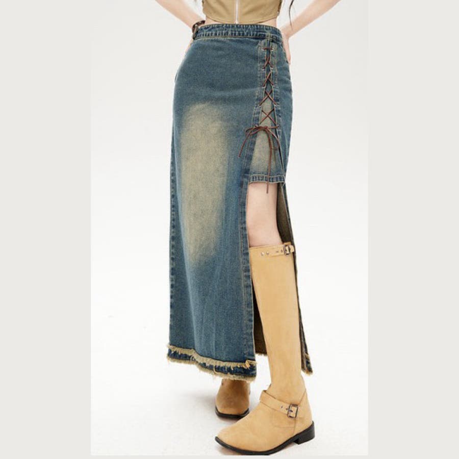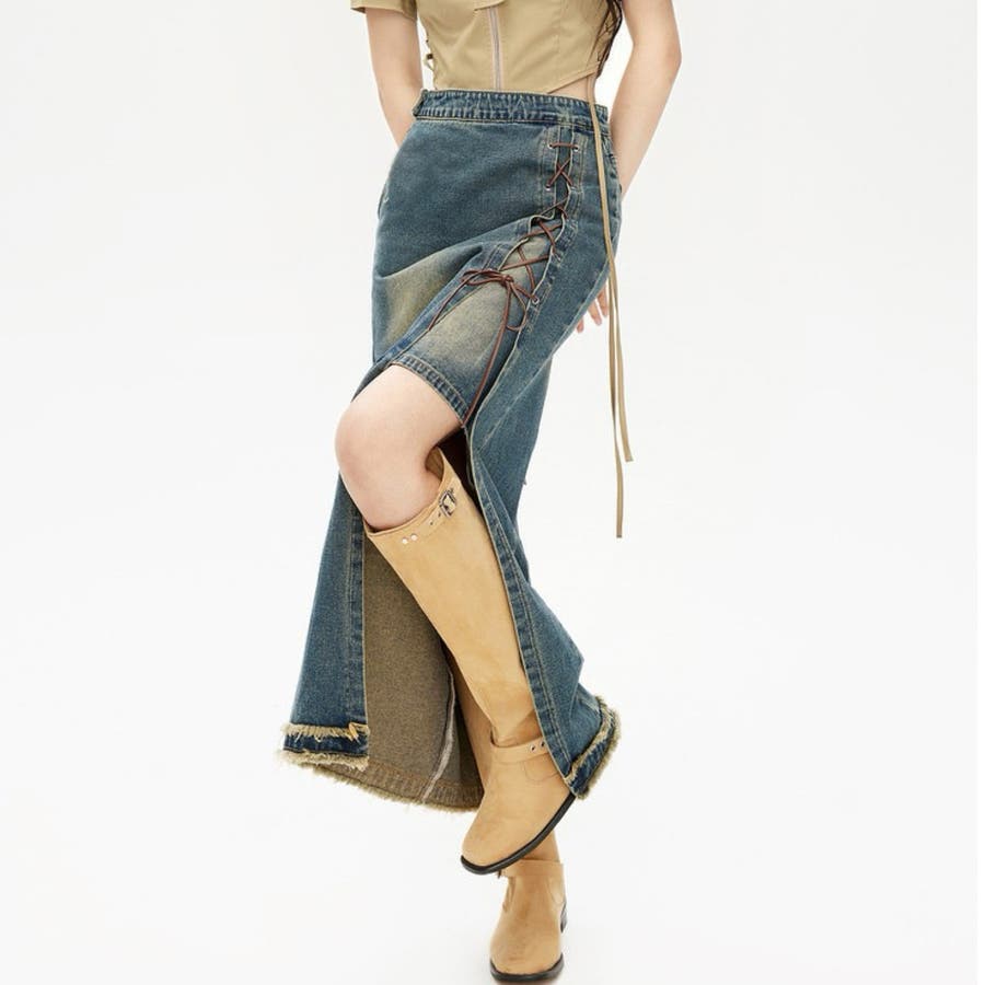 サイドのレースアップと深めスリットで甘さとクールさを両立♡