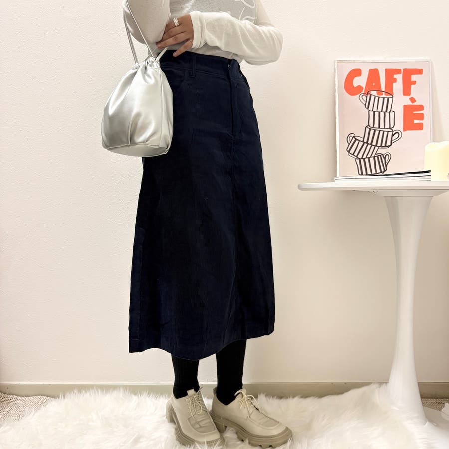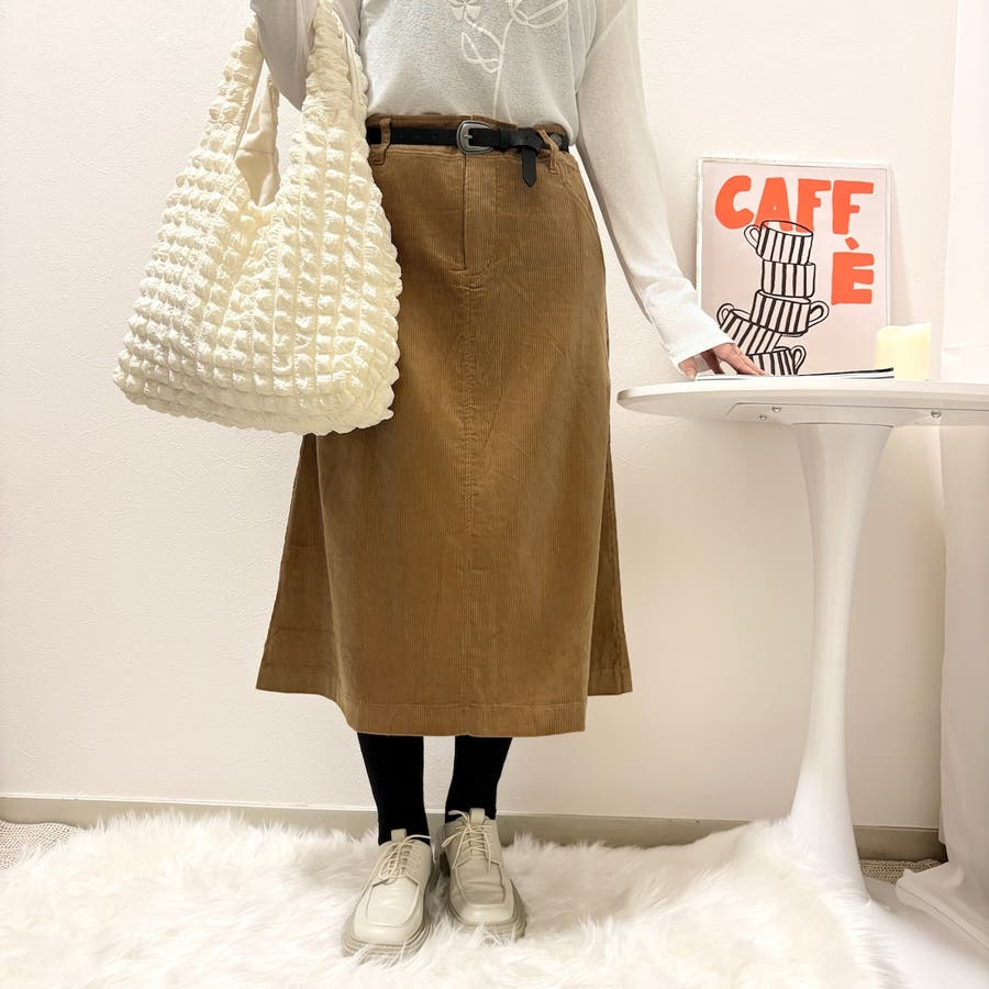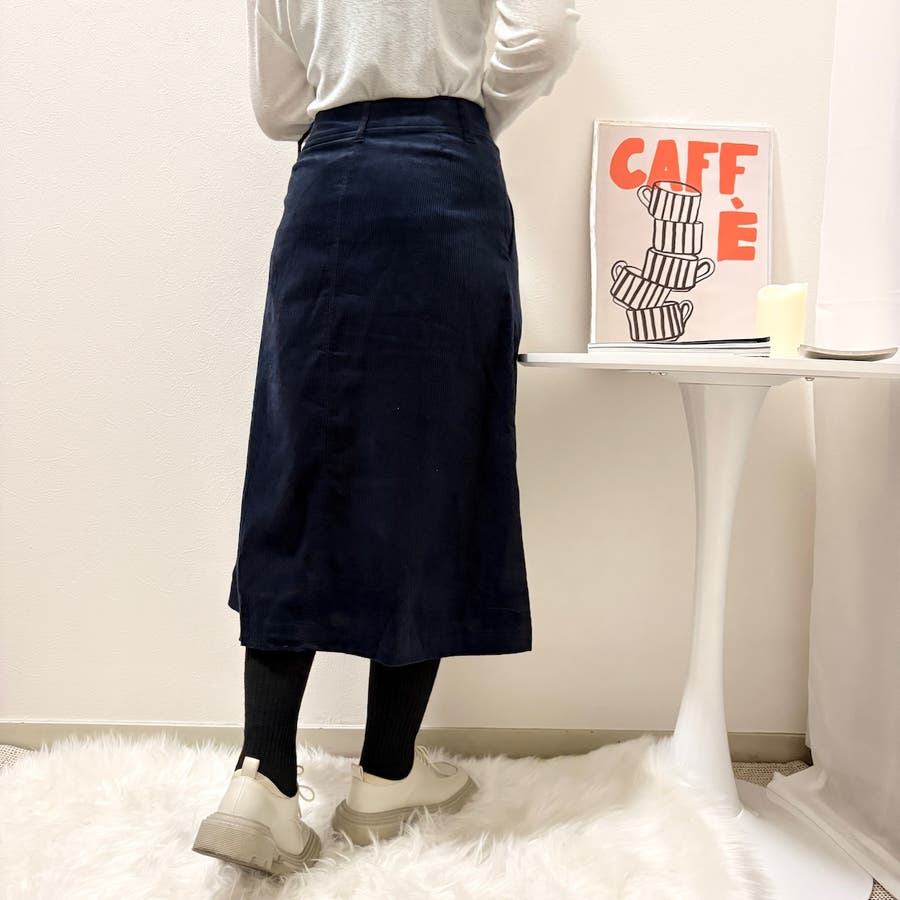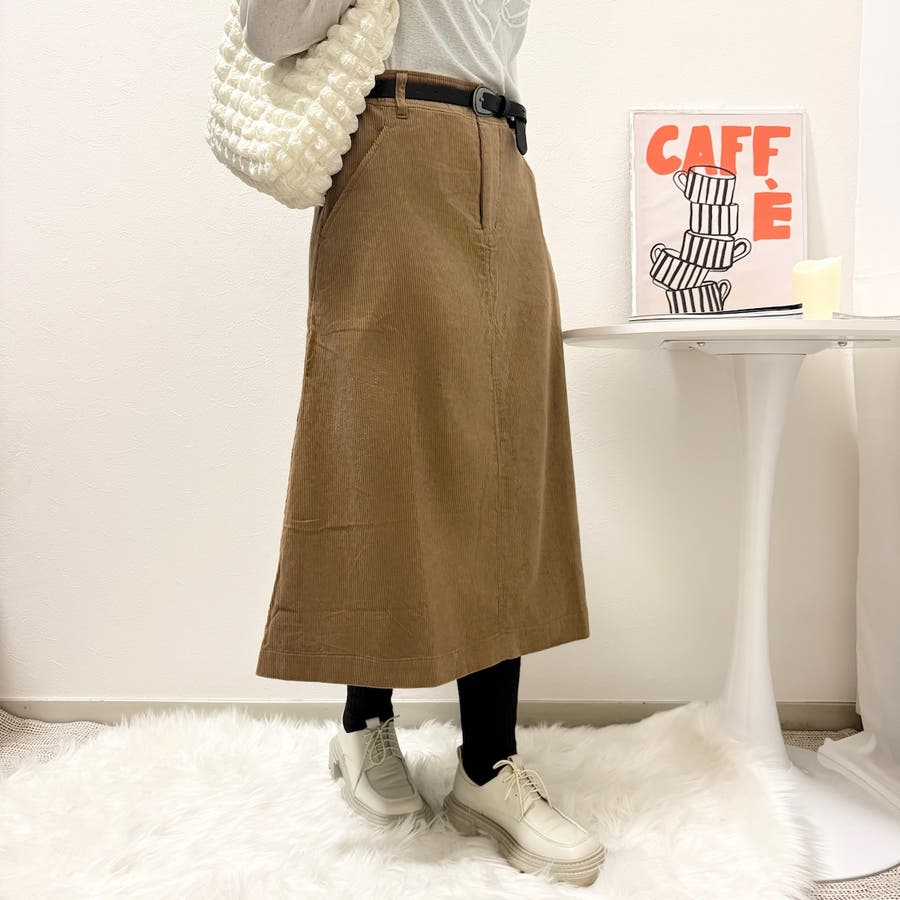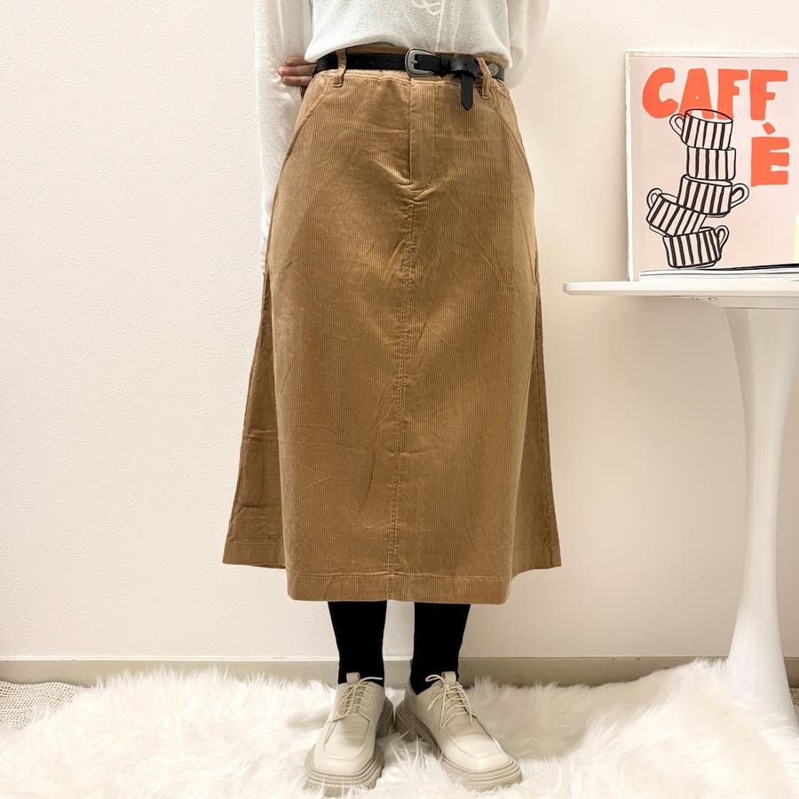 暖かみのあるコーデュロイ素材で仕立てたAラインミディスカート✨