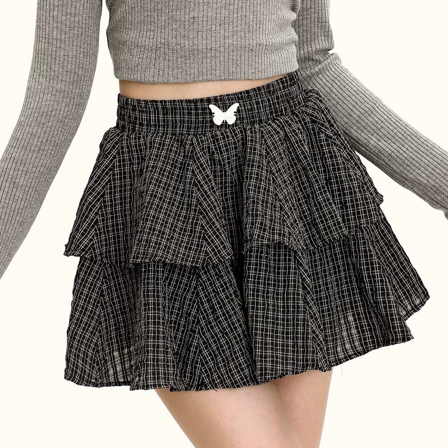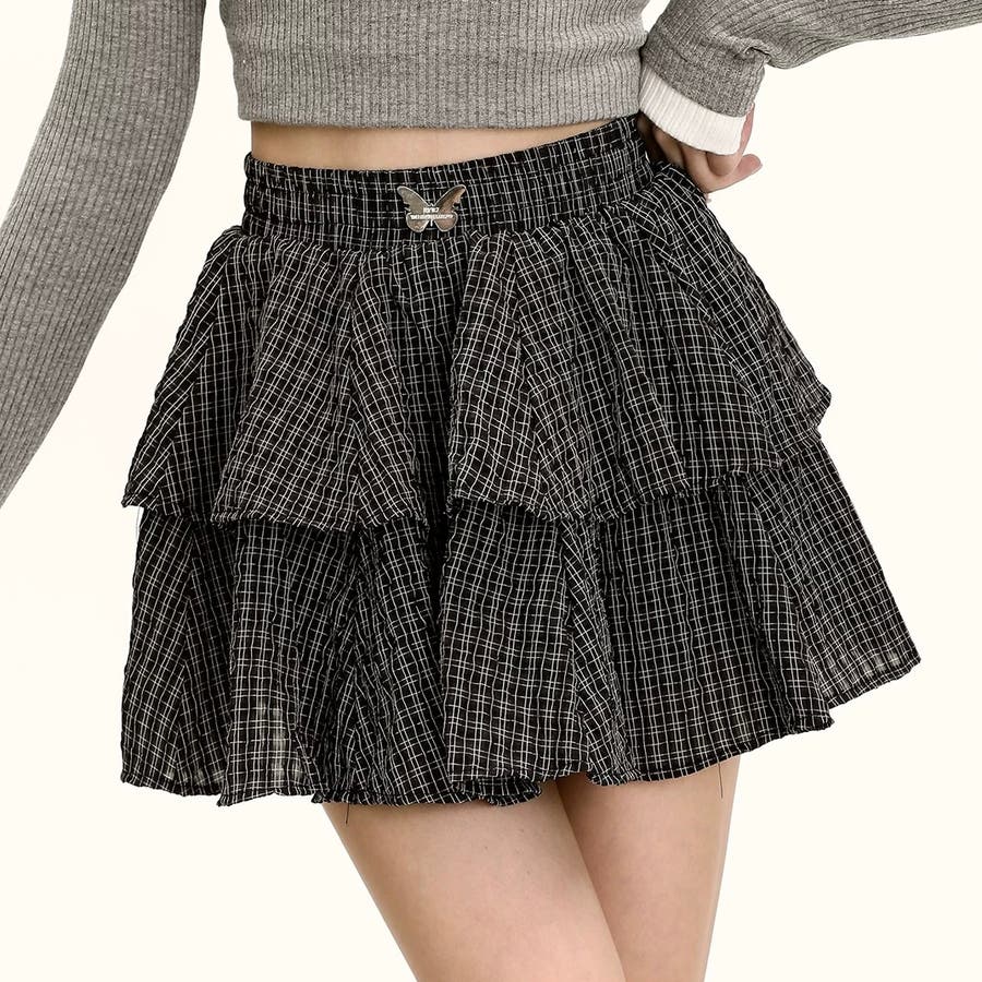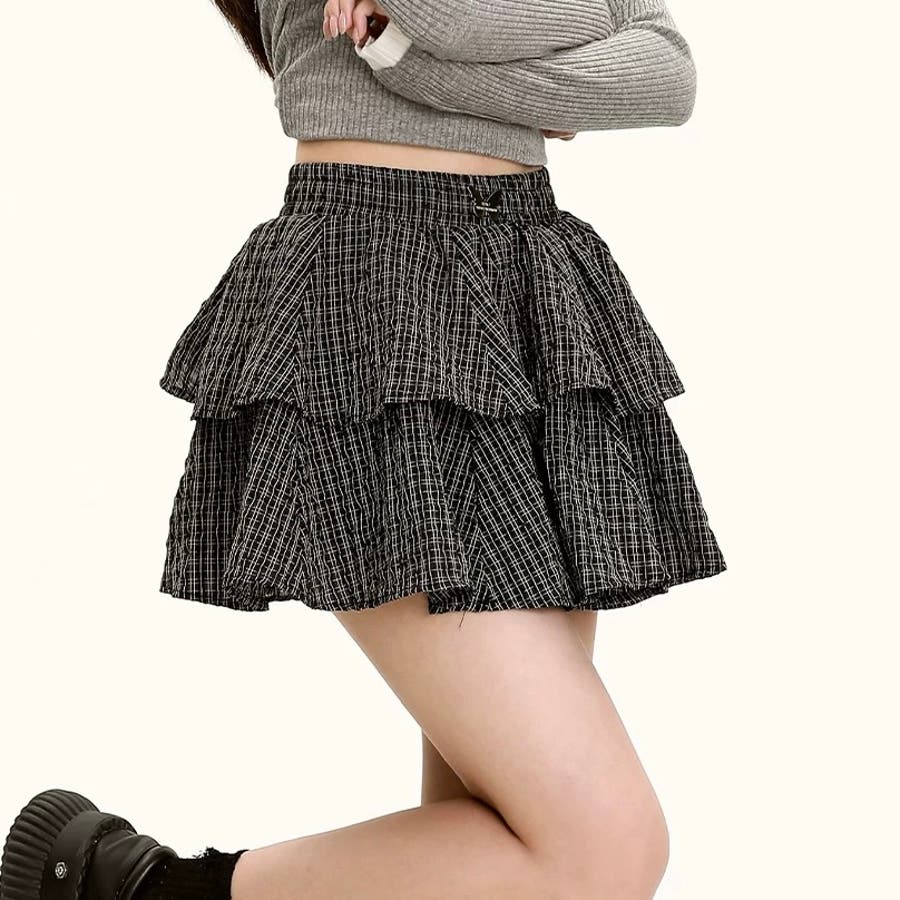 ふんわり広がるダブルフリルが可愛いフレアミニスカート。