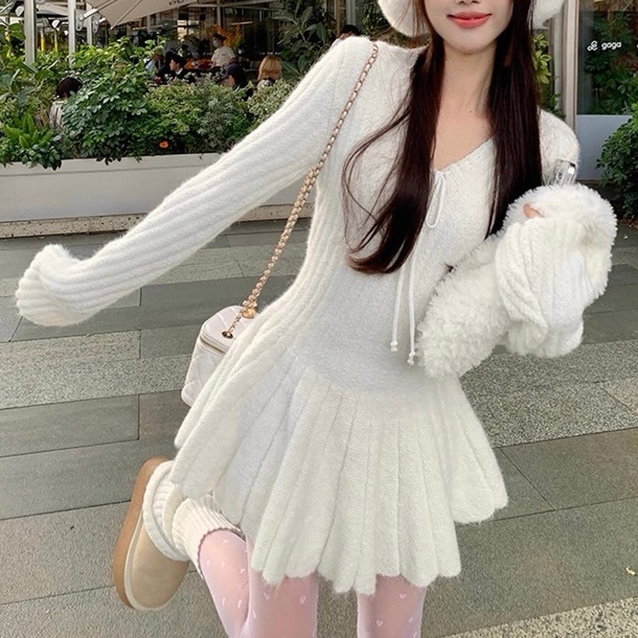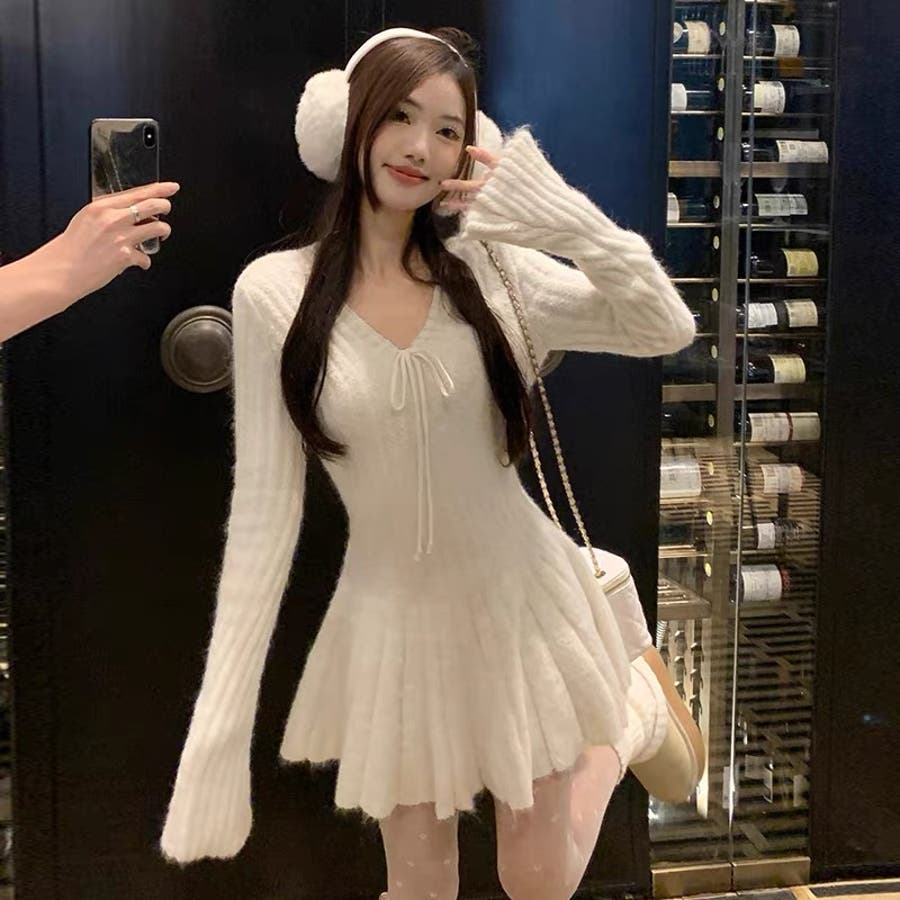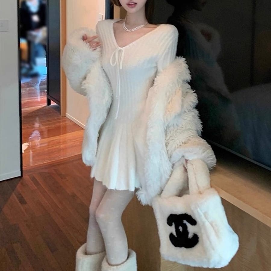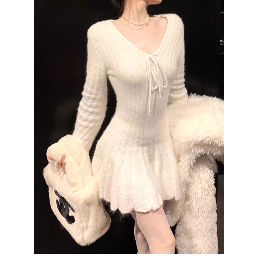 シャギーミニワンピース ふわふわフィット フレアニットワンピース