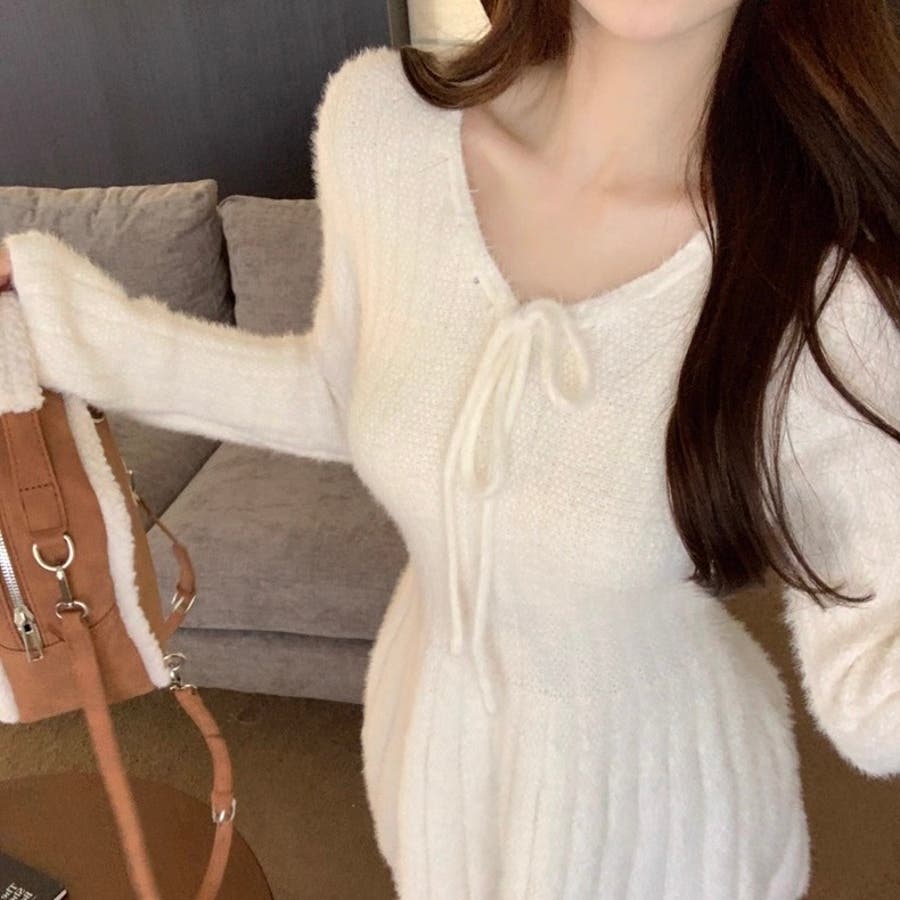 柔らかくてふわふわのニット素材が、身体のラインを綺麗に見せてくれるフィット&フレアシルエット。