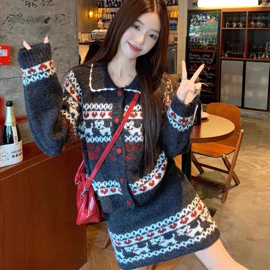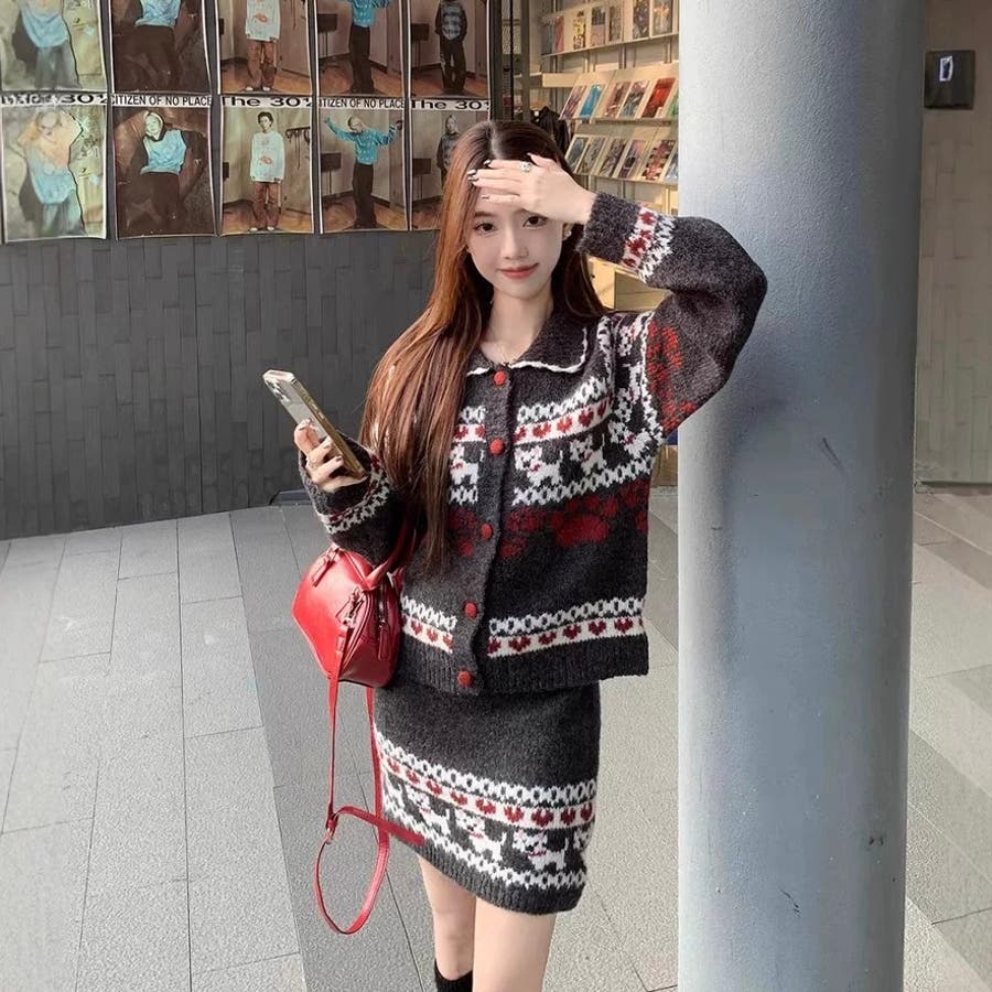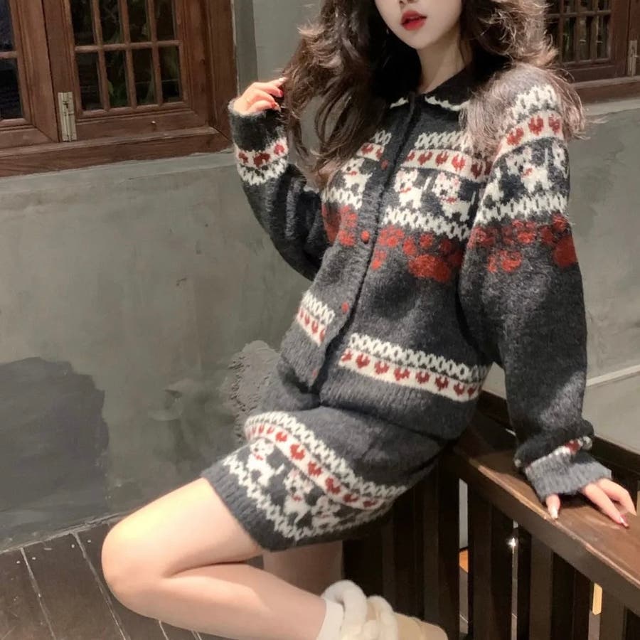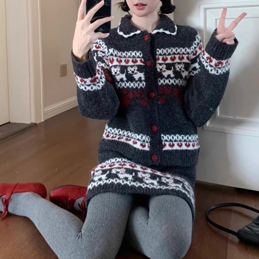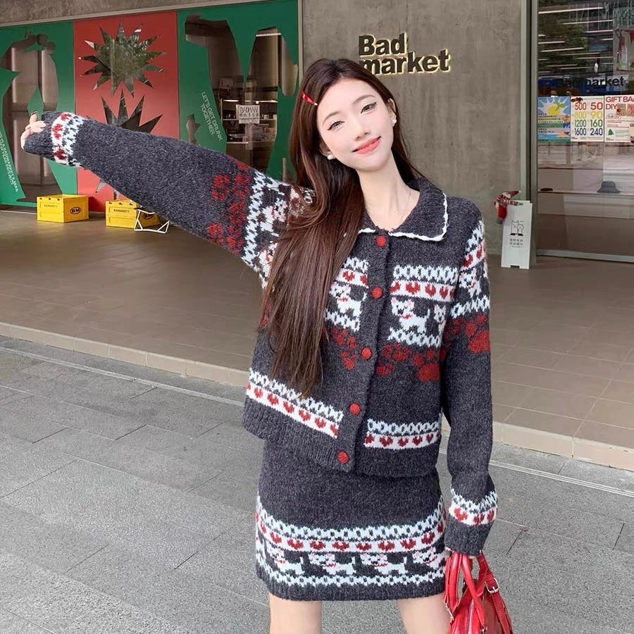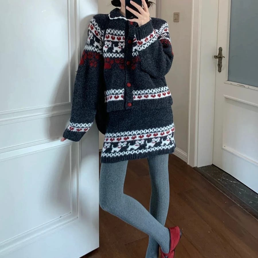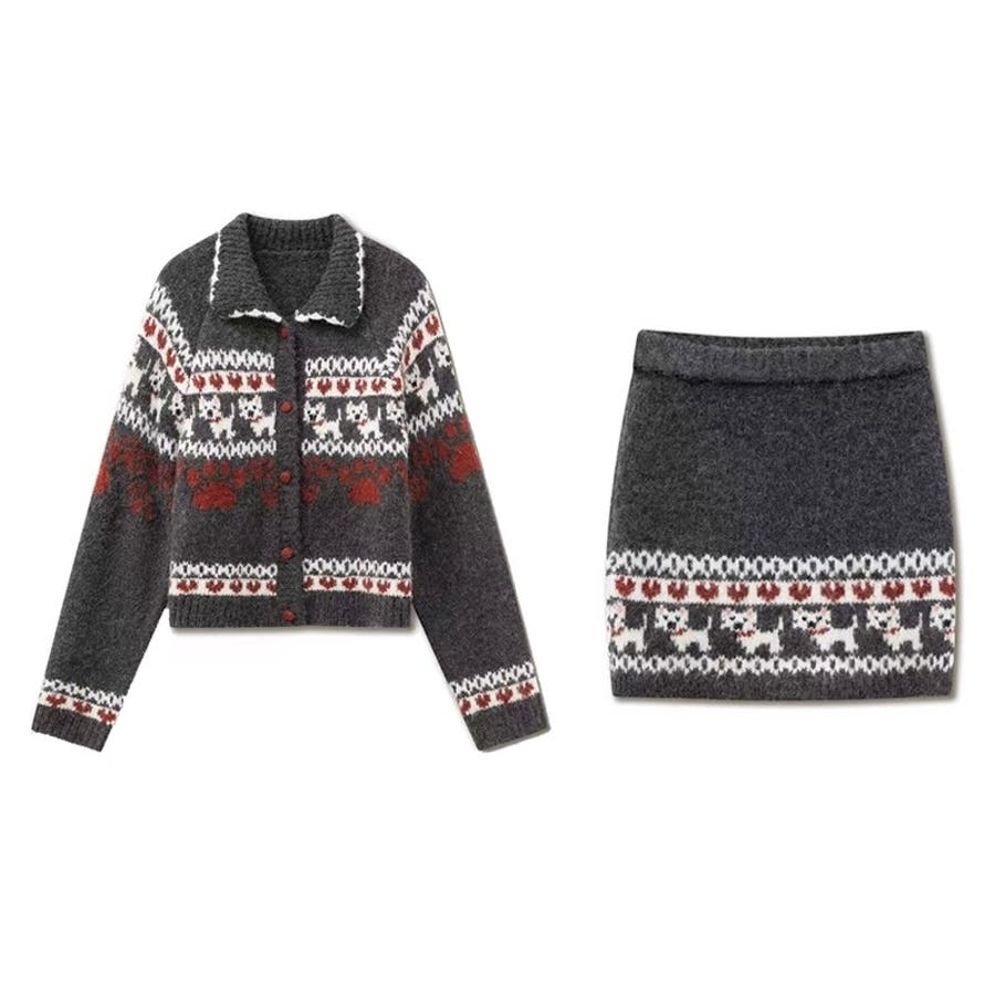 冬ムード高まる ノルディック柄 が主役のニットセットアップ。