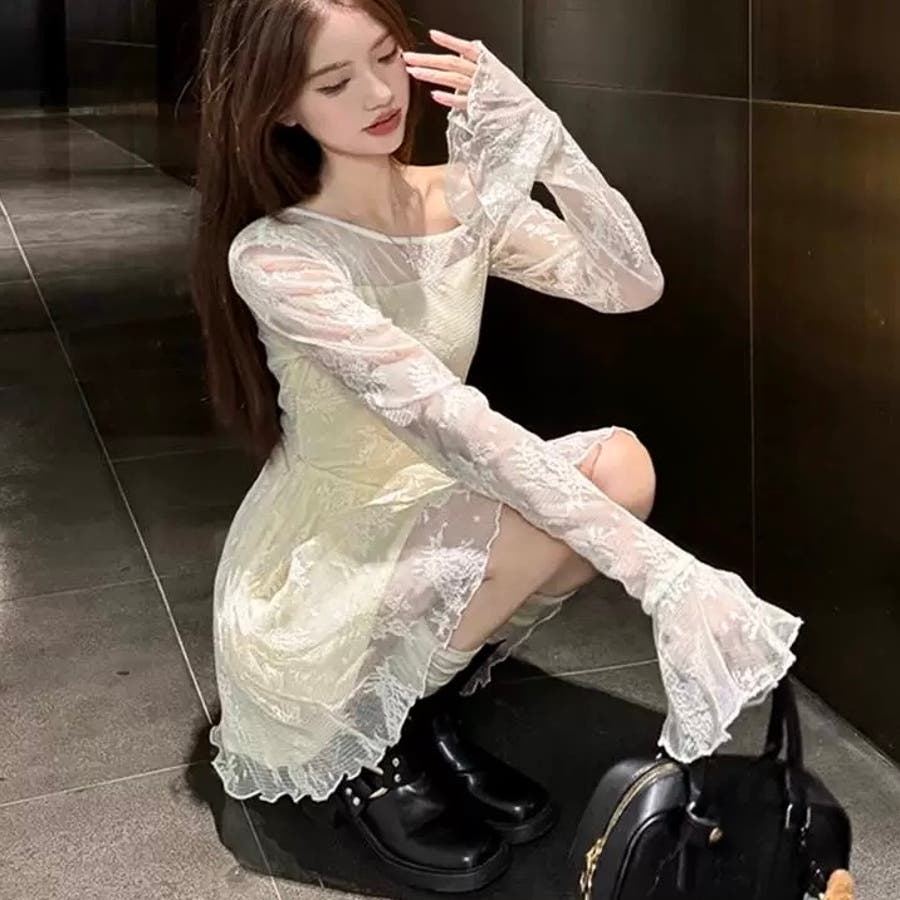 透け感のあるレースデザインが目を惹くドレス。パーティや結婚式など、特別な場面でオールシーズン着られる万能なアイテムです♪