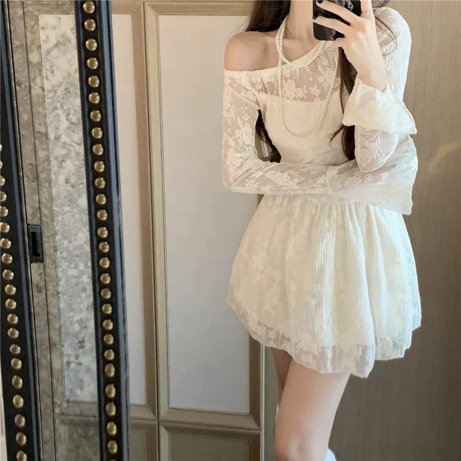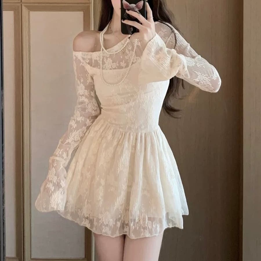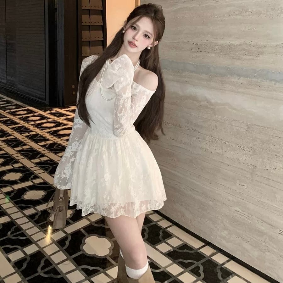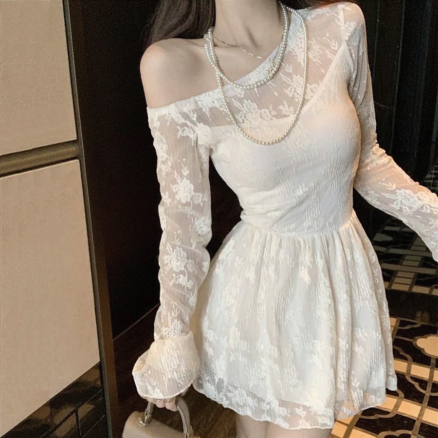 オフショルダーレースワンピース セクシー オフィス