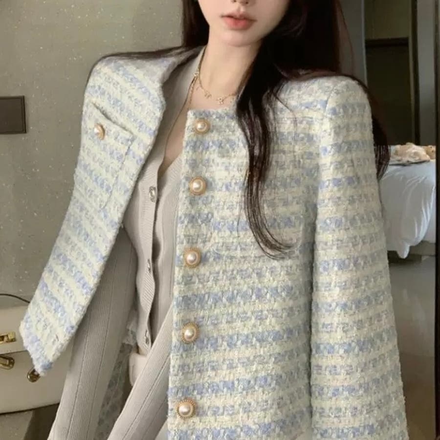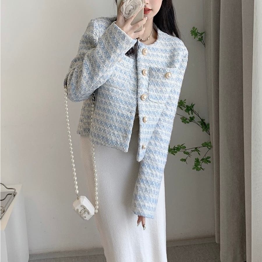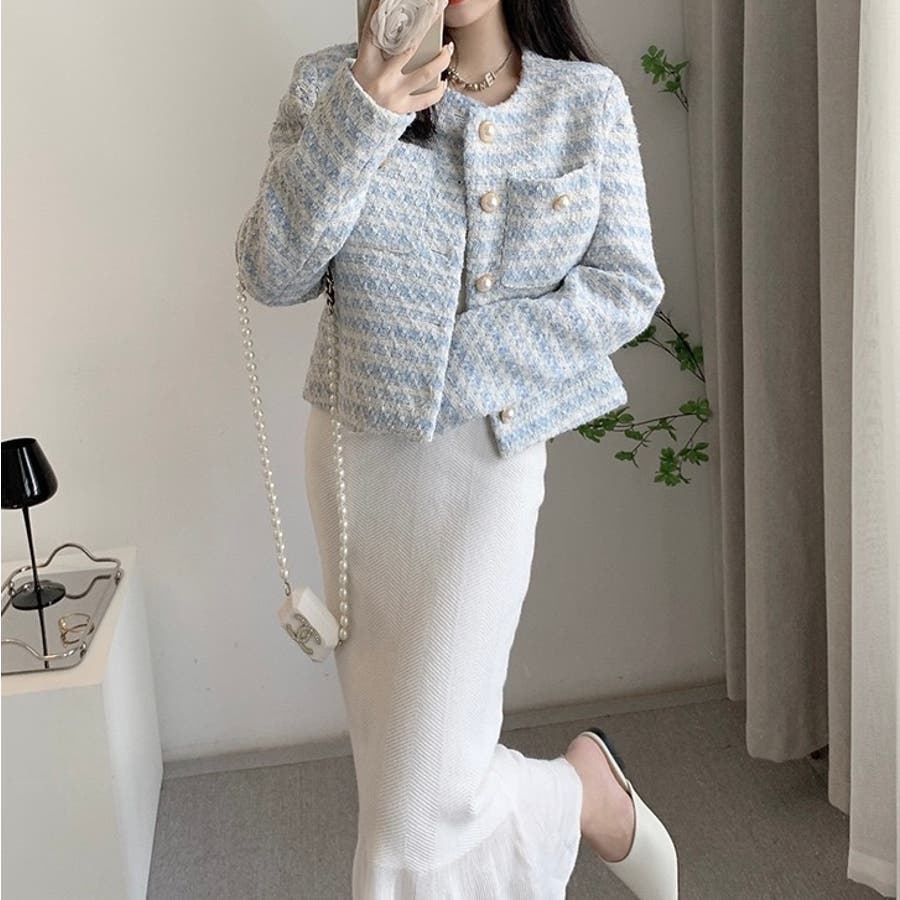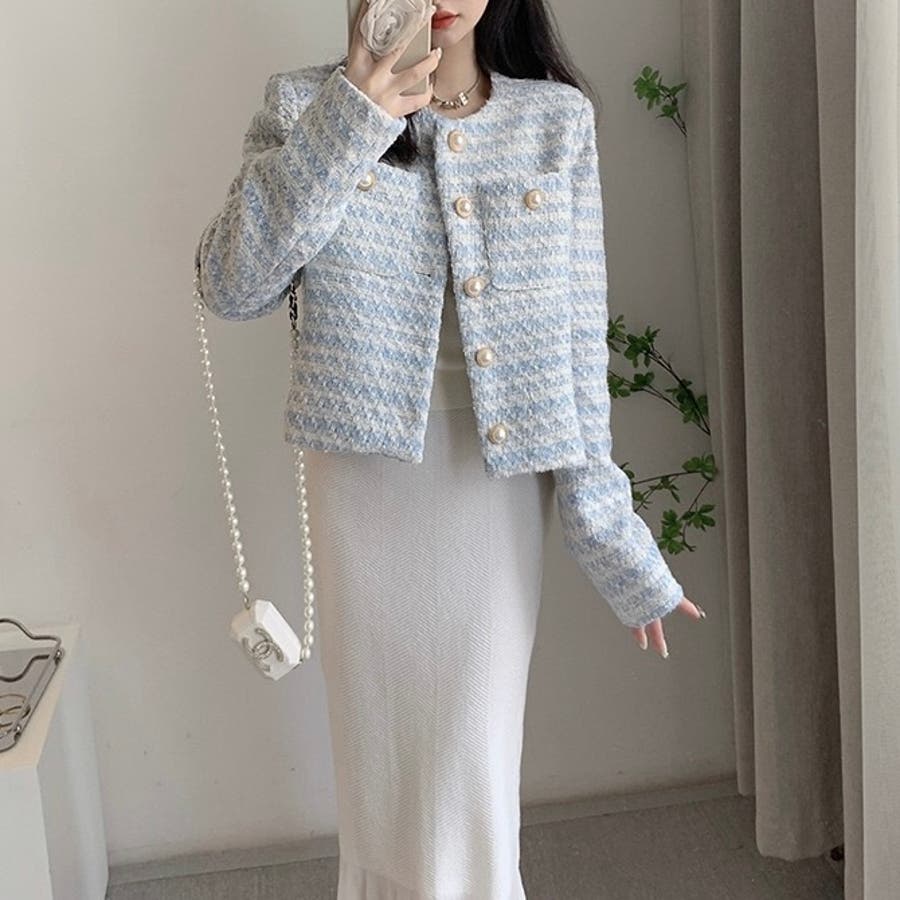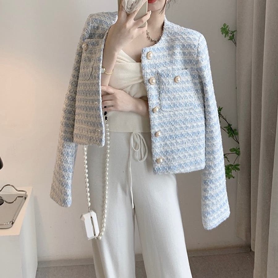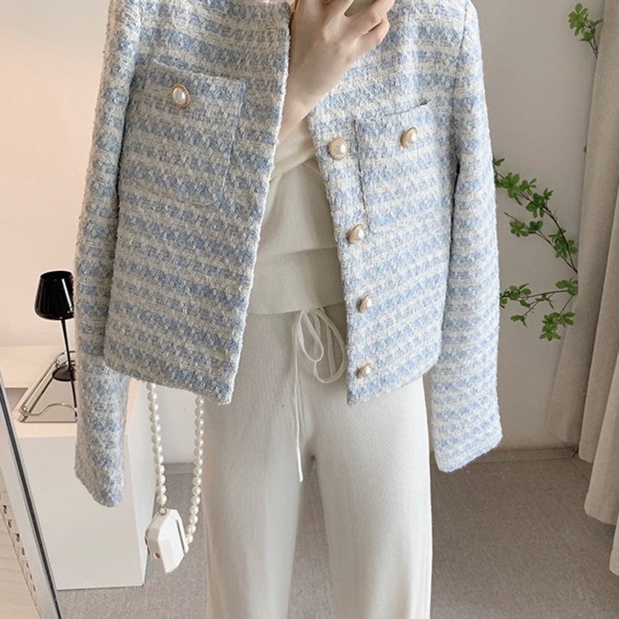 淡いブルーカラーが優しい印象で、羽織るだけでシーズンムードを高めてくれます。