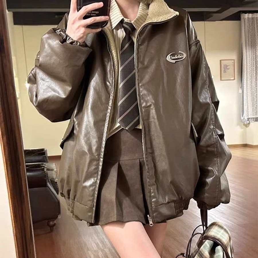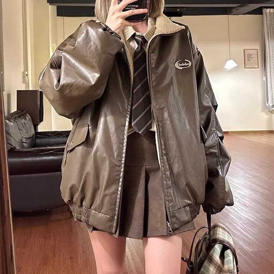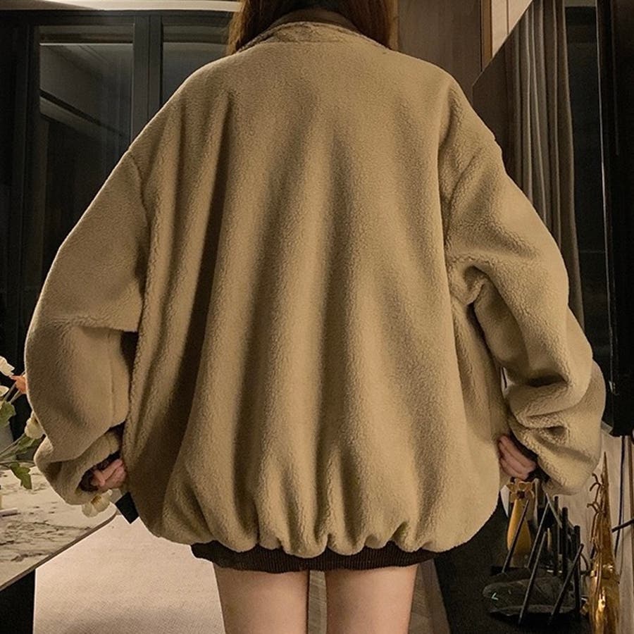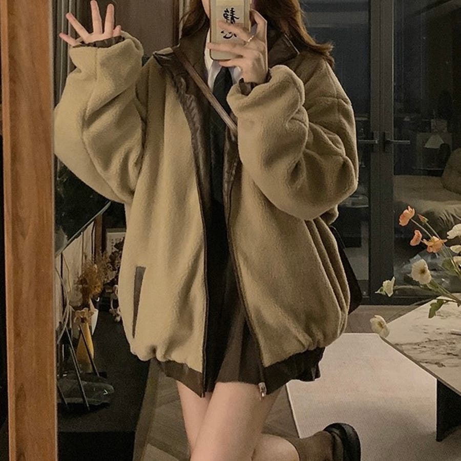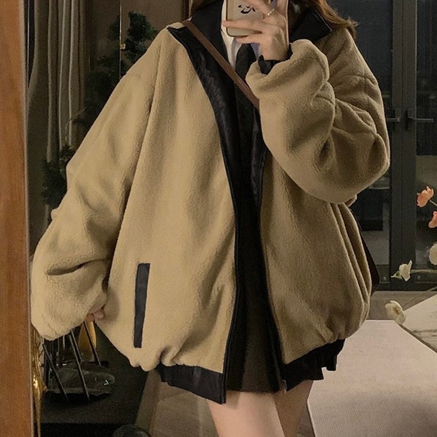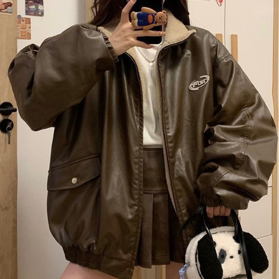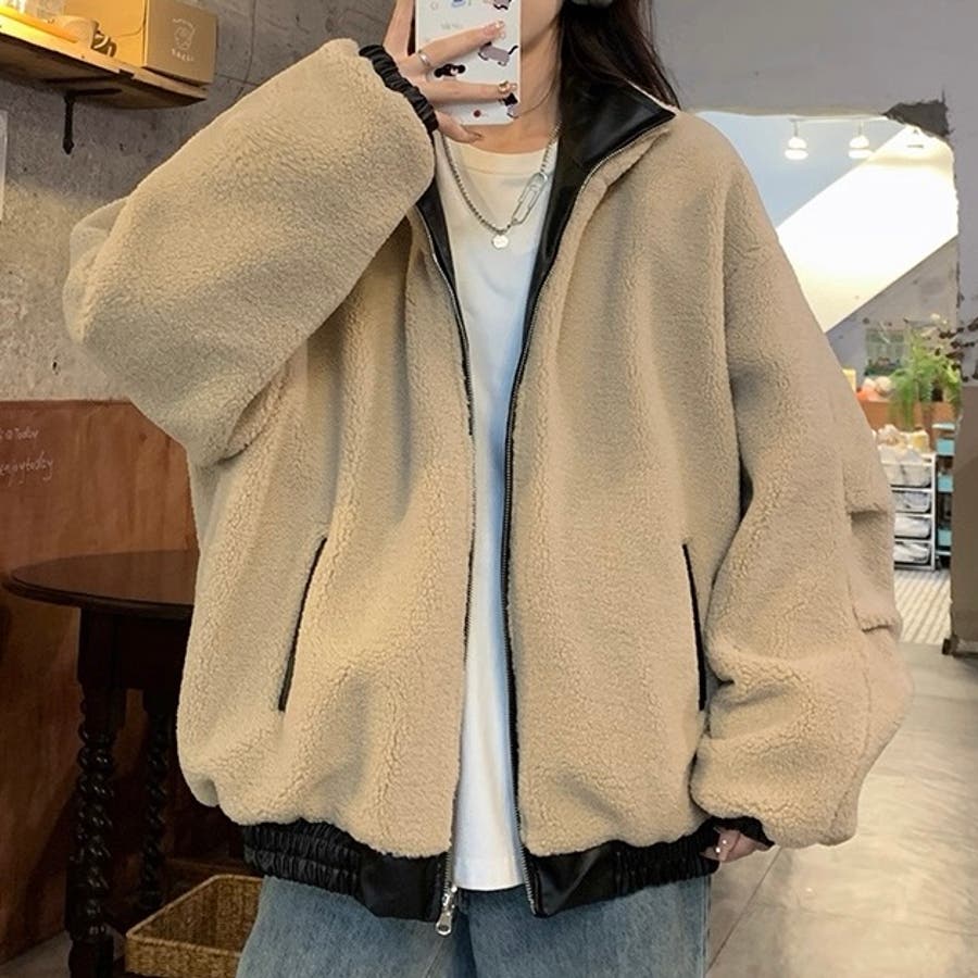 リバーシブルフェイクレザー×ボアアジャケット ブルゾン オーバーサイズ