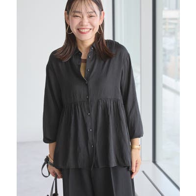 光沢を抑えた上質感あるサテン生地で仕立てたデザインブラウス。ウエストマークに切り替えギャザーを施したほんのり広がるティアードフレアが特徴的な1枚です。コンパクトな襟に同色ボタンをあわせたシンプルなワントーンがすっきり見えを演出。腰回りをカバーする絶妙な丈感も嬉しいポイントです。きれいめはもちろん、カジュアルなデニムに合わせるのもおすすめ。透け感[ややあり]