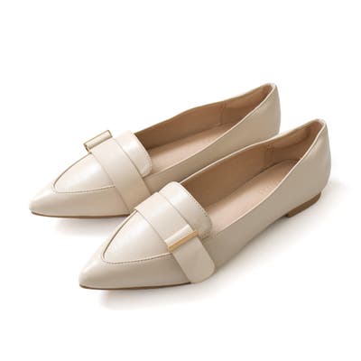 【アイボリースムース(ビット)】ポインテッドトゥ フラット パンプス レディース