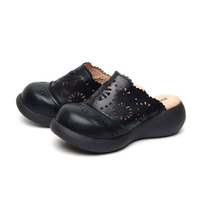 前に歩きやすい『ローリング設計』のソールがポイントです。ころんとかわいい + 歩きやすい “Nutsソール” を使ったサボサンダル。