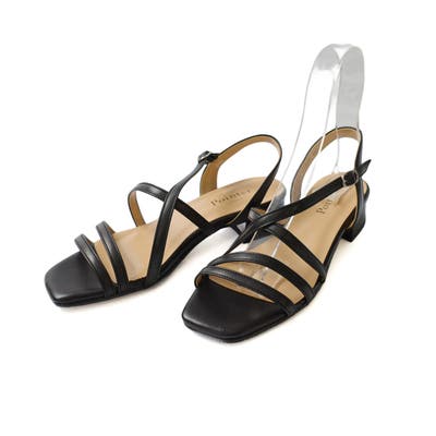 細いリボンを巻き付けたようなラインデザインの本革サンダル。
