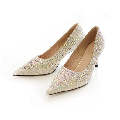 結婚式、謝恩会、などのドレスアップした日や、、パーティなどにも合わせやすい華やかな1足。宝石のように輝くビジューが、どの角度から見ても贅沢なシルエット!