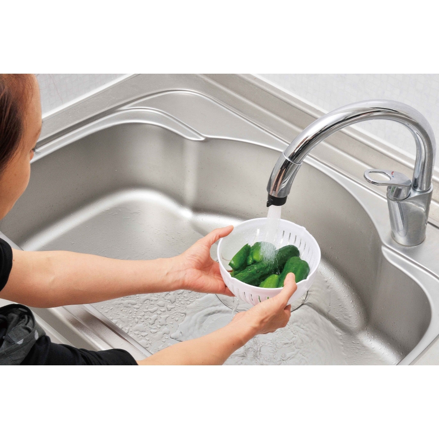 お好みの具材をボウル部分に入れて水洗い、あとは回転させながらお好みの粗さになるまでガイドに沿ってザクザク切れば、あっという間にチョップドサラダが完成♪スプーンでもりもり食べられる、今話題のサラダをおうちで楽しもう!訴求力の高いパッケージも魅力的。