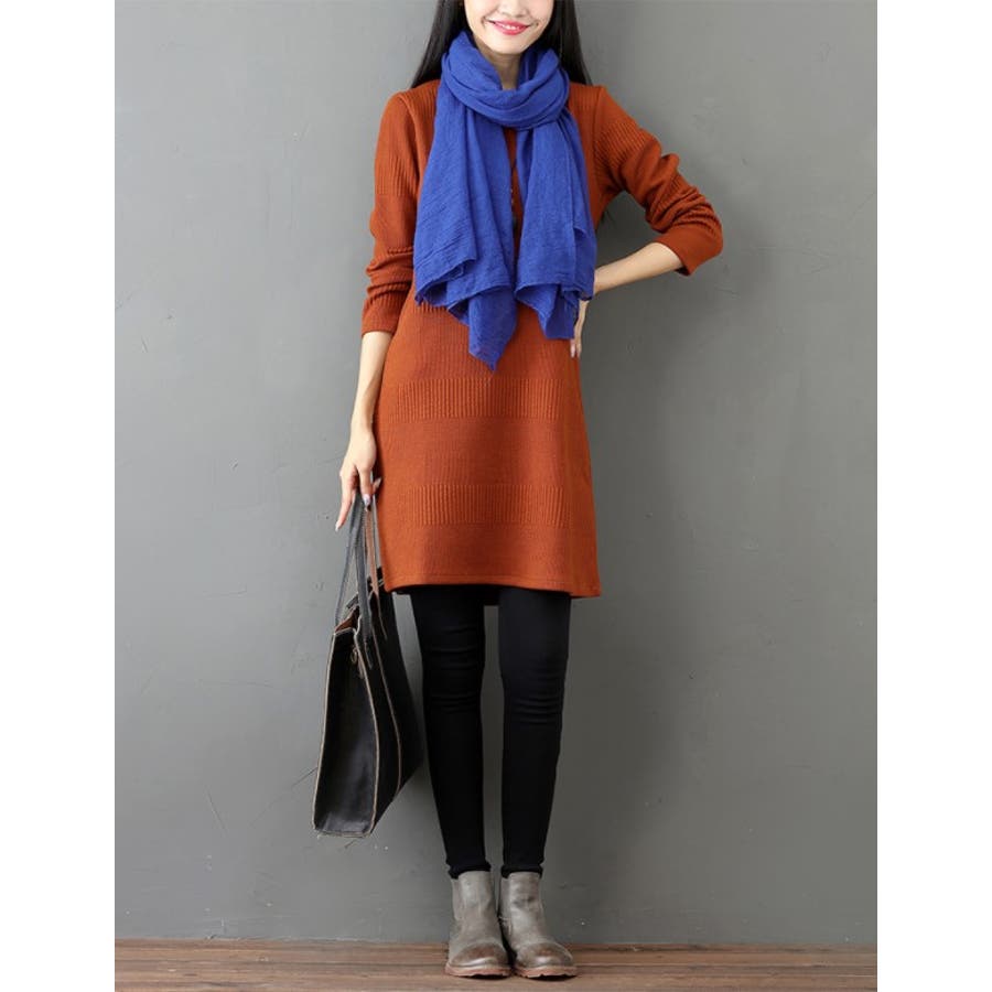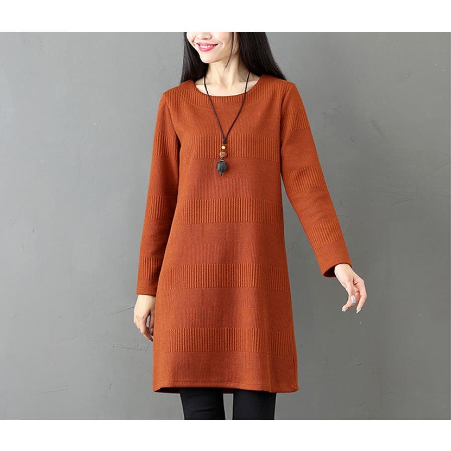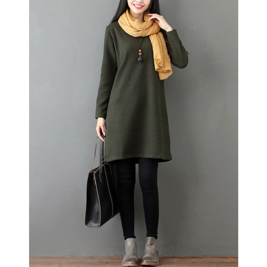 クルーネックチュニックレディースファッション春夏かわいい大人長袖上品ニット30代…