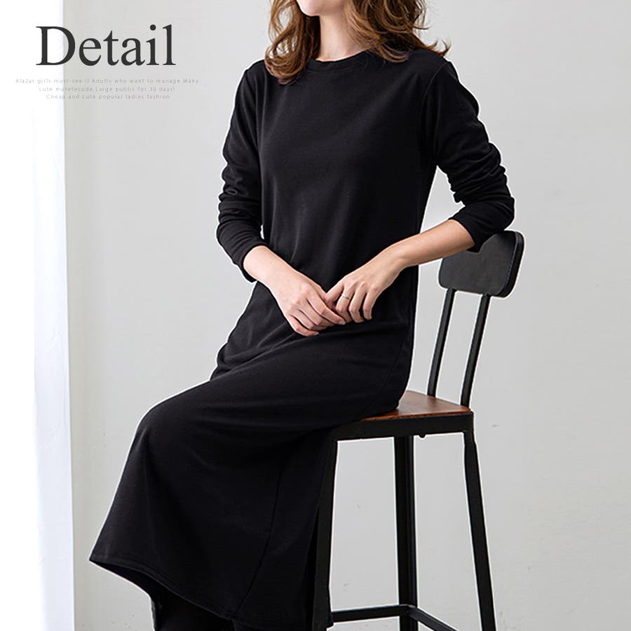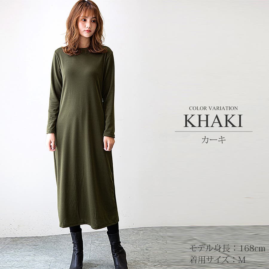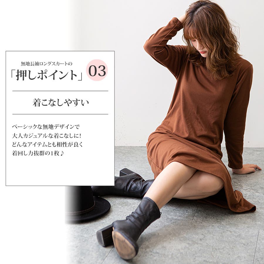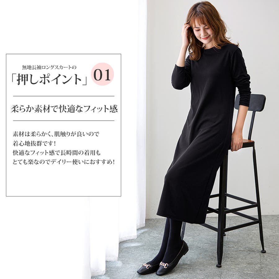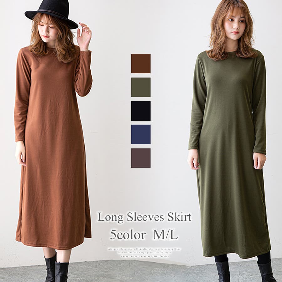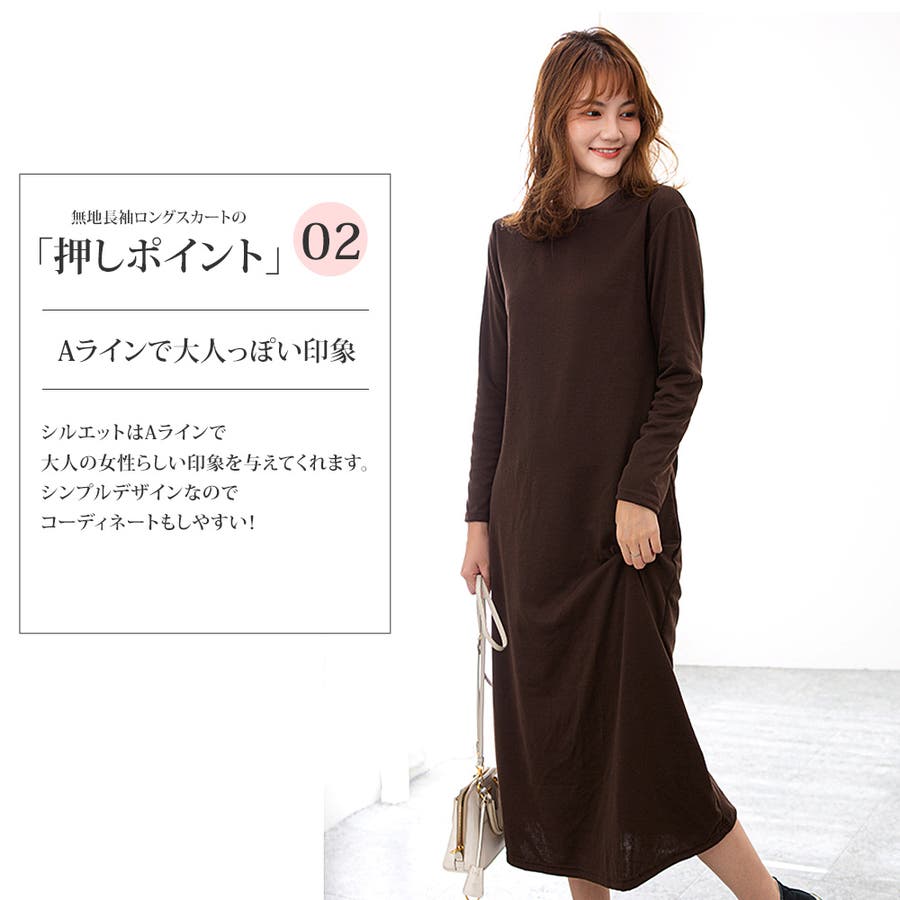 無地長袖ロングワンピース Aライン シンプル カジュアル レディース 春 秋