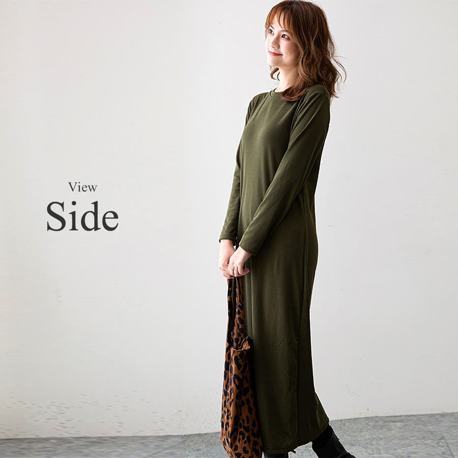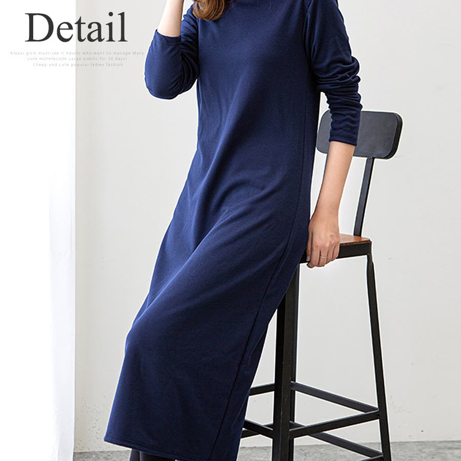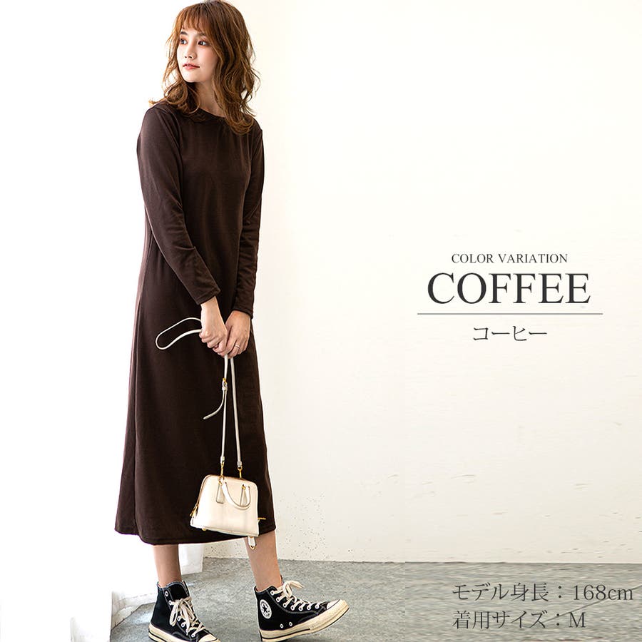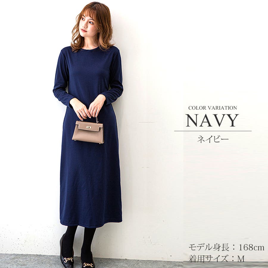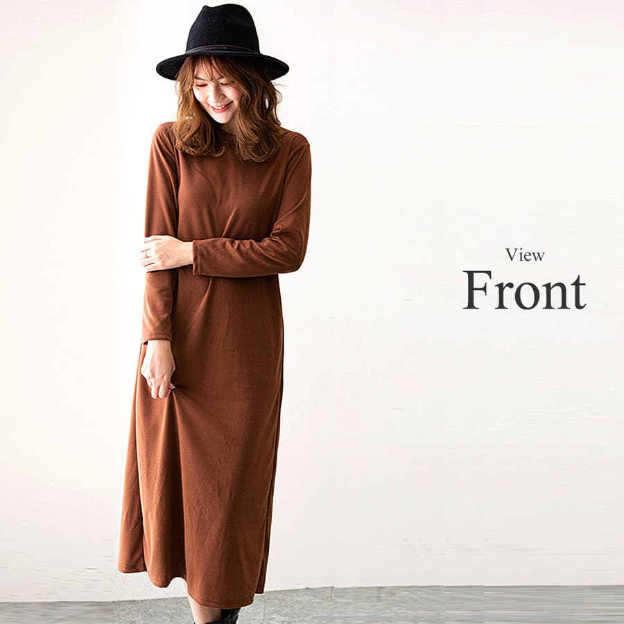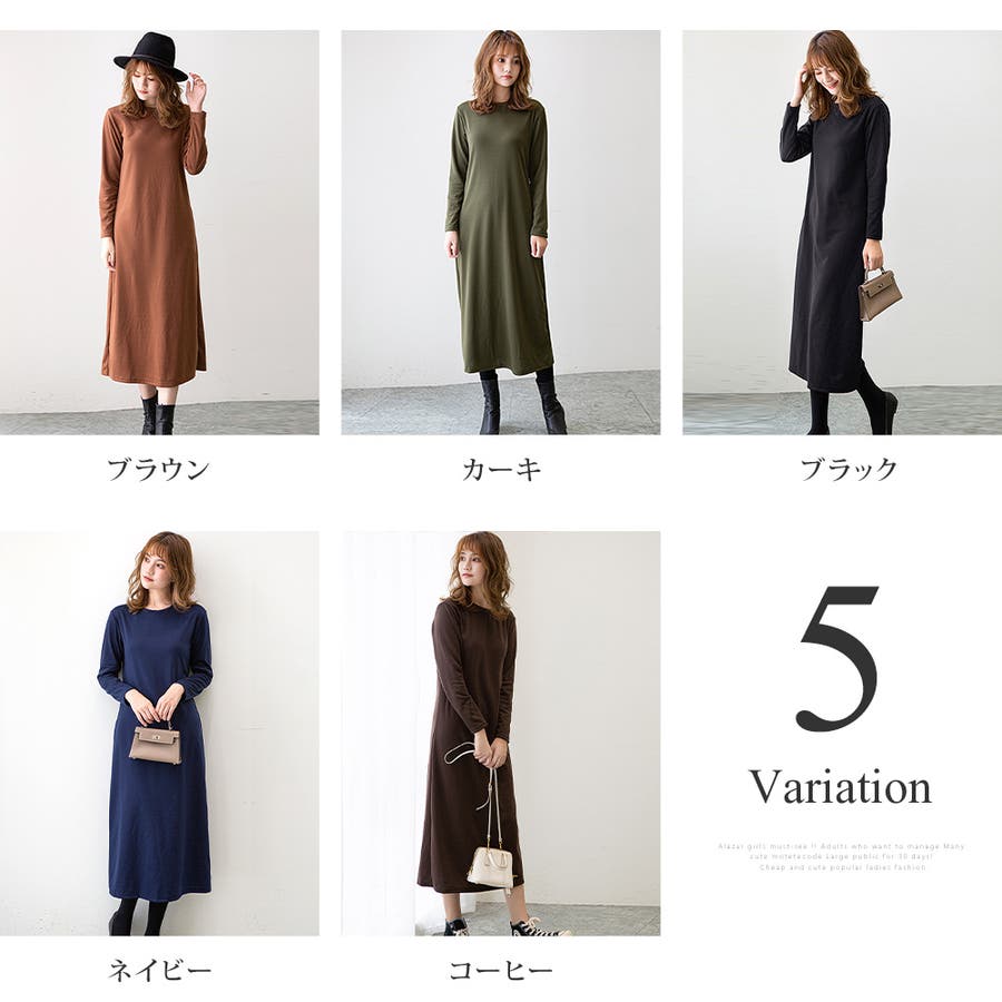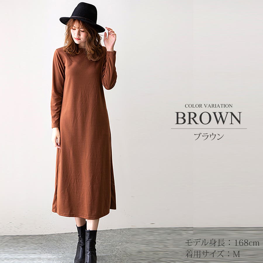 無地長袖ロングワンピース Aライン シンプル カジュアル レディース 春 秋