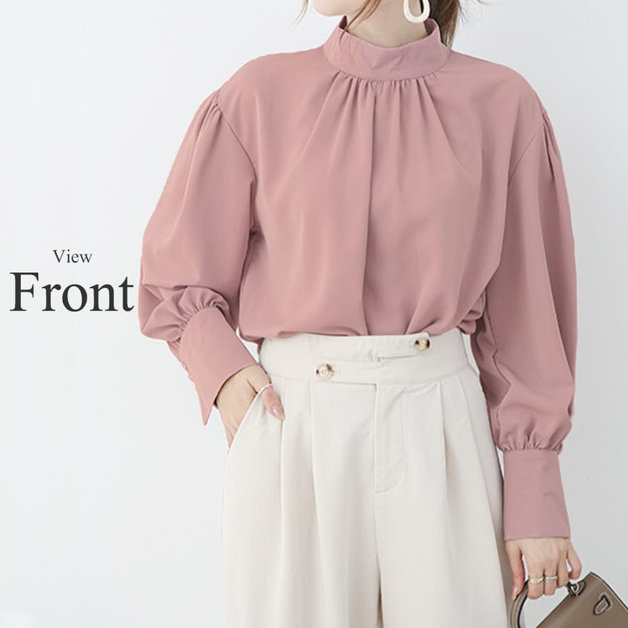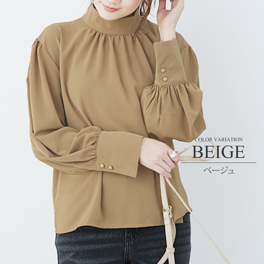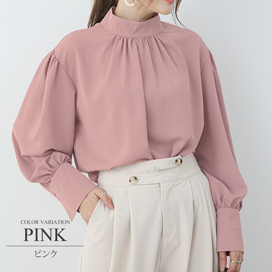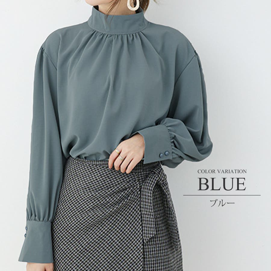 ・ギャザーが可愛い無地でシンプルなデザインのブラウス、首元と袖のギャザーがポイント!ゆったり着れるのが嬉しい!