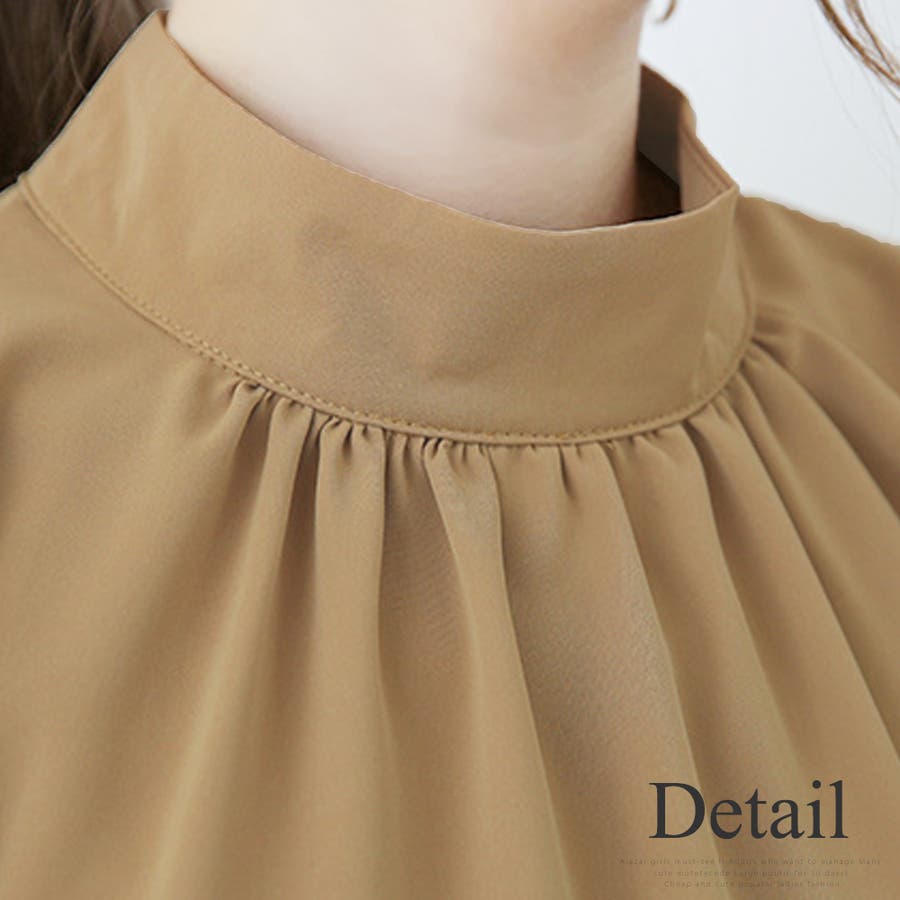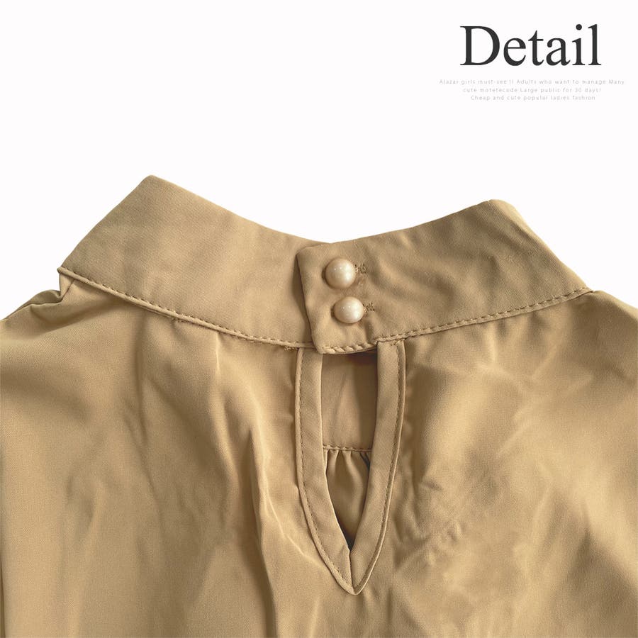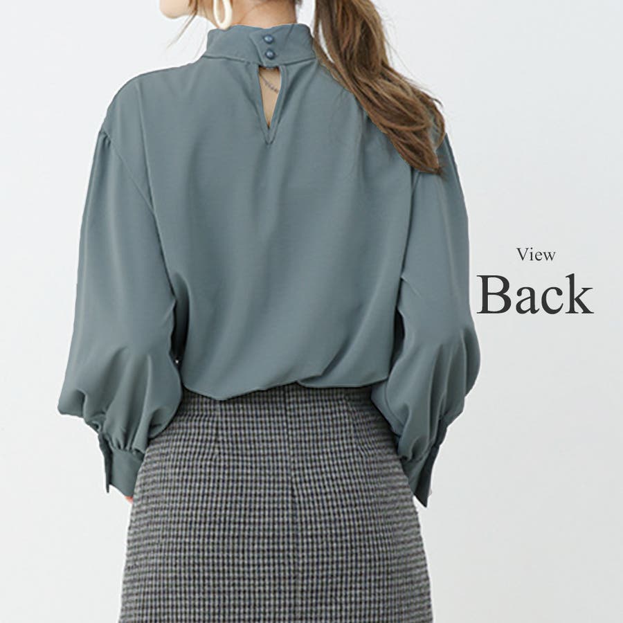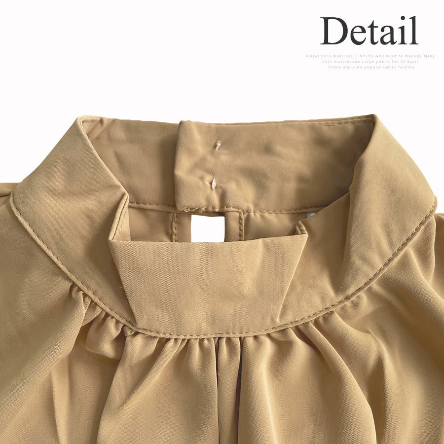 ・ギャザーが可愛い無地でシンプルなデザインのブラウス、首元と袖のギャザーがポイント!ゆったり着れるのが嬉しい!