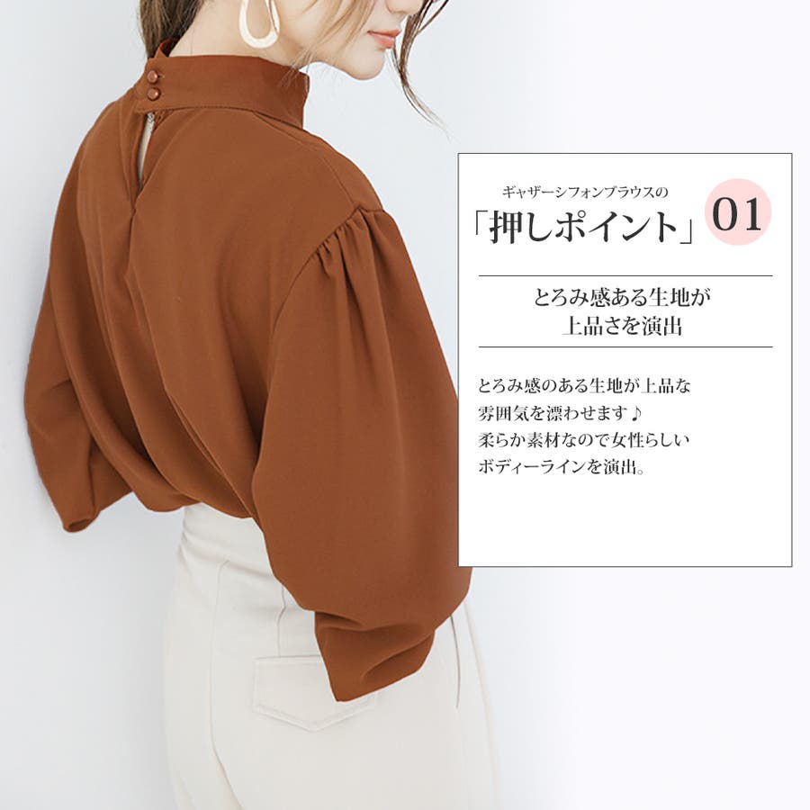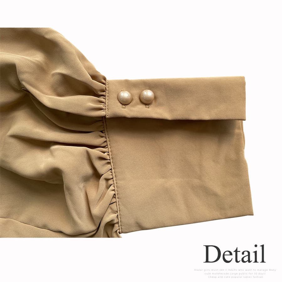 ギャザーシフォンブラウス オフィス シンプル 春 夏 秋 レディース