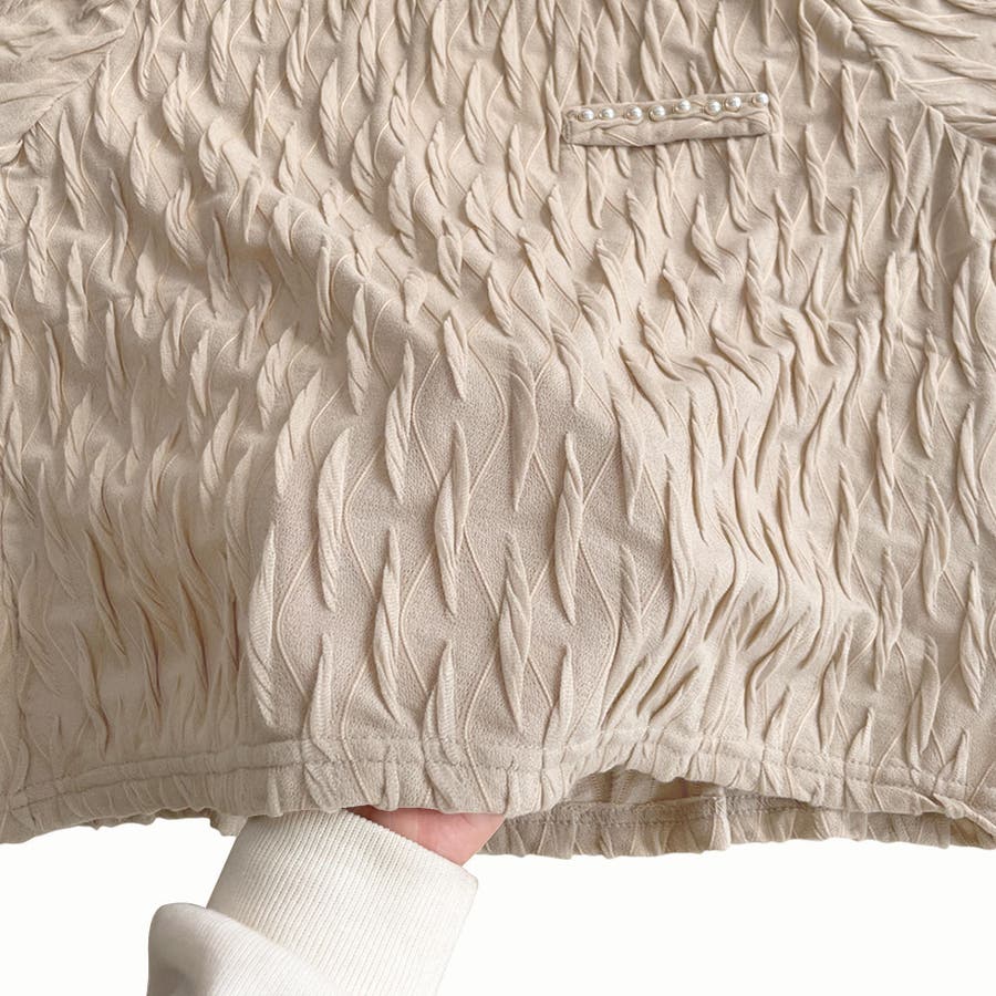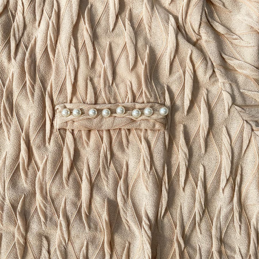 ・首元と胸元のフェイクパールが華やかな印象を演出します。コーディネート次第で印象が変わるので、アレンジが楽しくなります。