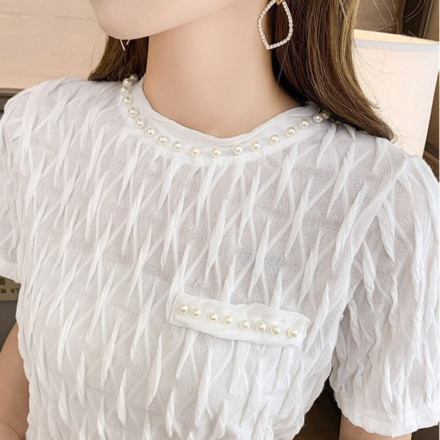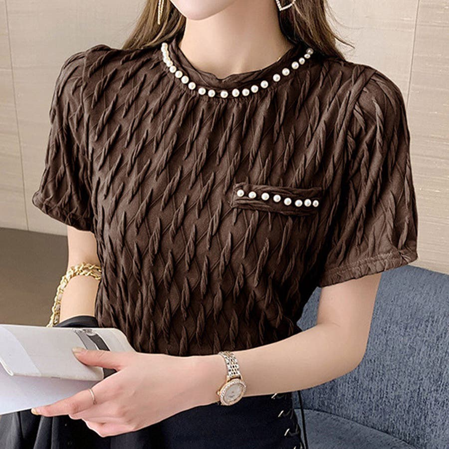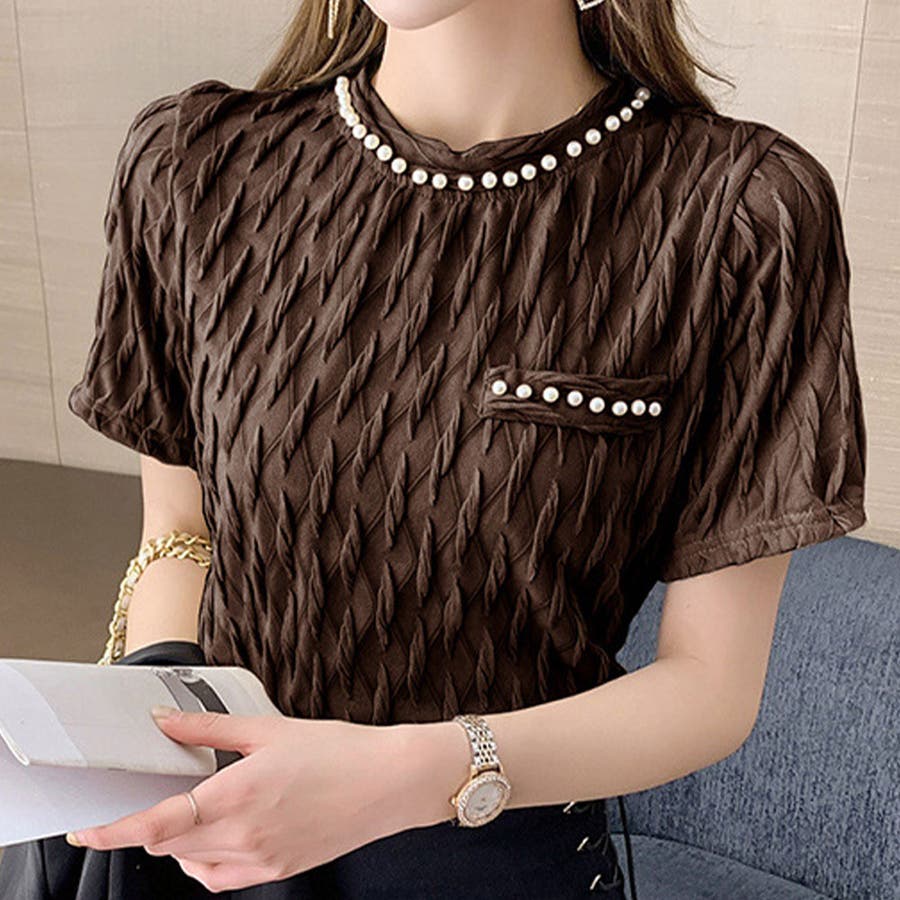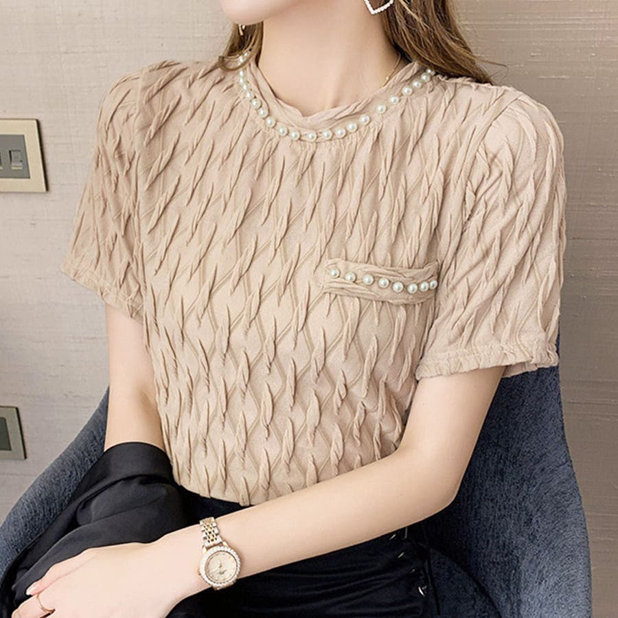 フェイクパールブラウス カジュアル 着やすい