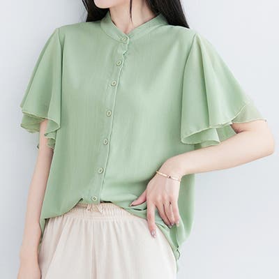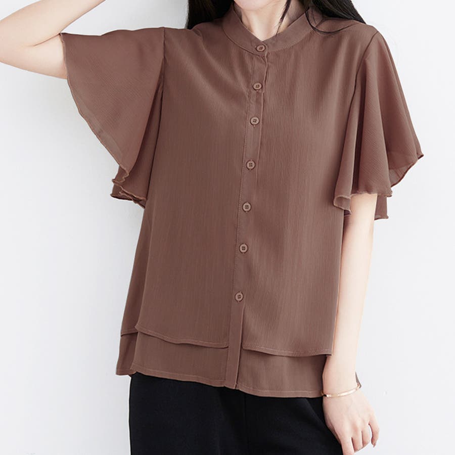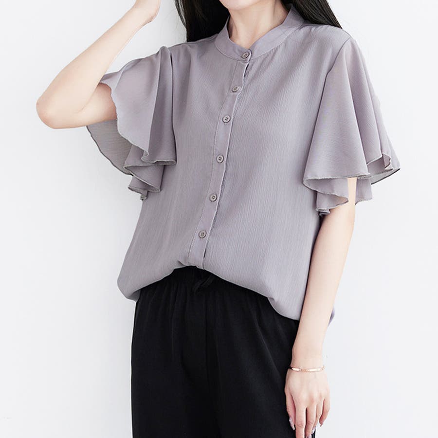ラッフルスリーブブラウス フリル袖 シフォンブラウス