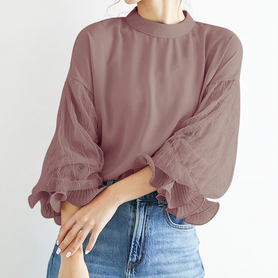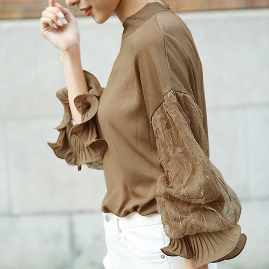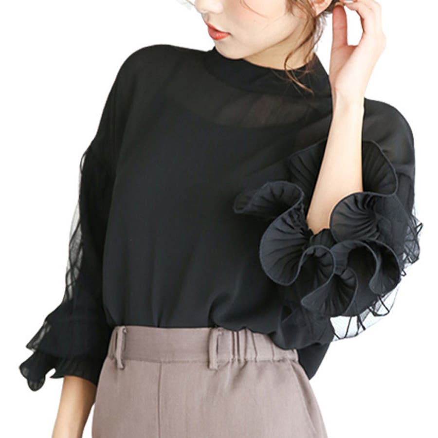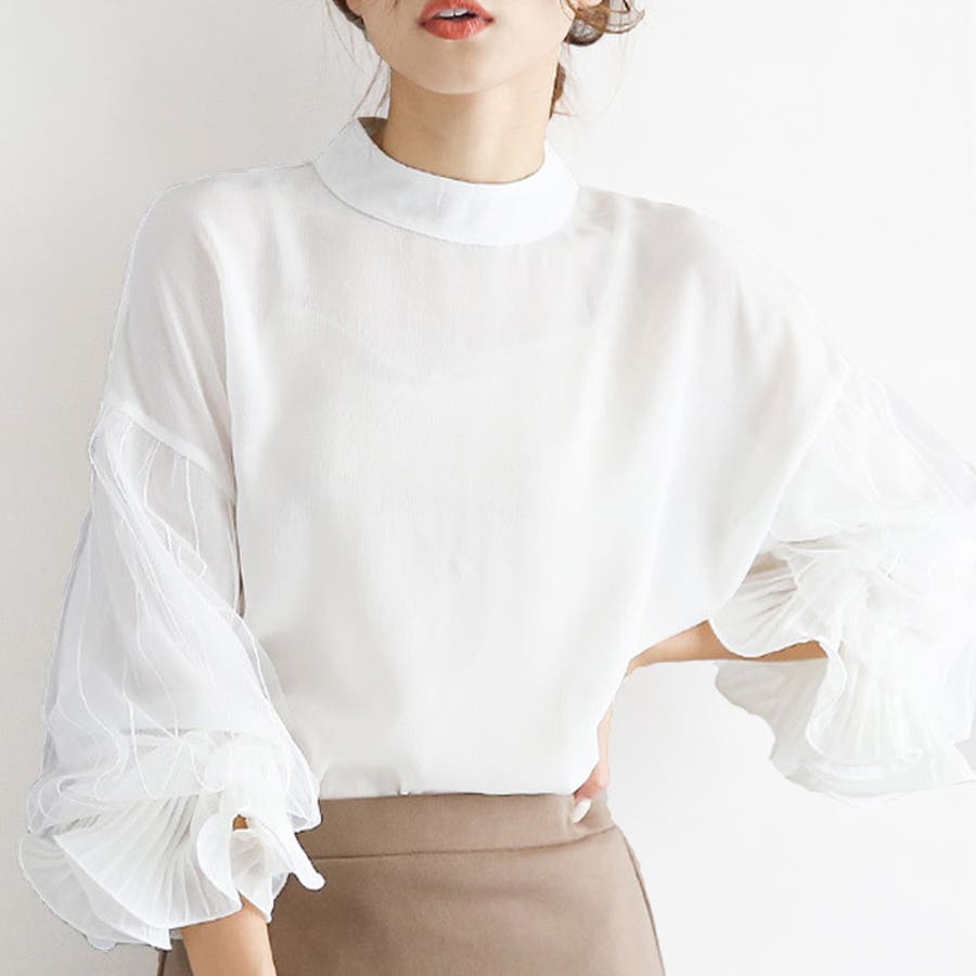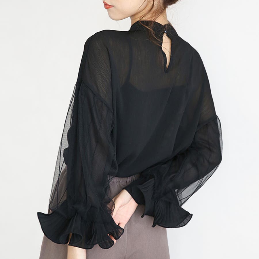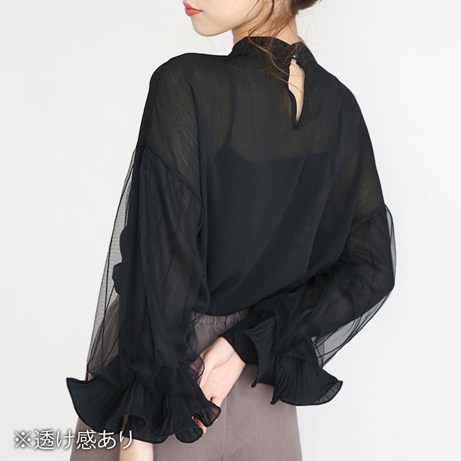 ・ボリュームのあるフリル袖に視線が集まり、おしゃれ感を漂わせます。動きに余韻を残す袖がかわいい
