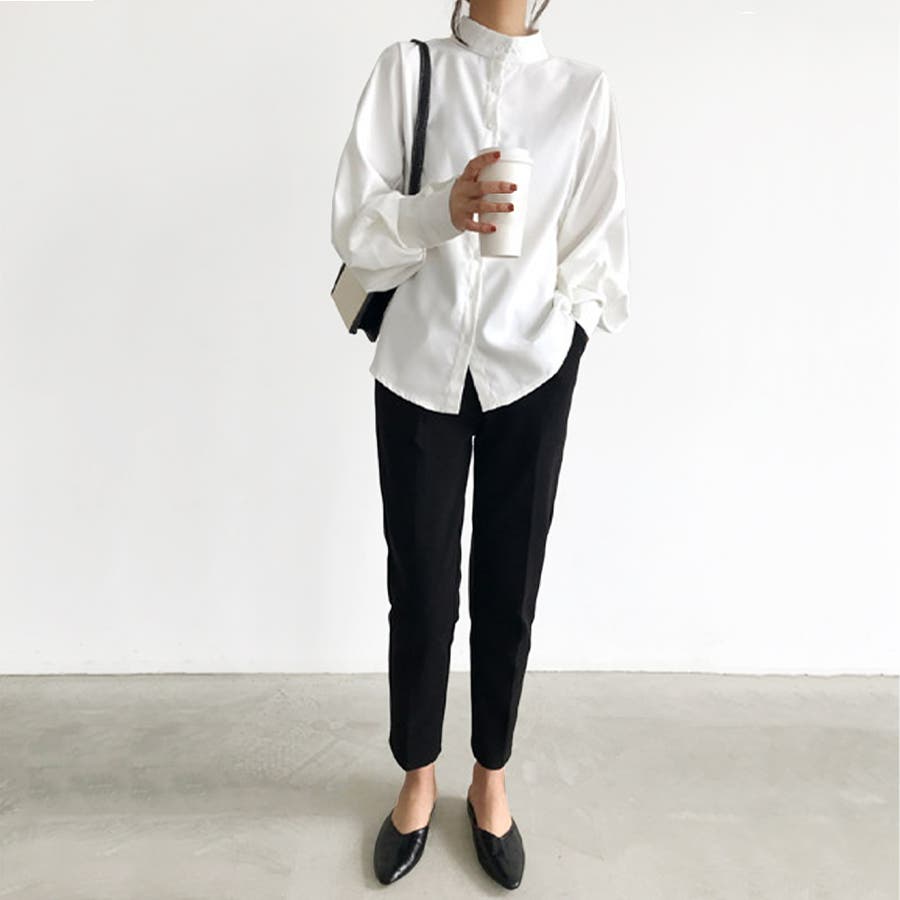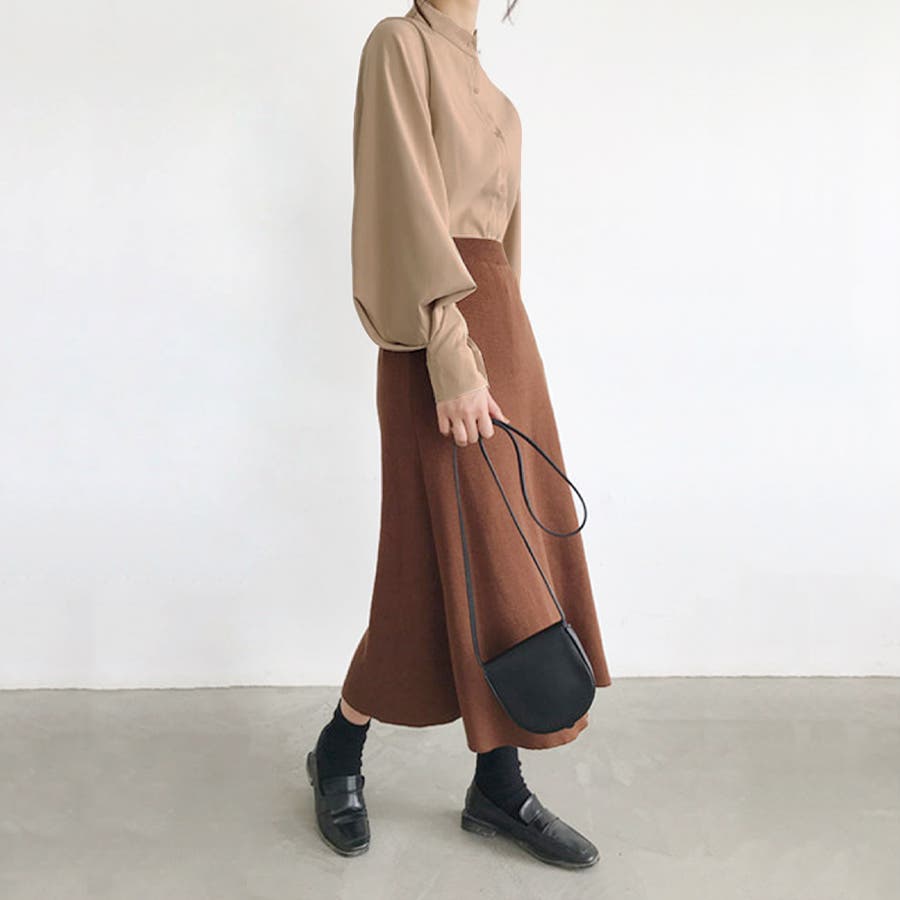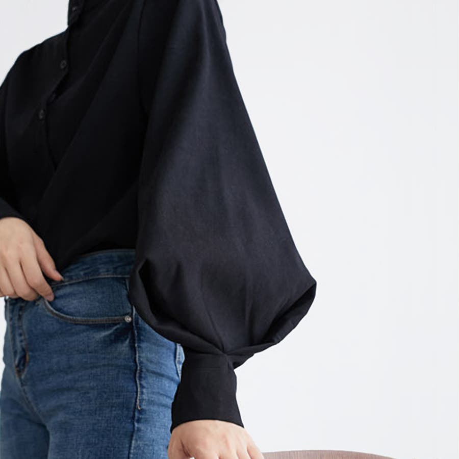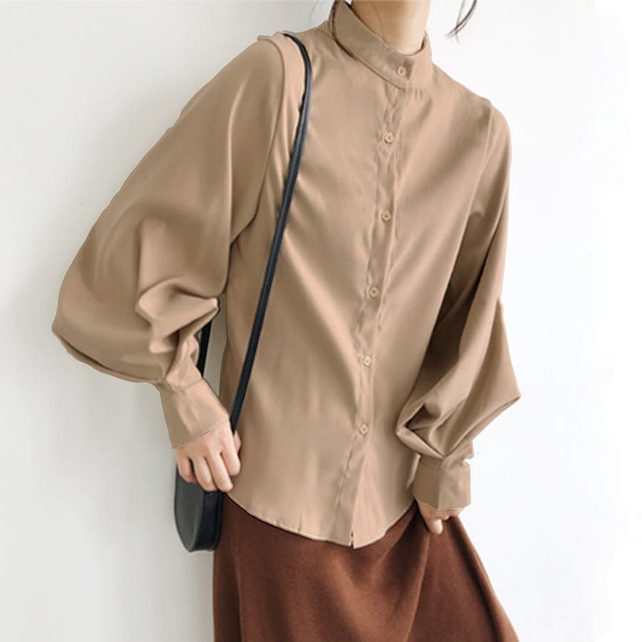 ・無地でシンプルな見た目だけど、袖のバルーンスリーブデザインが視線を惹きつけるポイントになります。