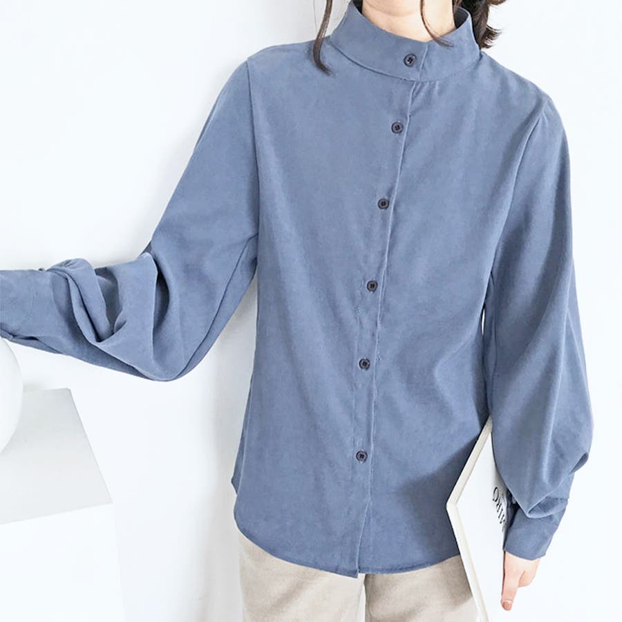 ・落ち着いたカラーなのでコーディネートしやすい♪オンオフ両方使いができる優秀なブラウスです☆
