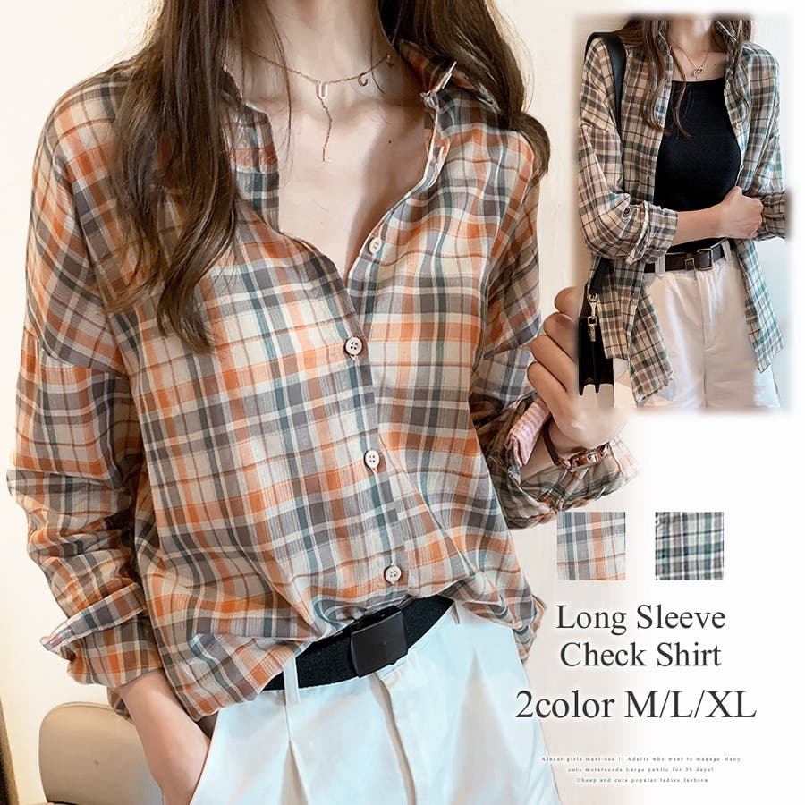 長袖チェックシャツ トップス 長袖