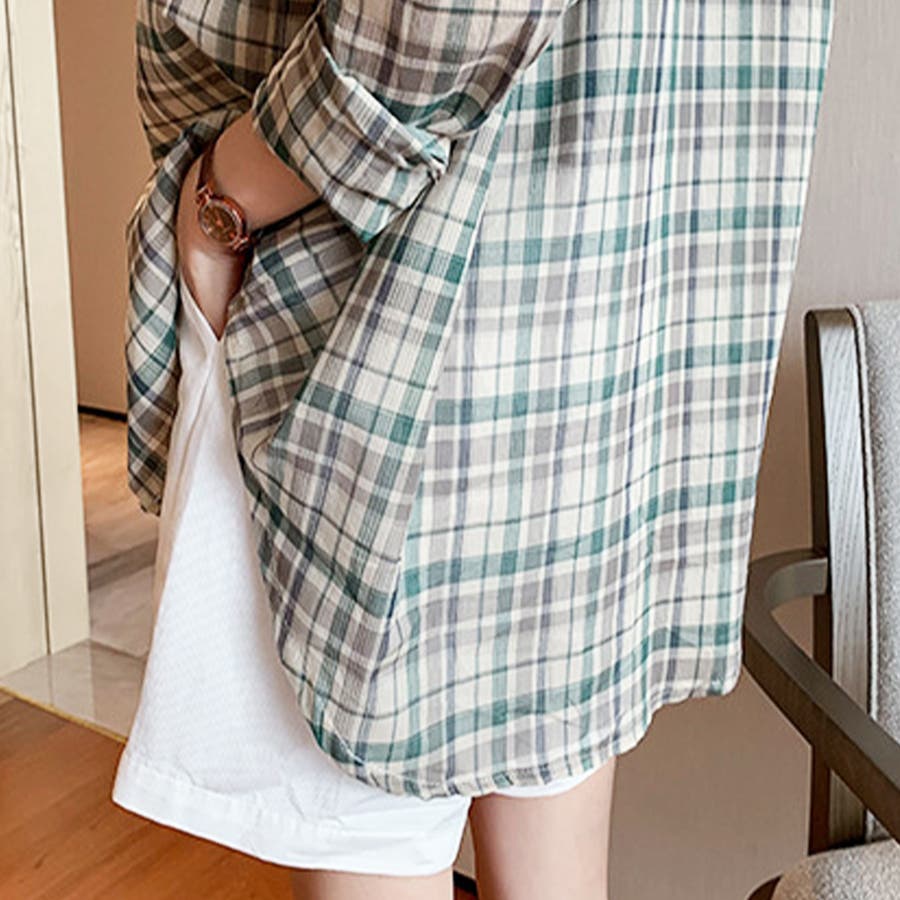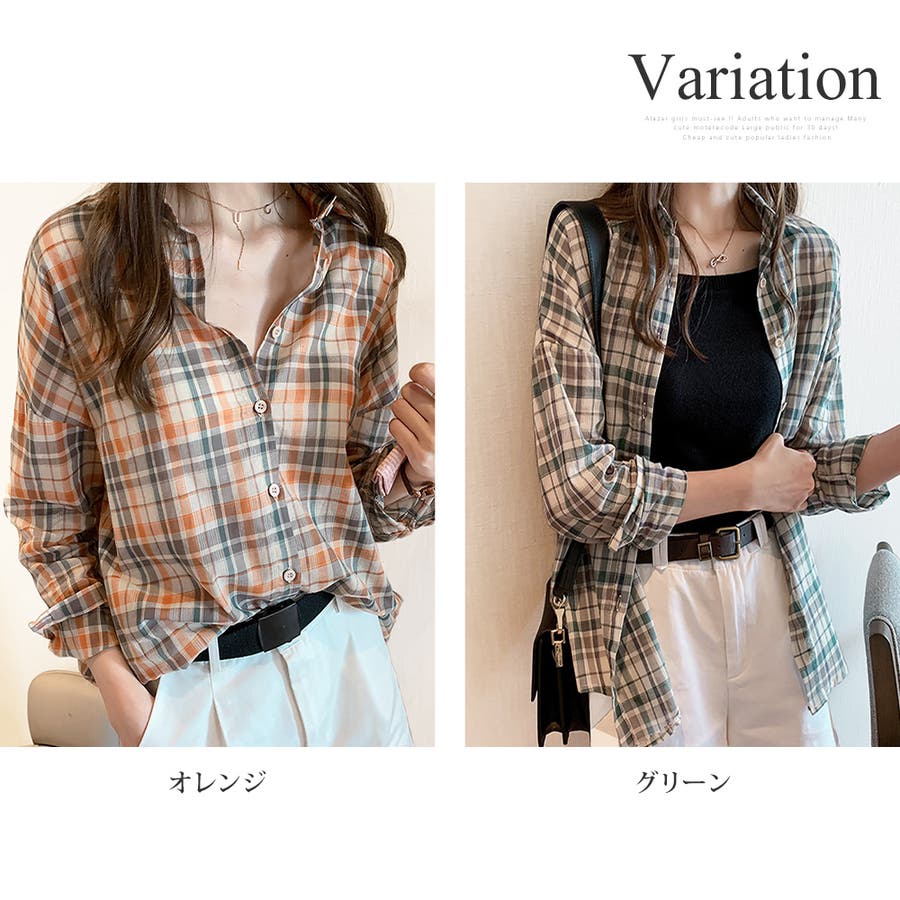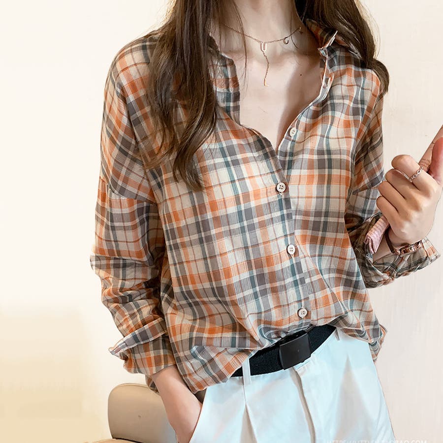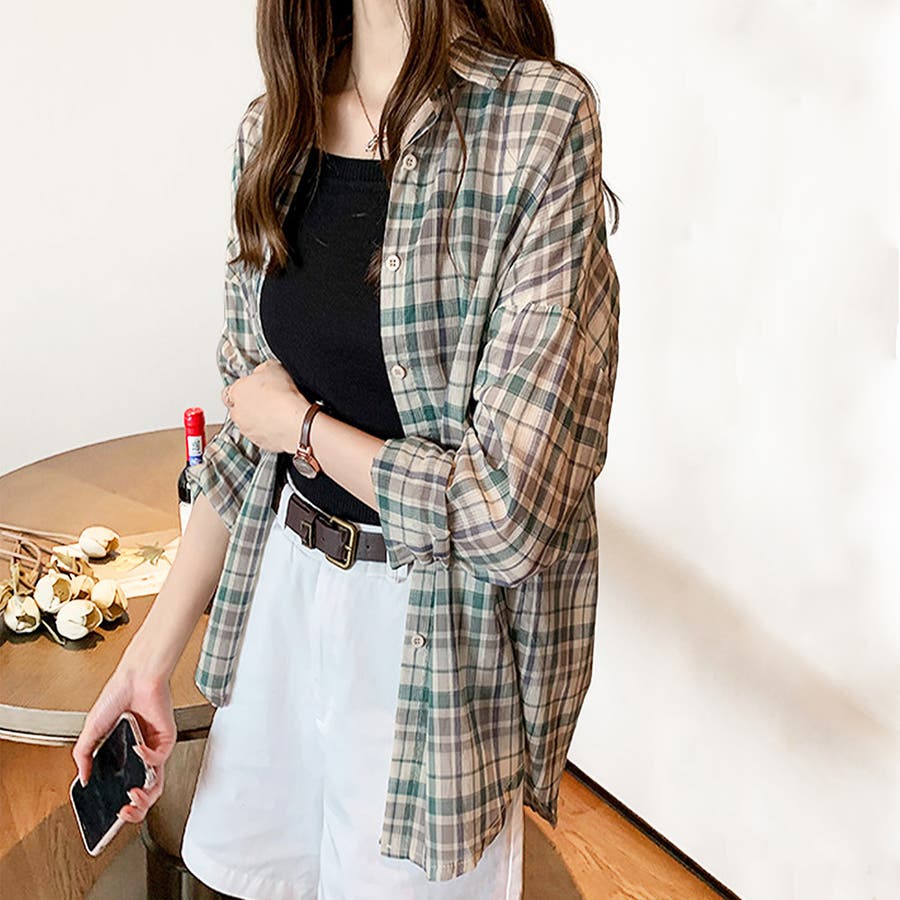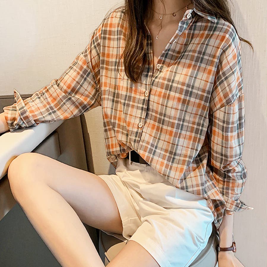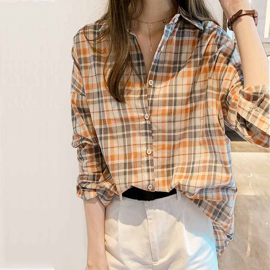 ・どんな服にも合わせやすい定番チェック柄ブラウス。着回ししやすいシャツ、ウエストインしてもかわいい☆袖をロールアップして、こなれ感を楽しもう♪